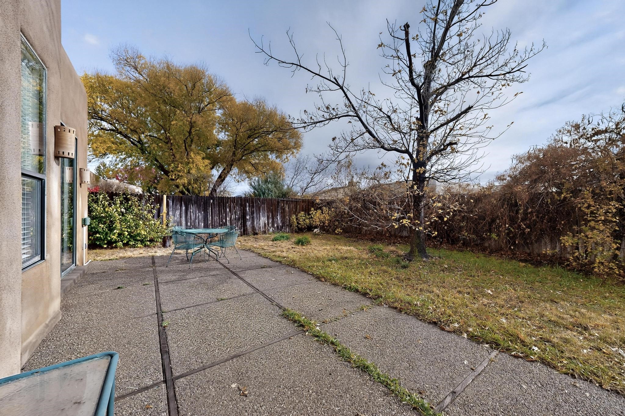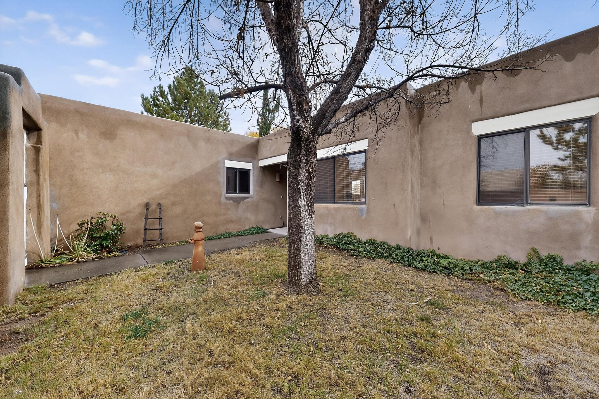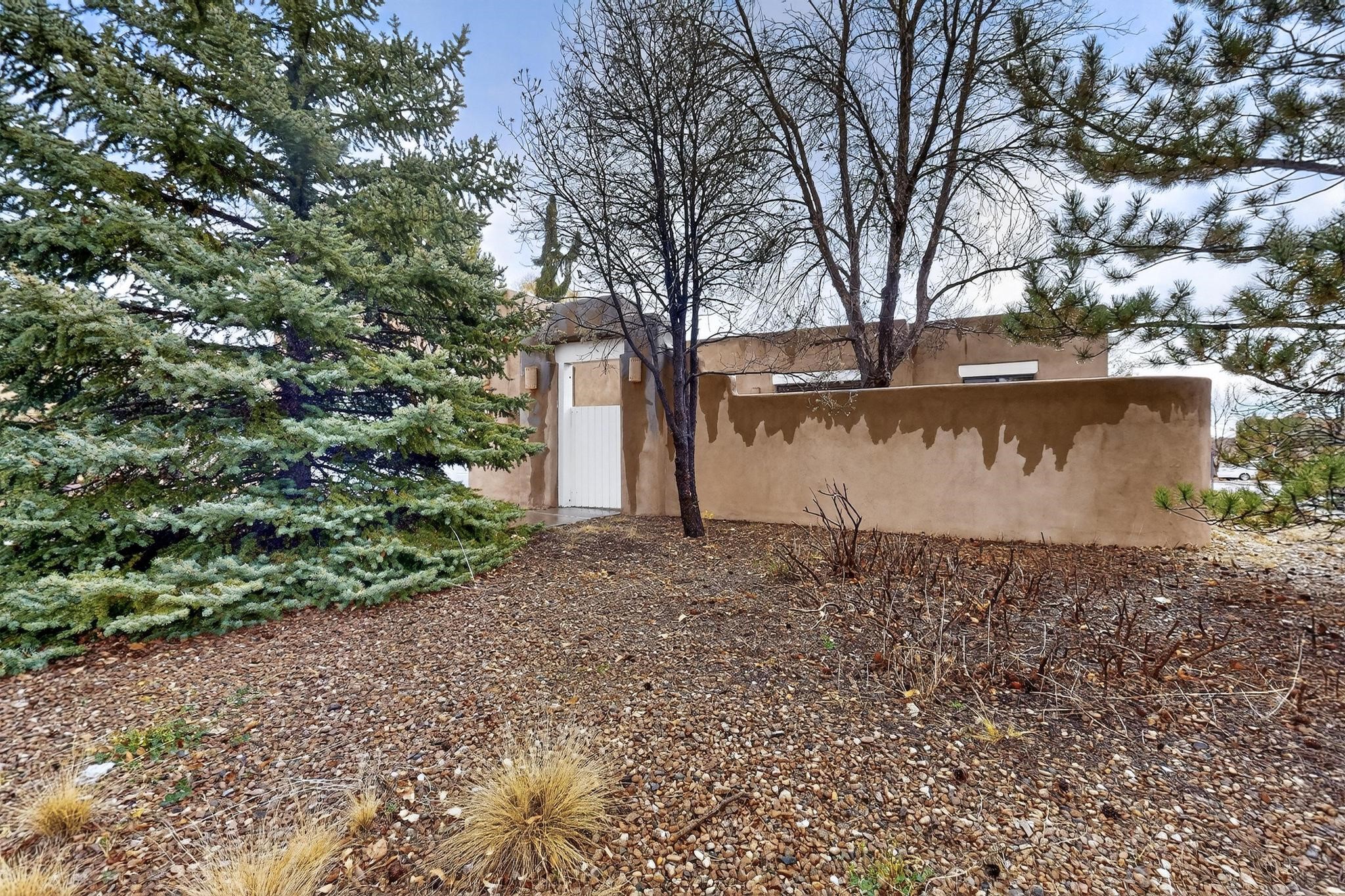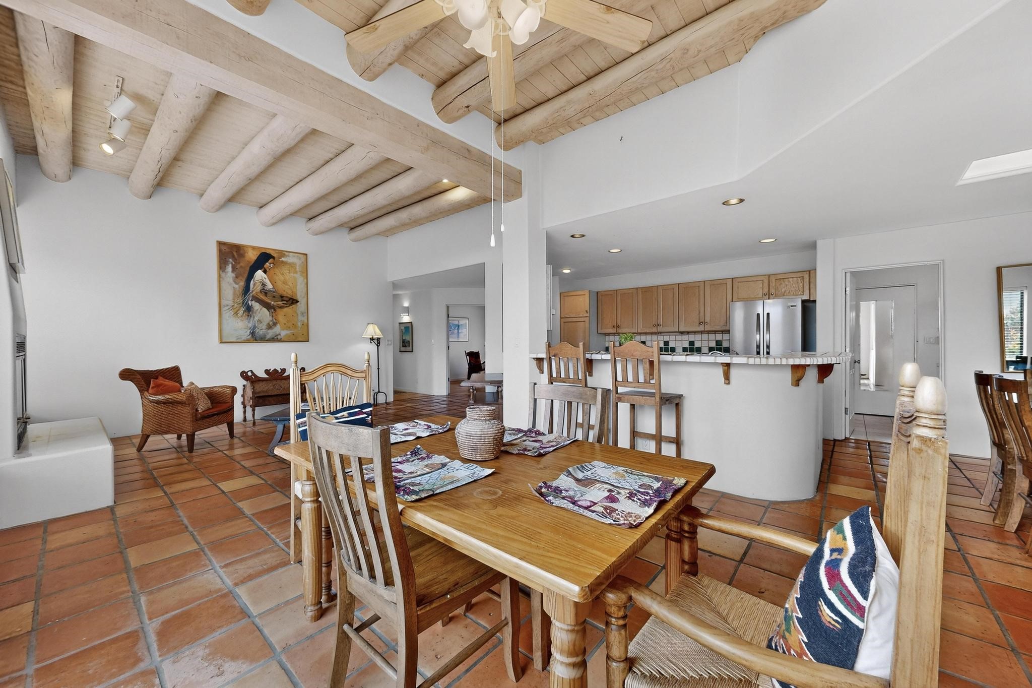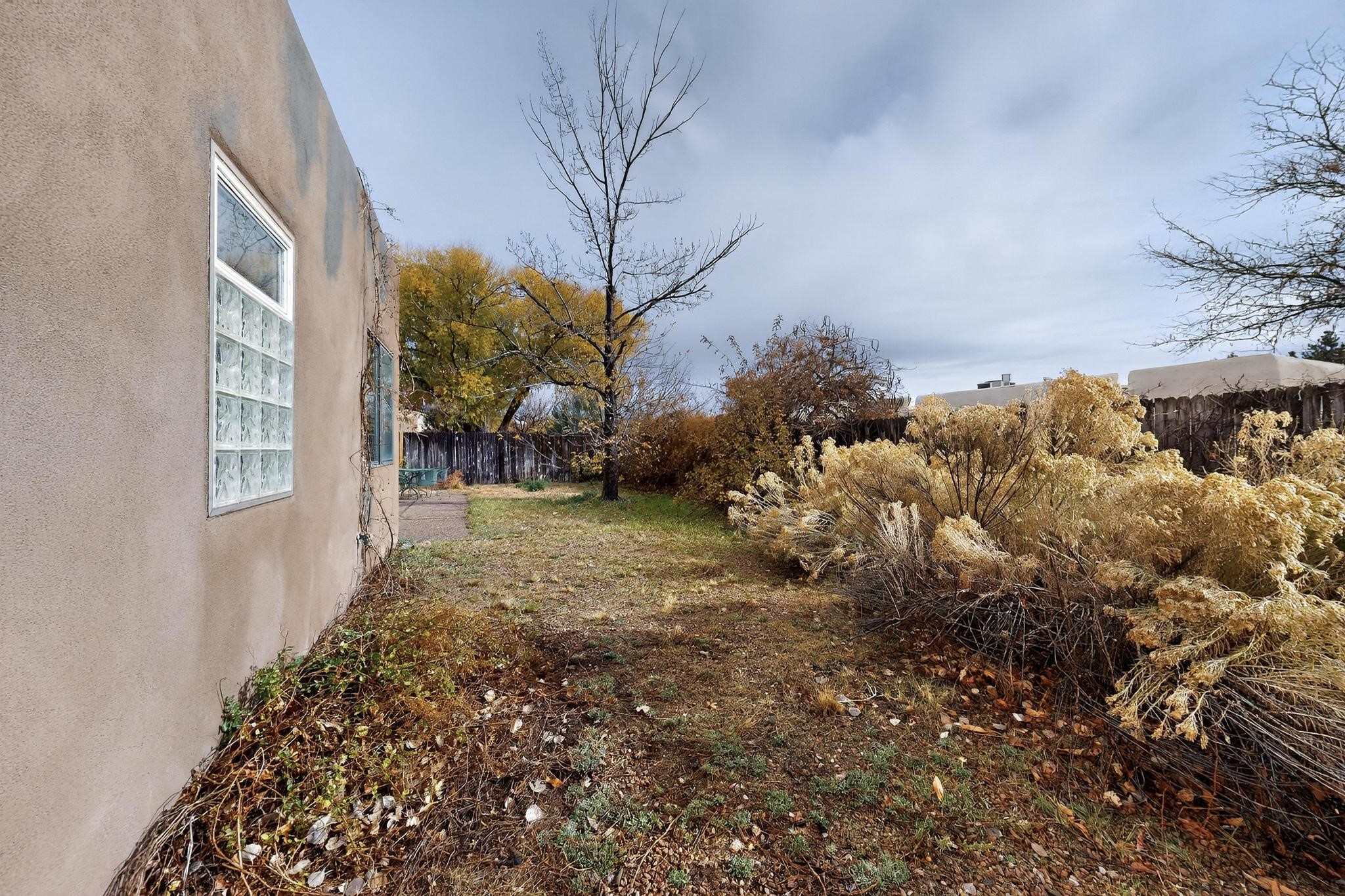 Discover this beautiful single-level home filled with natural light and nestled in the serene Plaza Del Castillo neighborhood. Enter through a walled private courtyard into a space rich with Santa Fe character, featuring high tongue-and-groove ceilings with vigas, a cozy wood-burning fireplace, and a blend of Saltillo tile and wood flooring.Skylights brighten the home, which also offers two full bathrooms, two dining areas, and a spacious primary suite with its own seating area--ideal for a reading nook or quiet retreat.Warm, inviting, and full of Southwestern charm, this home is ready to be enjoyed!