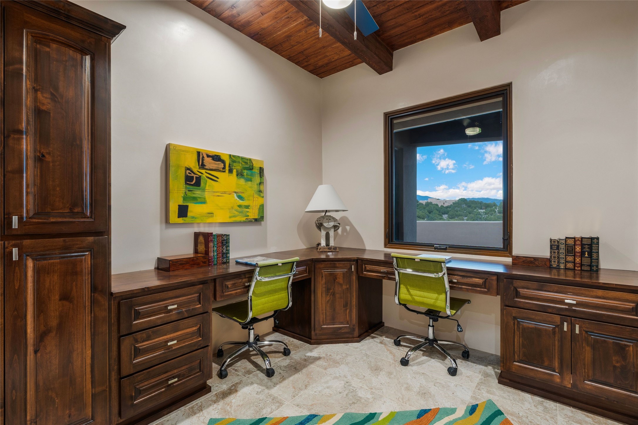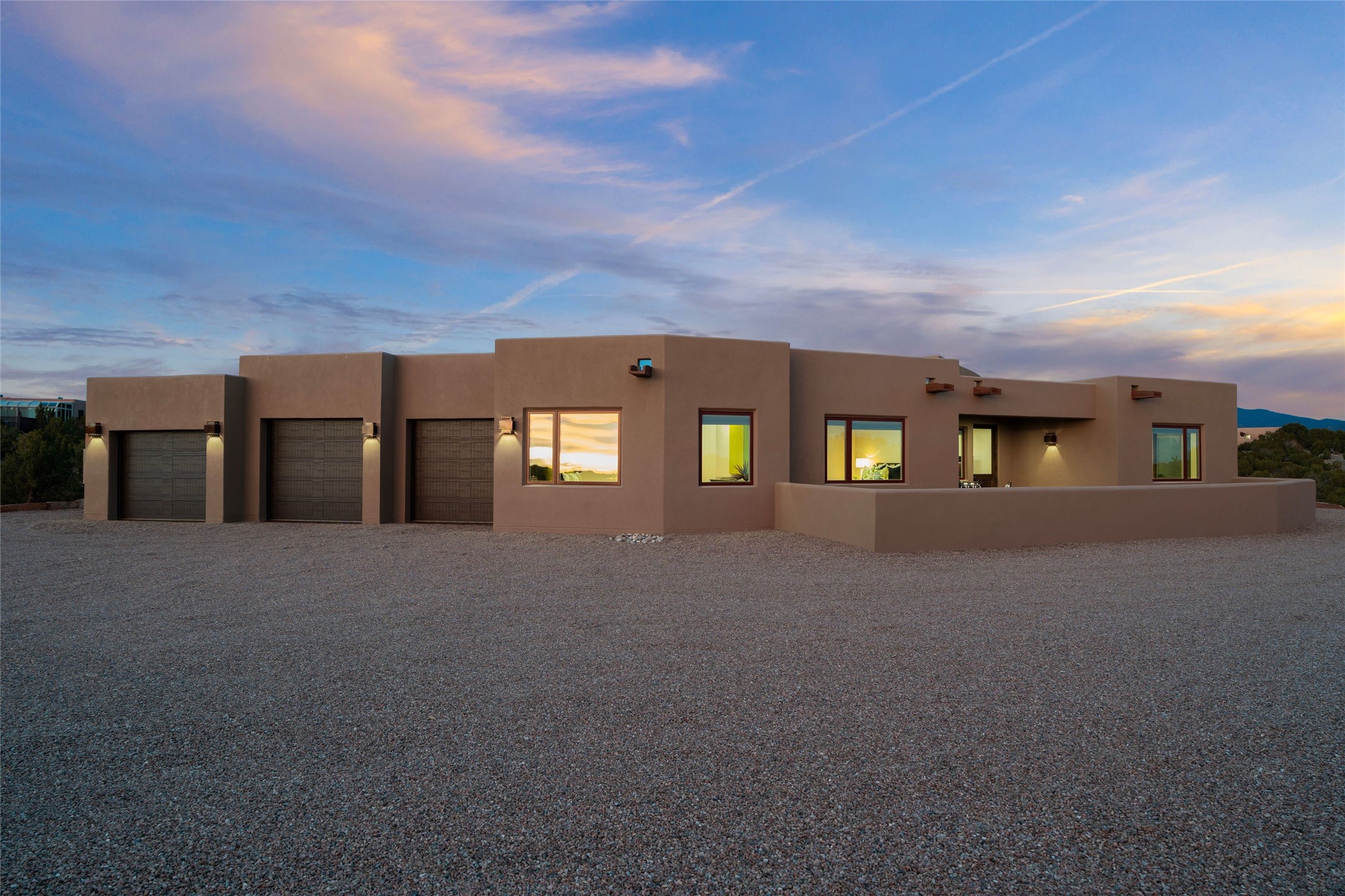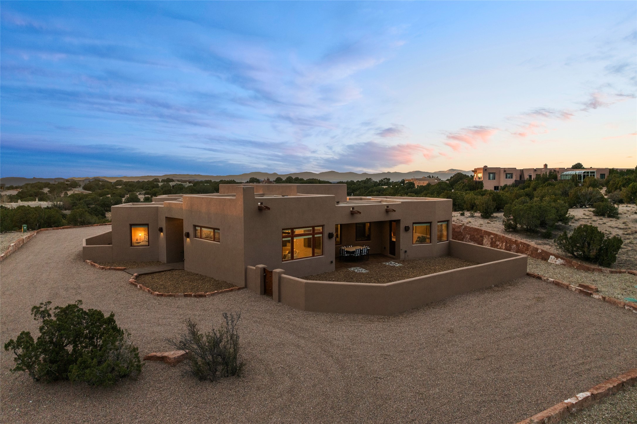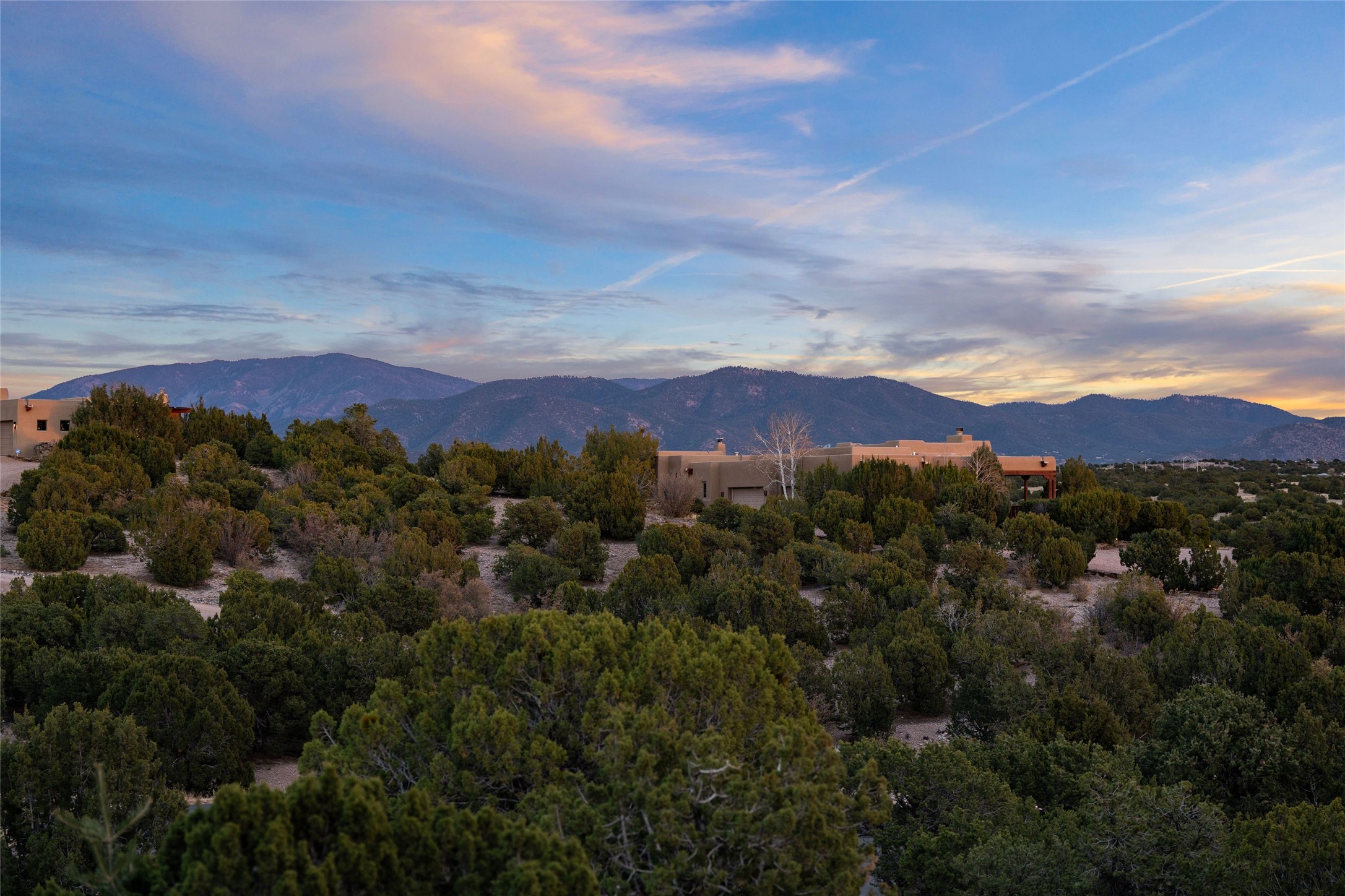 Don't miss the hilltop luxury of this brand-new, beautifully crafted home! This rare single-level residence offers four spacious bedrooms -- each with its own private bath -- plus a dedicated office and a flexible space perfect for a home gym or studio. The expansive primary suite features two walk-in closets and a spa bath complete with a gorgeous soaking tub. The stunning chef's kitchen with double islands designed for cooking, gathering, and entertaining is truly the heart of the home with a massive walk-in pantry ensuring everything has its place. With dining on one side and cozy informal sitting on the other, the kitchen becomes not just a place to prepare meals but the center of family gatherings and entertaining. All flows easily into the living room with stunning mountain views. Enjoy year-round comfort with radiant heat, forced air heating, and air conditioning. Set on a desirable hilltop, this home delivers dramatic, close-up views of the Sangre de Cristo Mountains. You'll love the feeling of privacy and escape just minutes from downtown Santa Fe -- all within the secure, gated community of Las Campanas, known for exceptional care, amenities, and peace of mind. If you're seeking top-notch design, luxurious comfort, an unbeatable location, and a lifestyle that meets your every wish... this is it!