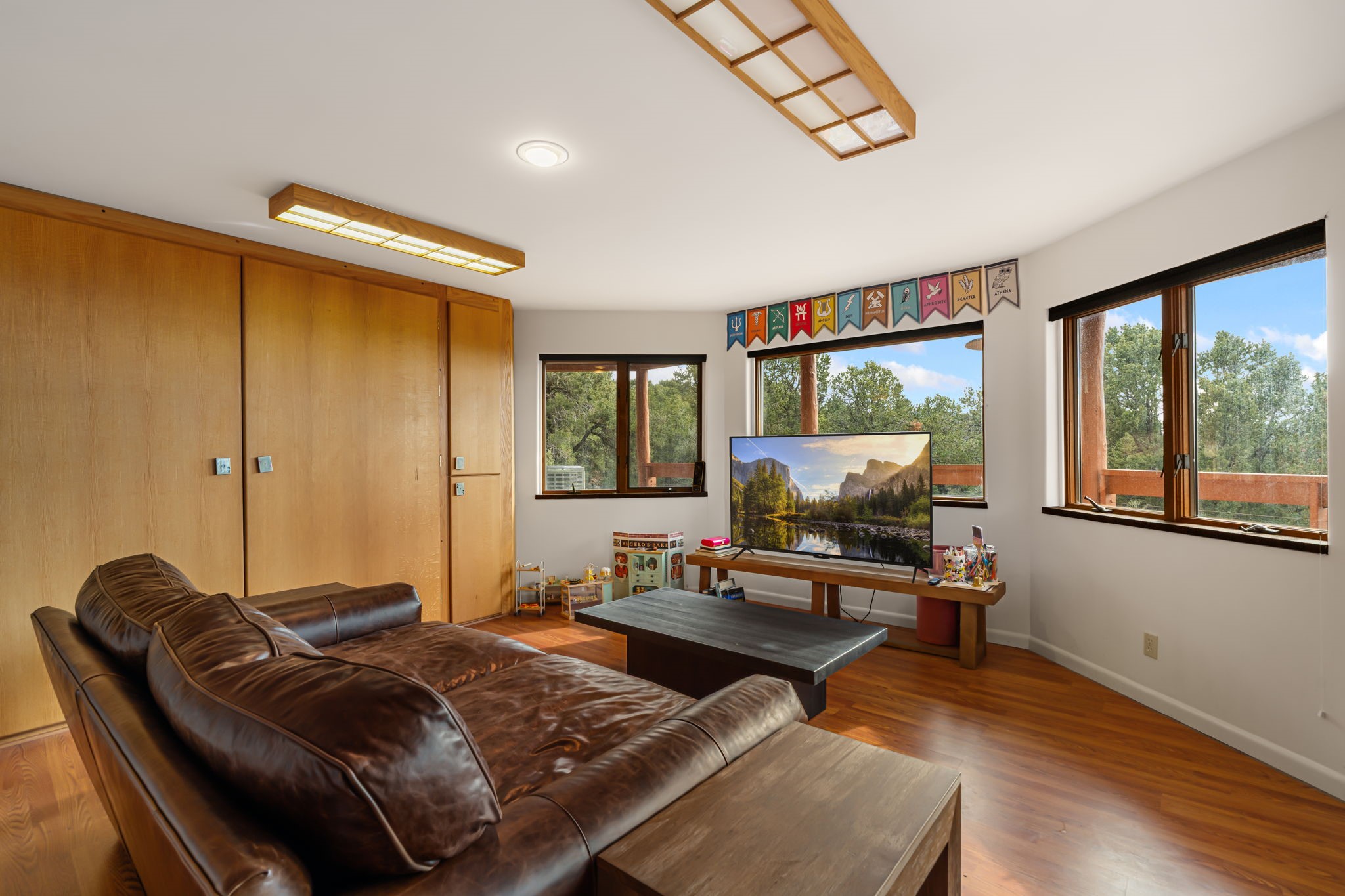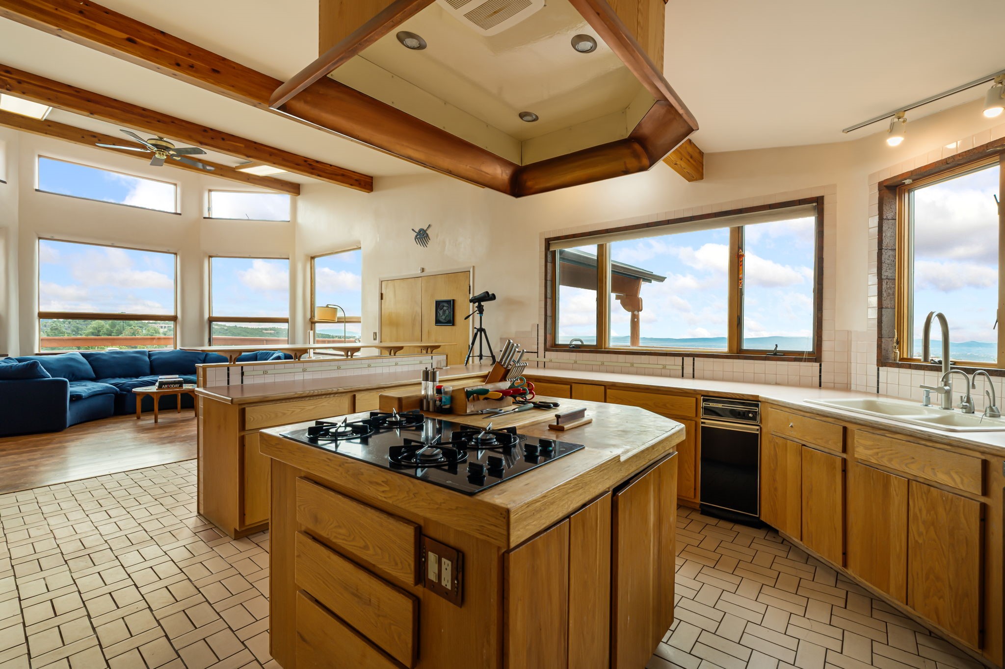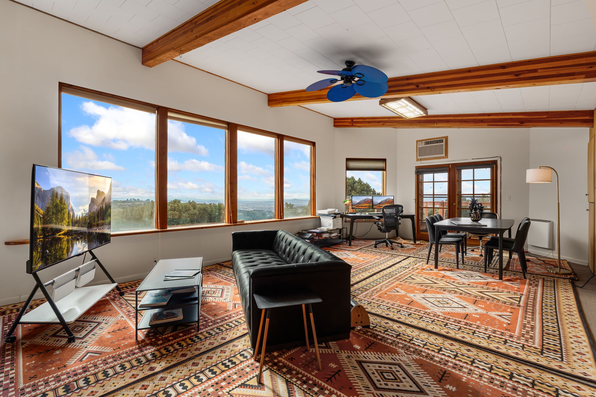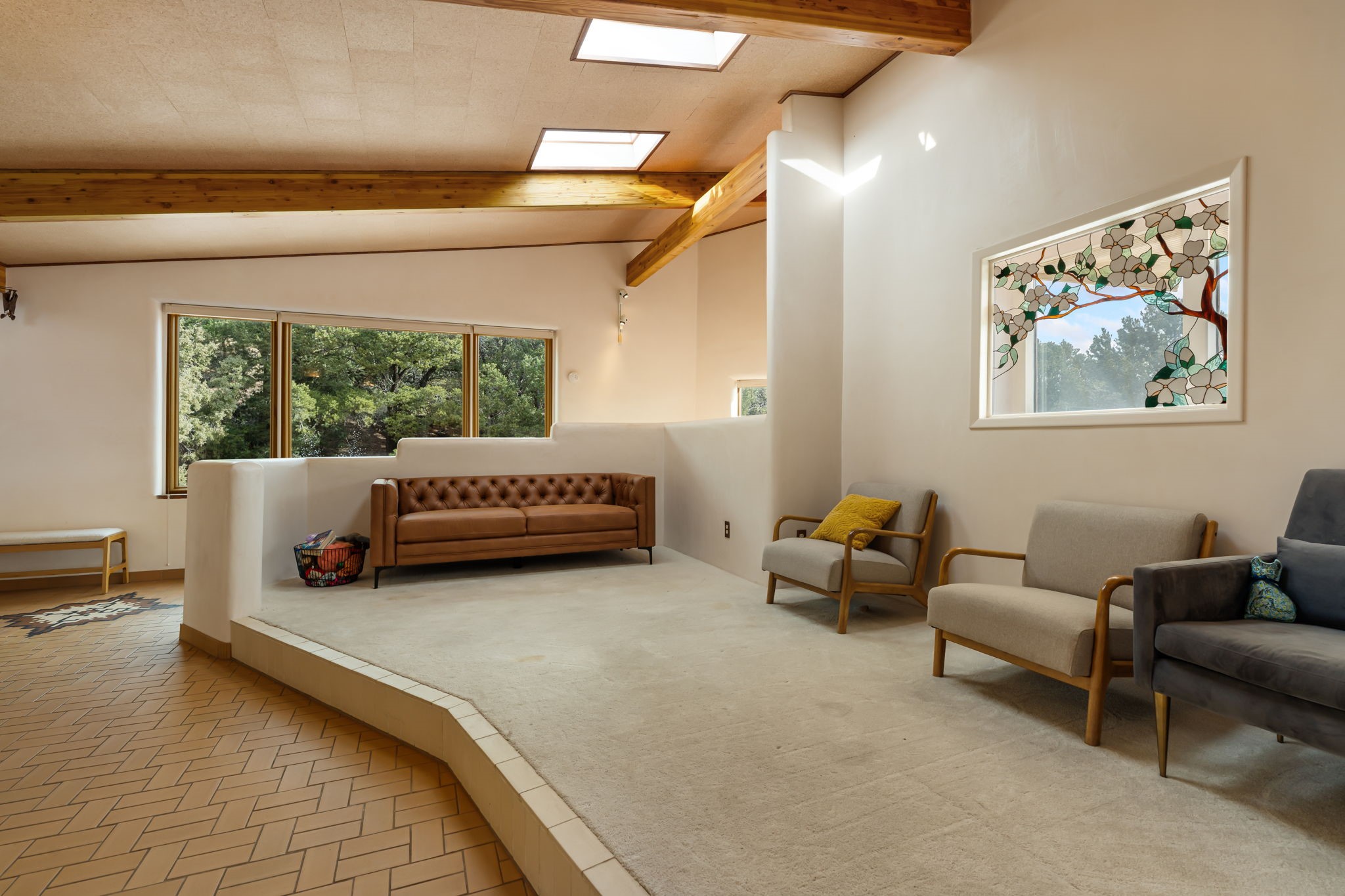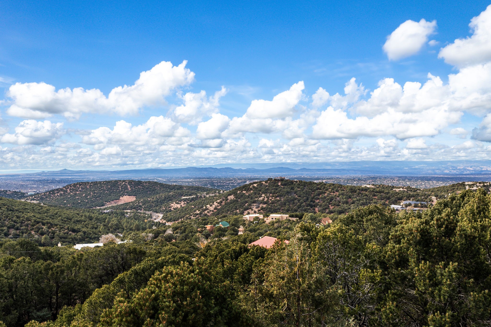 Imagine a stunning retreat atop the world, where the enchanting views of Santa Fe and the renowned New Mexico skies stretch out before you. Elevated at 8,000 feet, this home offers unforgettable western views with sunsets that paint the sky with vibrant colors. Inside, you'll find a blend of artistry and craftsmanship with diamond plaster walls, wooden beams, etched glass and cozy cork ceilings, all framed by a newer roof and stylish stucco that add to its charm. Every corner of this home exudes creativity from the original owners, from the beautifully situated kitchen and living room that bathe in westward light to an inviting pottery/art studio that doubles as a sun room or plant sanctuary. The thoughtful design embraces passive solar elements and solar panels, making it energy efficient. The versatile and separate studio is not just an area to create--it's a dream come true for writers, artists, designers or jewelry makers looking to bring their creativity to life. And with abundant storage throughout, you'll have room for all your inspirations. Located just moments away from the serene Santa Fe National Forest, thrilling slopes at the Santa Fe Ski Basin, and the scenic hiking/biking trails of Dale Ball, this home isn't just a place to live; it's a canvas for your life's next masterpiece.