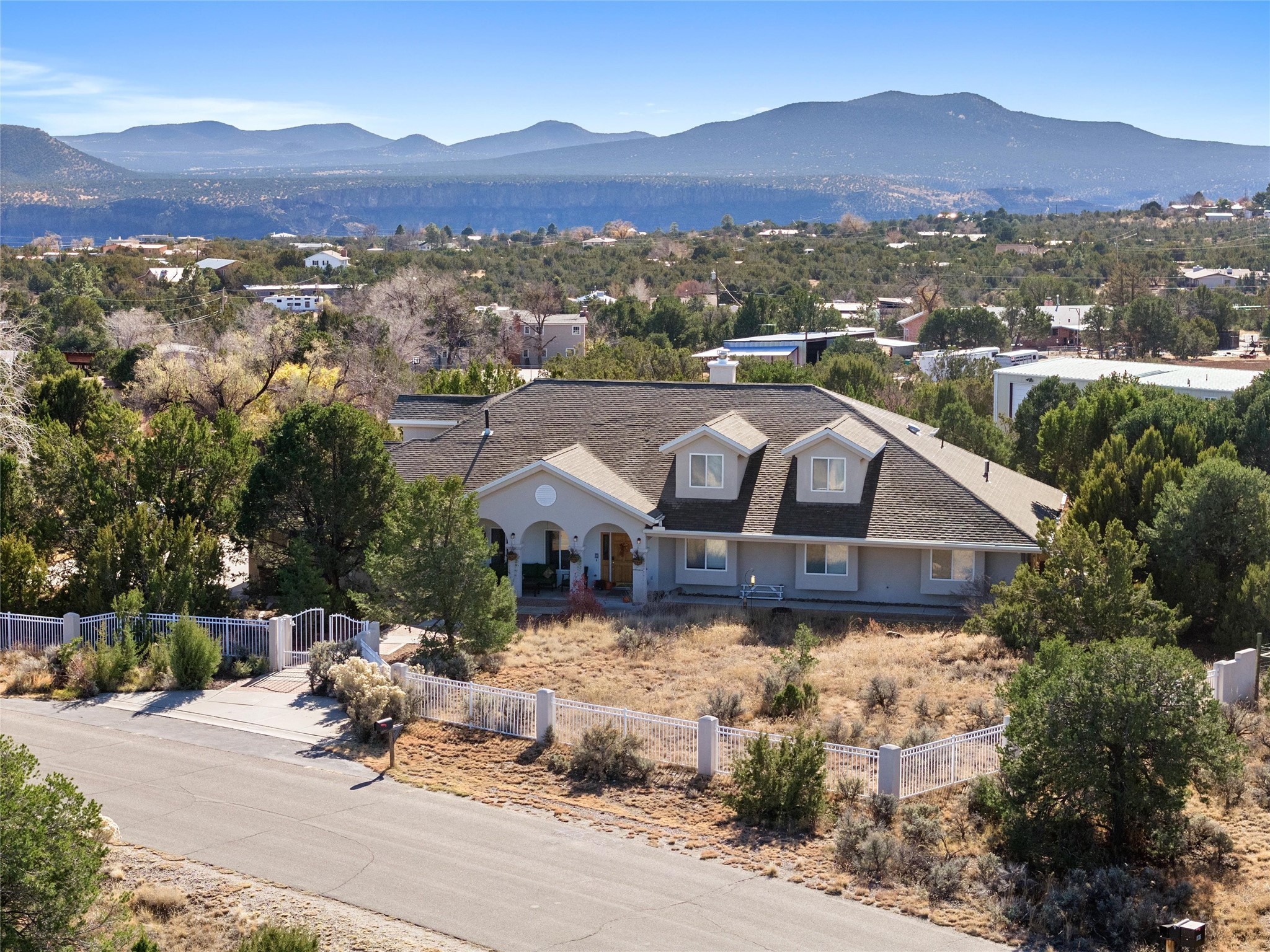 Spacious, thoughtfully designed, and full of extras, 177 Piedra Loop offers room to live, work, and play. The main home features 4 bedrooms, 5 bathrooms (3 full, 2 half) and approximately 4,810 sq ft of living space, with ADA-friendly features including extra-wide hallways and doorways, raised electrical outlets, ramps, and a bedroom with an attached ADA-compliant bath. Bedrooms enjoy cozy dormer sitting areas and laminate wood flooring, and there is excellent storage throughout, including two walk-in-height attic spaces upstairs.The heart of the home centers around an updated kitchen, a two-sided glass fireplace shared by the living room and the 10x40 sunroom, and comfort features like a central vacuum system and cellular blinds. The sunroom offers wonderful solar gain and is an ideal spot for plants to thrive indoors year-round.Outside, an automatic gate welcomes you into a treed lot with defined gardening areas and a watering system, plus a patio and fire pit for outdoor relaxing and entertaining. A true standout is the approximately 2,600 sq ft shop, with two bays featuring RV-height doors. Inside, you'll find a heated, well-lit woodworker's dream space with easy-clean floors and its own bathroom. Above the shop is a studio with a kitchenette, bathroom, additional storage, and an electric cargo lift to make moving items upstairs a breeze.This property is an exceptional opportunity for anyone needing generous living space, accessibility features, hobby/workshop space, guest or rental potential, and room for RVs or special projects--all in one place.