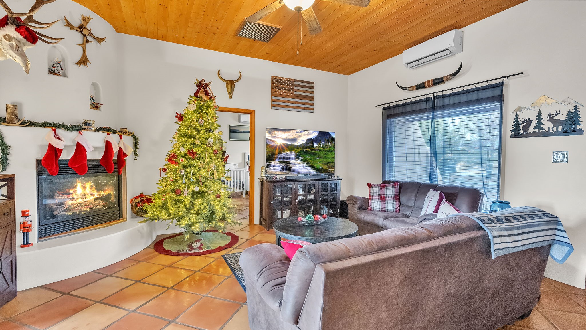Welcome to this well-maintained 3-bedroom, 2-bathroom home on 2.07 acres. Natural light fills the space, highlighting the Saltillo tile floors. The living room features tall wood-decked ceilings and a gas-log fireplace, and a 50-amp RV service.The remodeled kitchen includes custom cabinets, tile, high-end granite, and newer stainless-steel appliances. The bedrooms are spacious, and the primary bathroom has been updated as well.The coyote-fenced yard offers a Hot Springs Aria Spa, a flagstone courtyard, and a front seating area for sunset views.A bonus 460 sq ft studio includes custom media cabinetry, a 60 sq ft storage closet, a wood-decked ceiling, and Klipsch ceiling speakers. A great mix of comfort, style, and outdoor living--schedule your showing today.