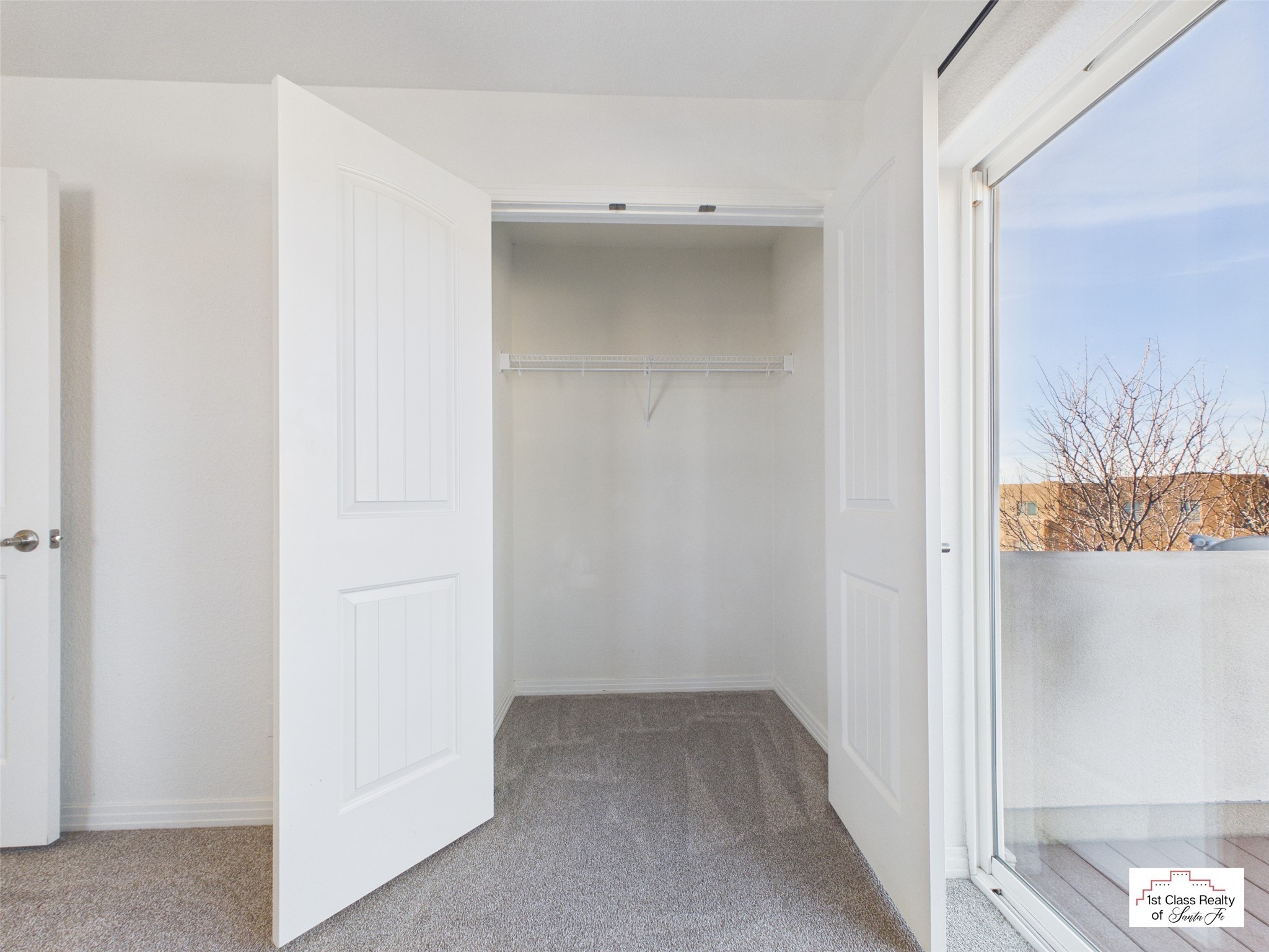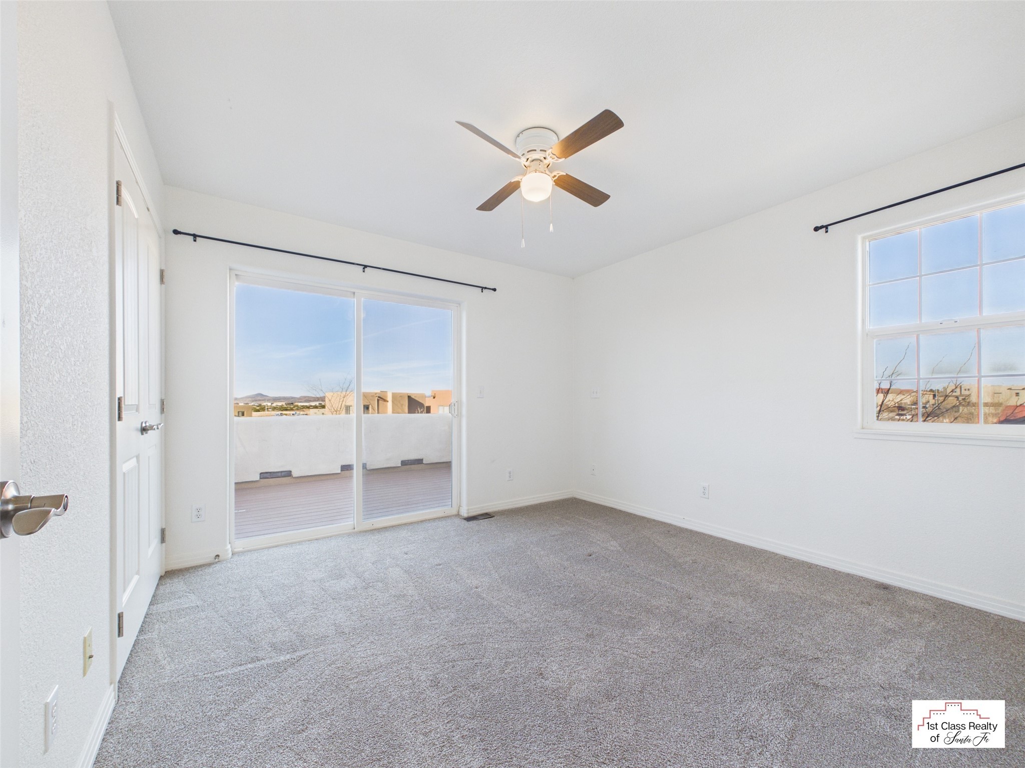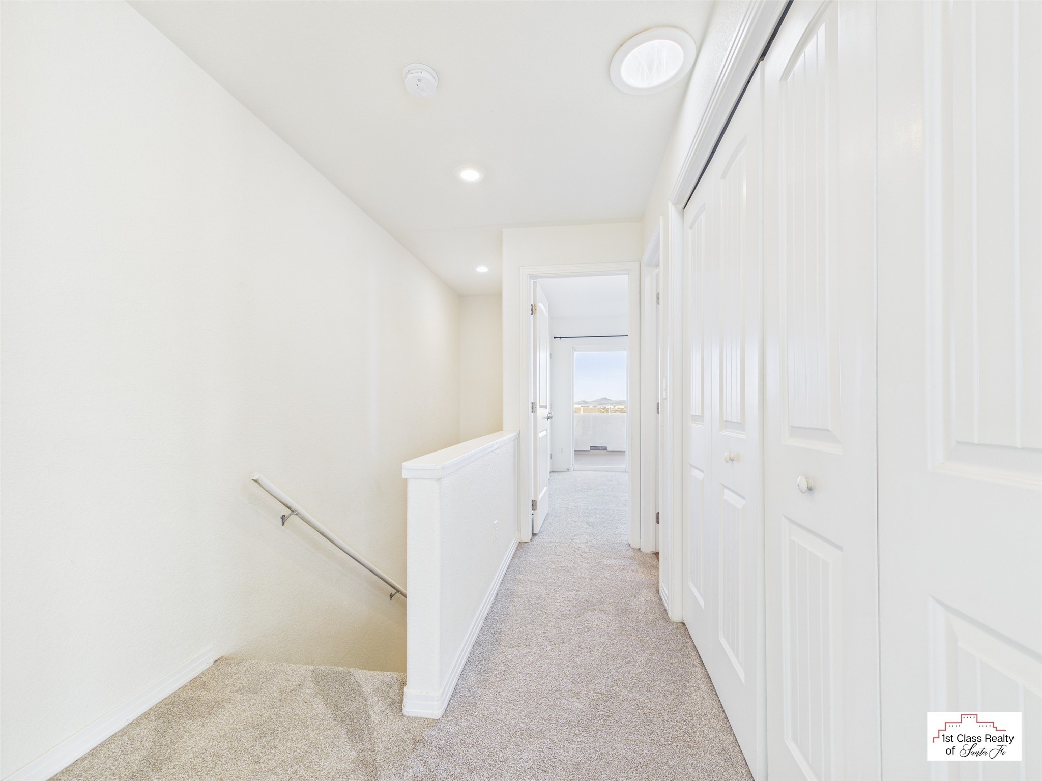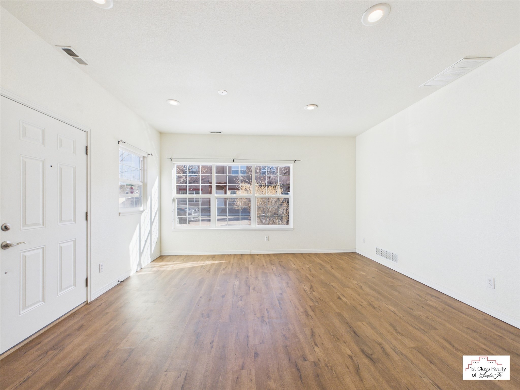 Welcome home to this contemporary pueblo-style end-unit on a corner lot in the desirable El Nido community. Light-filled interior with an open main-level living area, kitchen, and a flexible bedroom/office plus a bath. Two additional bedrooms and a full bath are located upstairs. Enjoy a private walled courtyard ideal for outdoor dining, gardening, or pets, as well as an upper deck offering expansive mountain views, sunset backdrops, and star-filled night skies. Additional features include off-street parking for two vehicles and abundant natural light throughout. Convenient south side location just minutes to SWAN Park, the Santa Fe Country Club, shopping, dining, entertainment, and the Presbyterian Medical Center. Quick access to I-25 and Hwy 599 for easy commuting to ABQ or Los Alamos. A well-kept home in a convenient area.