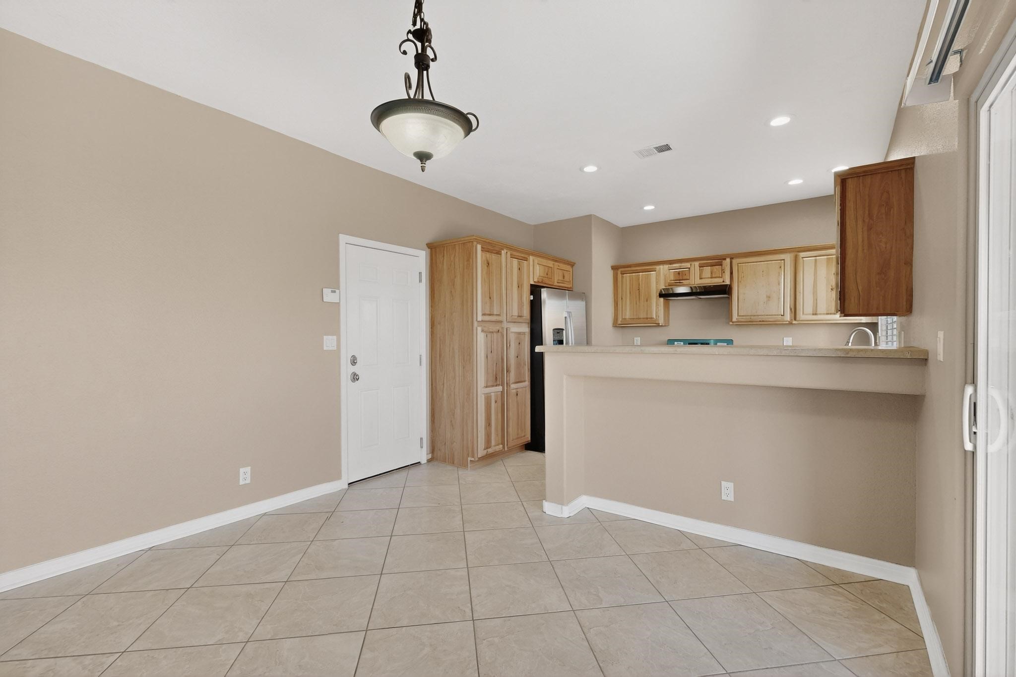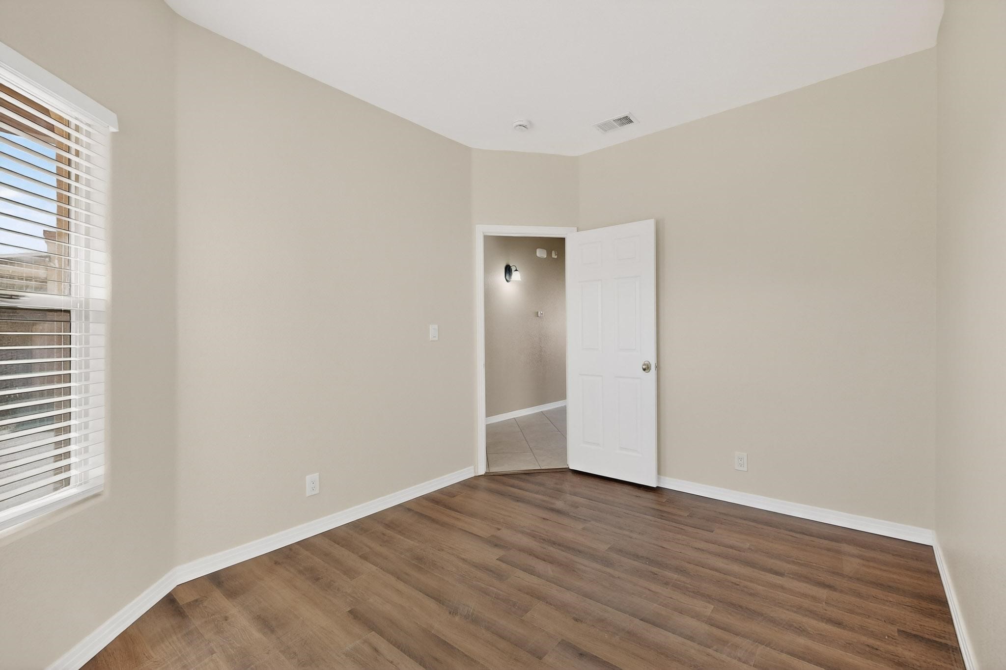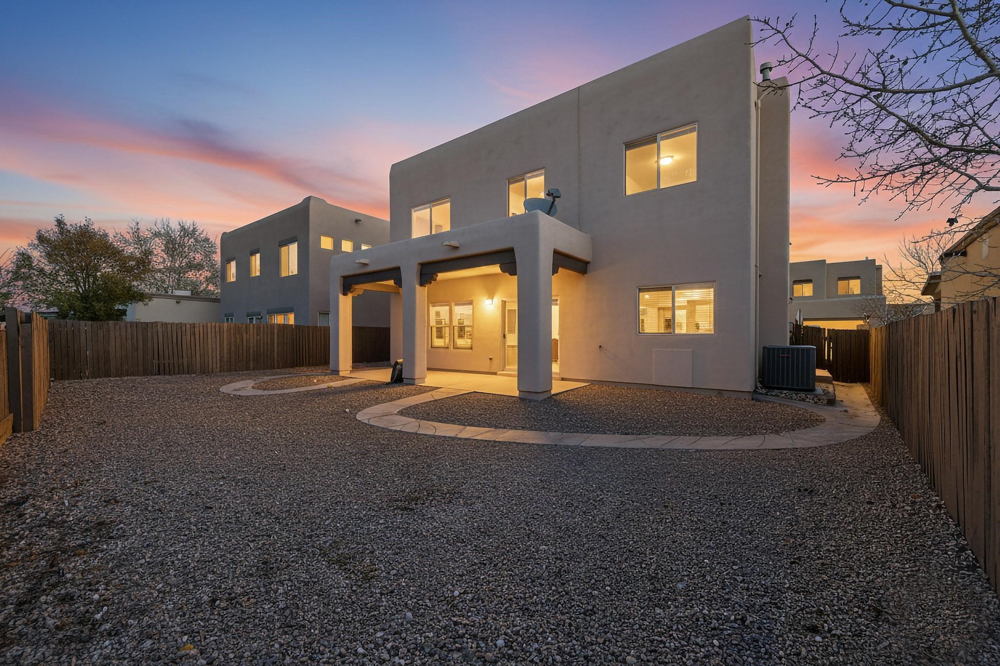 Welcome to this beautifully updated 5-bedroom, 2.5-bathroom home offering modern comfort and move-in-ready appeal! Step inside to discover fresh new flooring throughout, complemented by a brand-new paint job that brightens every room. The kitchen features sleek NEW cabinets, countertops, a refrigerator, and stove--perfect for everyday living and entertaining. Outside, the curb appeal shines with NEW exterior paint, fresh xeriscape landscaping design, and freshly stained wood fencing for added privacy. The finished garage also boasts durable NEW epoxy flooring. Recent mechanical upgrades ensure peace of mind: a new water heater (less than 2 years old), new air conditioning and condenser (less than 3 years old), and a roof replaced with premium silicone foam approximately 5 years ago, backed by a 10-year guarantee from the installation date.
