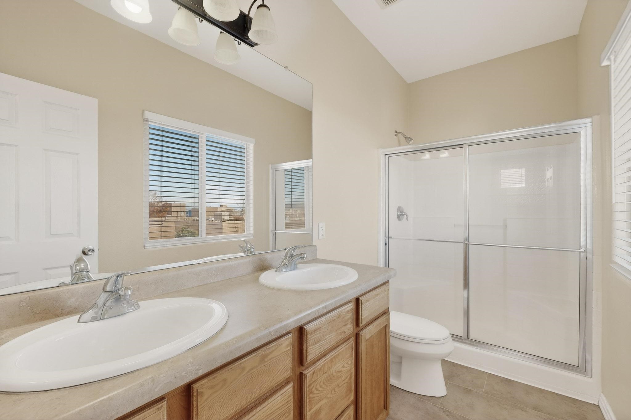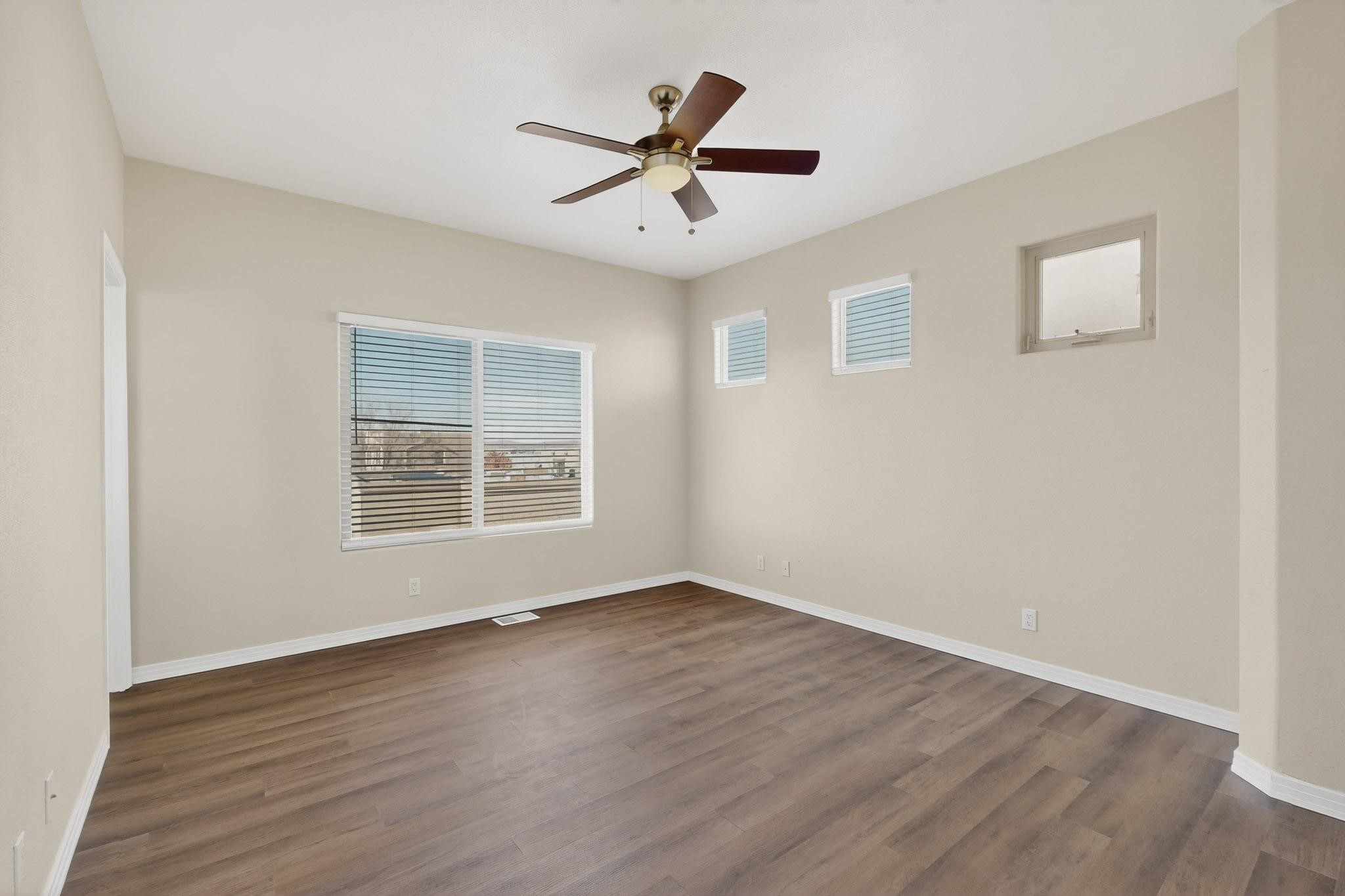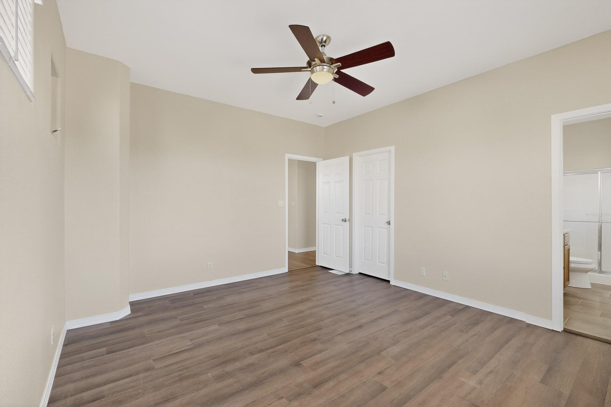 Welcome to this beautifully updated 5-bedroom, 2.5-bathroom home offering modern comfort and move-in-ready appeal! Step inside to discover fresh new flooring throughout, complemented by a brand-new paint job that brightens every room. The kitchen features sleek NEW cabinets, countertops, a refrigerator, and stove--perfect for everyday living and entertaining. Outside, the curb appeal shines with NEW exterior paint, fresh xeriscape landscaping design, and freshly stained wood fencing for added privacy. The finished garage also boasts durable NEW epoxy flooring. Recent mechanical upgrades ensure peace of mind: a new water heater (less than 2 years old), new air conditioning and condenser (less than 3 years old), and a roof replaced with premium silicone foam approximately 5 years ago, backed by a 10-year guarantee from the installation date.