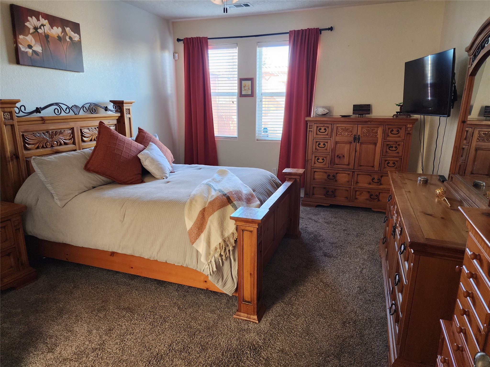 Upgraded Sonora in the Villa Sonata Subdivision. Open floor plan, large kitchen, den area on second floor, backs to greenbelt. Home is wired for security system, just need to activate. Bi-level heating with refrigerated air on both 1st and 2nd floor. Close to all amenities of Zafarano, Rodeo Road, Richards. Easy access to interstate and 599. Excellent opportunity for a large family home or great expanded space for a couple! includes landscaped yards and covered jacuzzi. Don't miss this one!