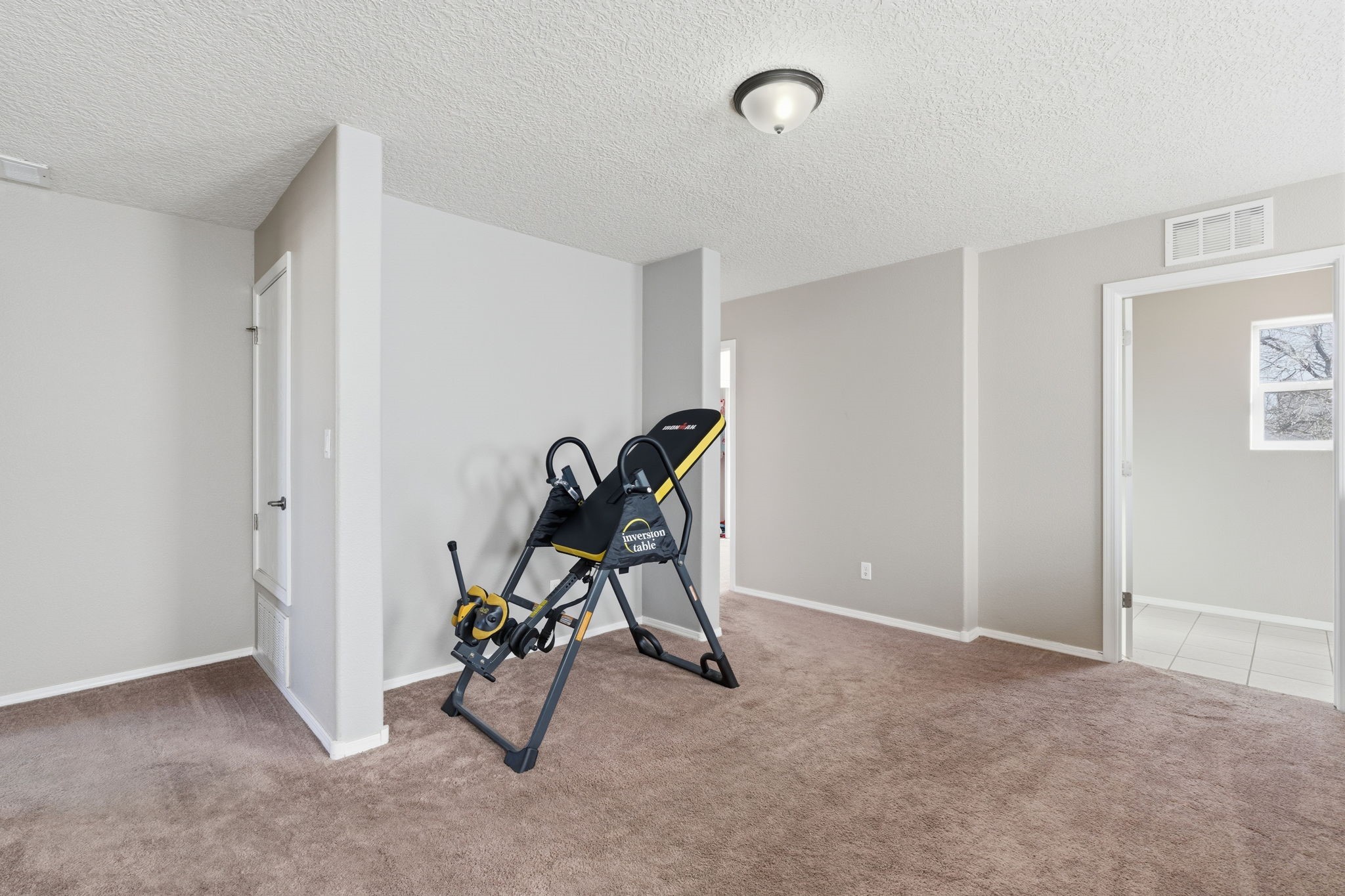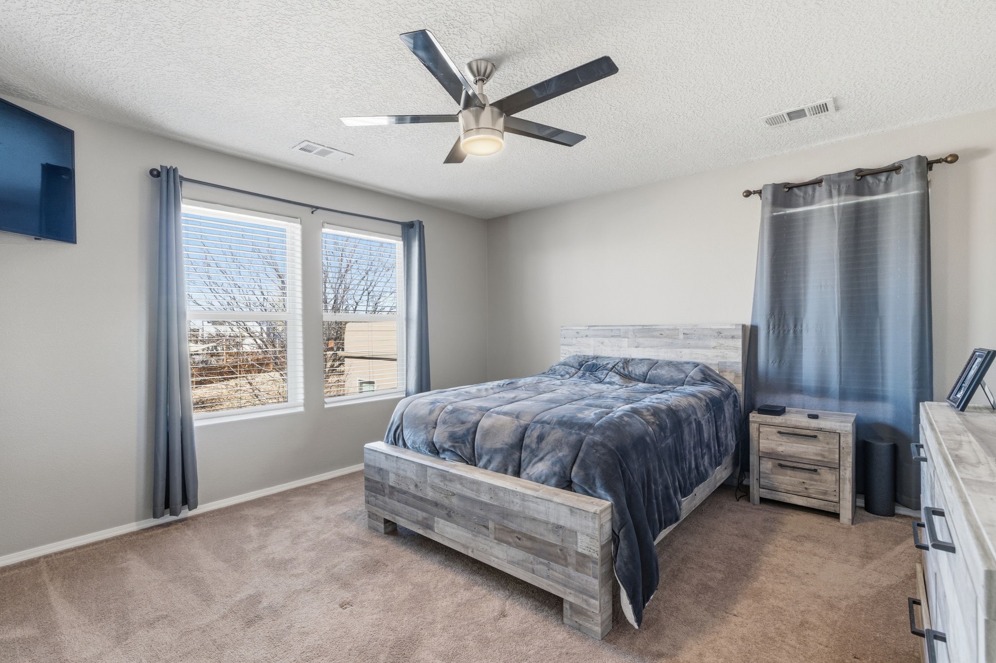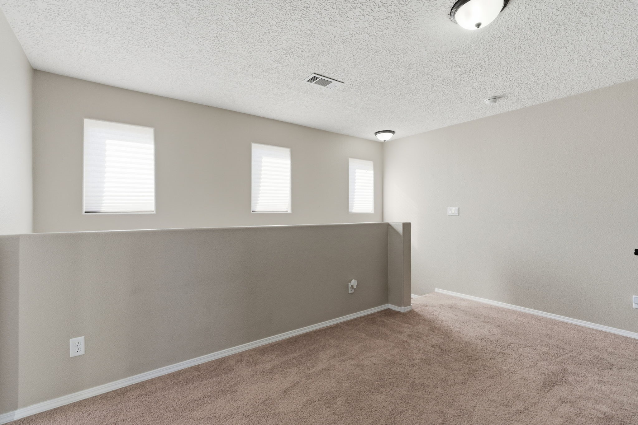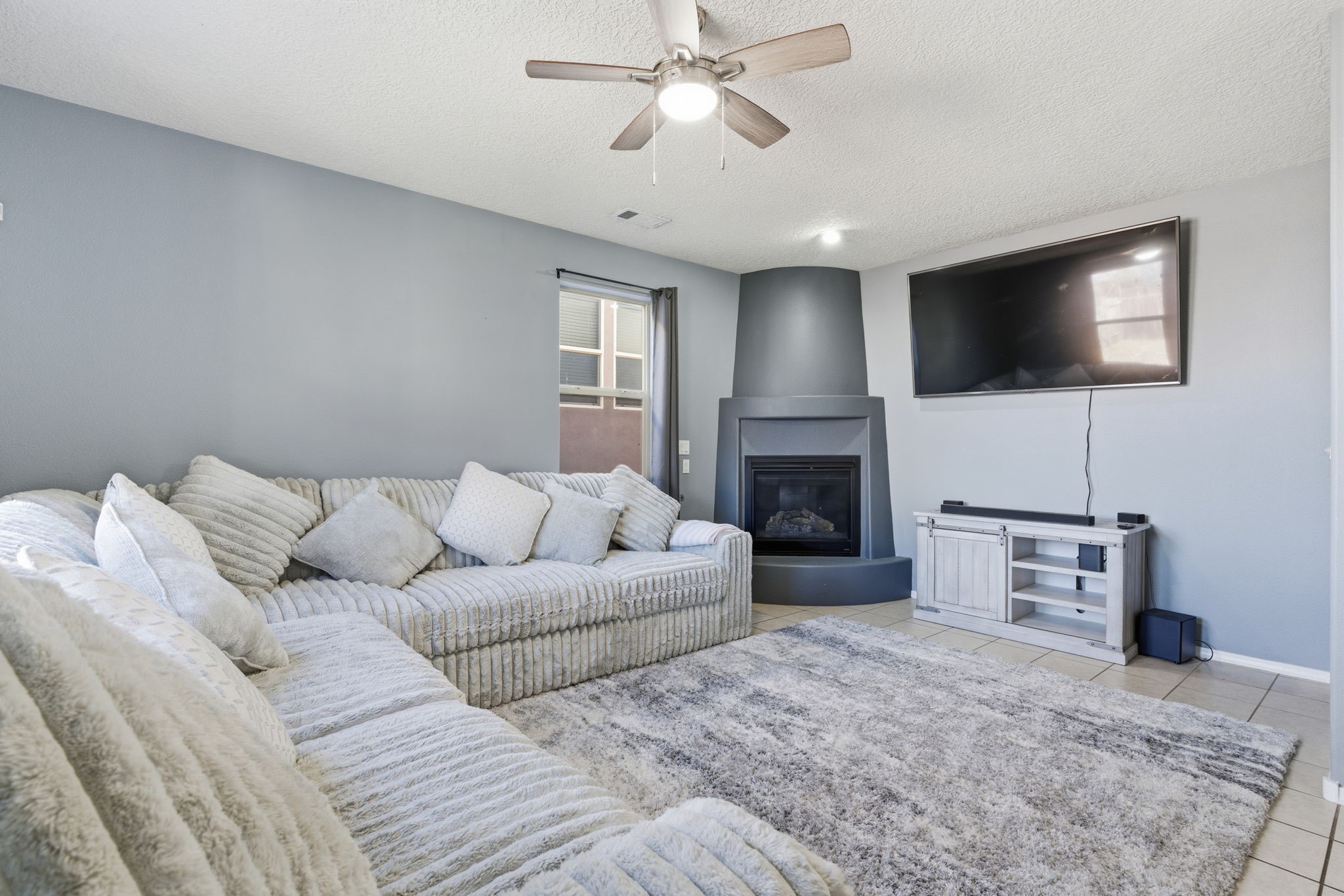 Offered at $535,000 3 Bed 3 Bath 1,843 sq ftBeautifully maintained two-story home built in 2010 with open floor plan and modern finishes. Main level features a bright living area with gas Kiva fireplace, dining space, and kitchen with stainless steel appliances, glass tile backsplash, and tile flooring. Upstairs includes a versatile loft and spacious primary suite with soaking tub, shower, and two walk-in closets.Enjoy outdoor living in the fully fenced backyard with wood pergola, built-in firepit, and storage unit. Additional highlights: refrigerated air, forced air heating, rain barrels, front portal entry, and attached two-car garage. HOA provides access to community park and walking trails.Conveniently located near schools, shopping, medical facilities, Santa Fe Community College, and Genoveva Chavez Community Center, with easy access to I-25 and Hwy 599. Move-in ready and full of Santa Fe charm!