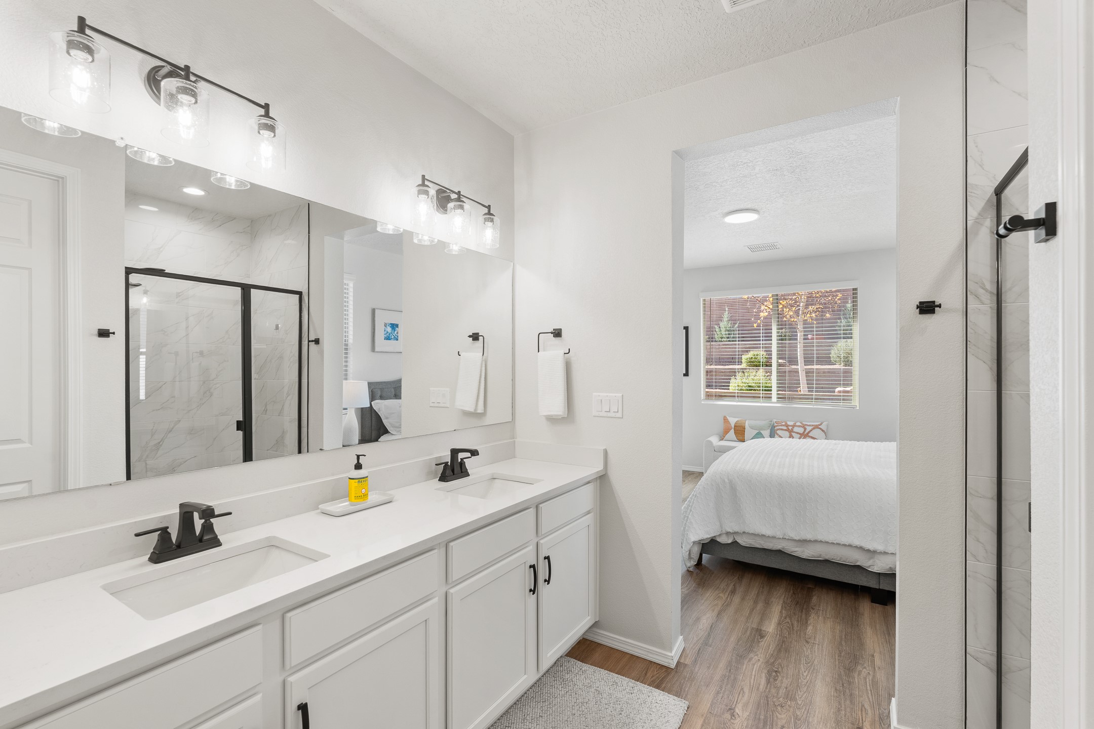 This better than new Copper plan includes an open floor plan with many owner upgrades. 3 Beds plus an office, walk-in pantry and a center island, open dining area and a generous great room. A covered patio for entertaining or just relaxing outside. The private owner's suite with large walk in closet and access to the back patio. You'll have no shortage of space for parking and storing your vehicles with a 2-car garage and an oversized RV garage. $35k upgraded large corner lot fully landscaped, hot tub, heated and cooled garage with Epoxy flooring, upgraded refrigerator, all window coverings. Across from neighborhood park. A master-planned community, indoor and outdoor pools, fitness center, parks, 2,200 acre preserve with hike/bike trails and mountain Views.