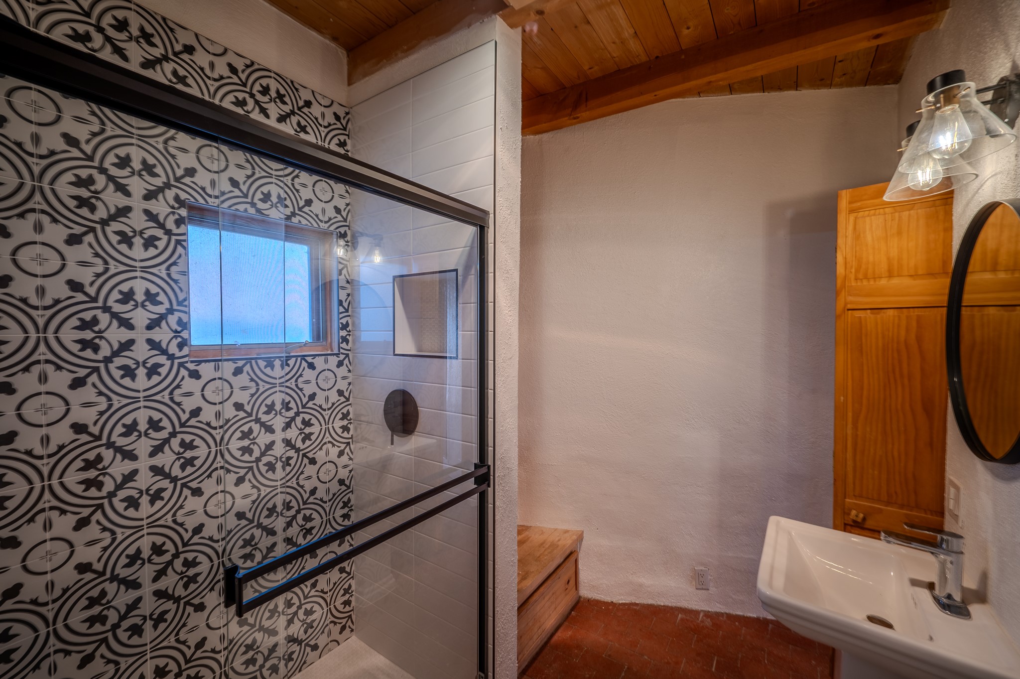 Choices and flexibility with 2 ground floor bedrooms, 1 bedroom upstairs, and a 1 bedroom guest casita. In addition to lovely upgrades, and a location in a beloved gated community, this home has a huge back yard excellent for pets or play. Artists and crafts people will easily find space to express their talents. This tremendous value is 5 minutes from Santa Fe Airport, 12 minutes to downtown Santa Fe, 45 minutes to Albuquerque, and a popular commuter location to Los Alamos. See this now and decide for yourself.