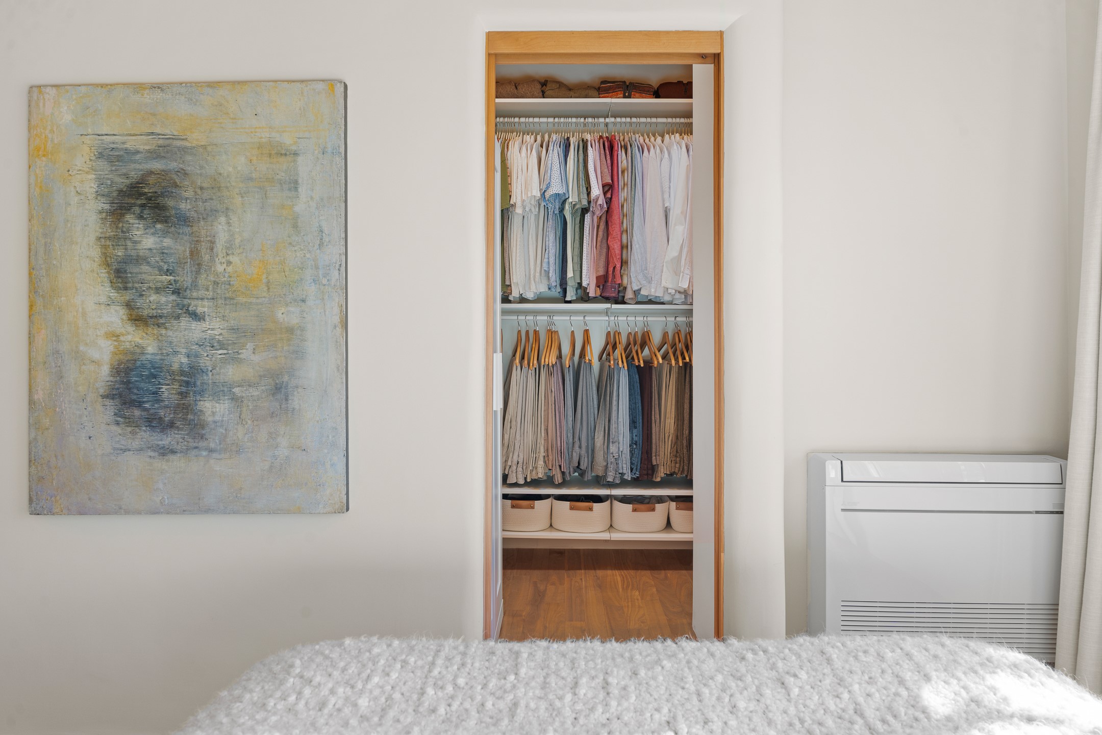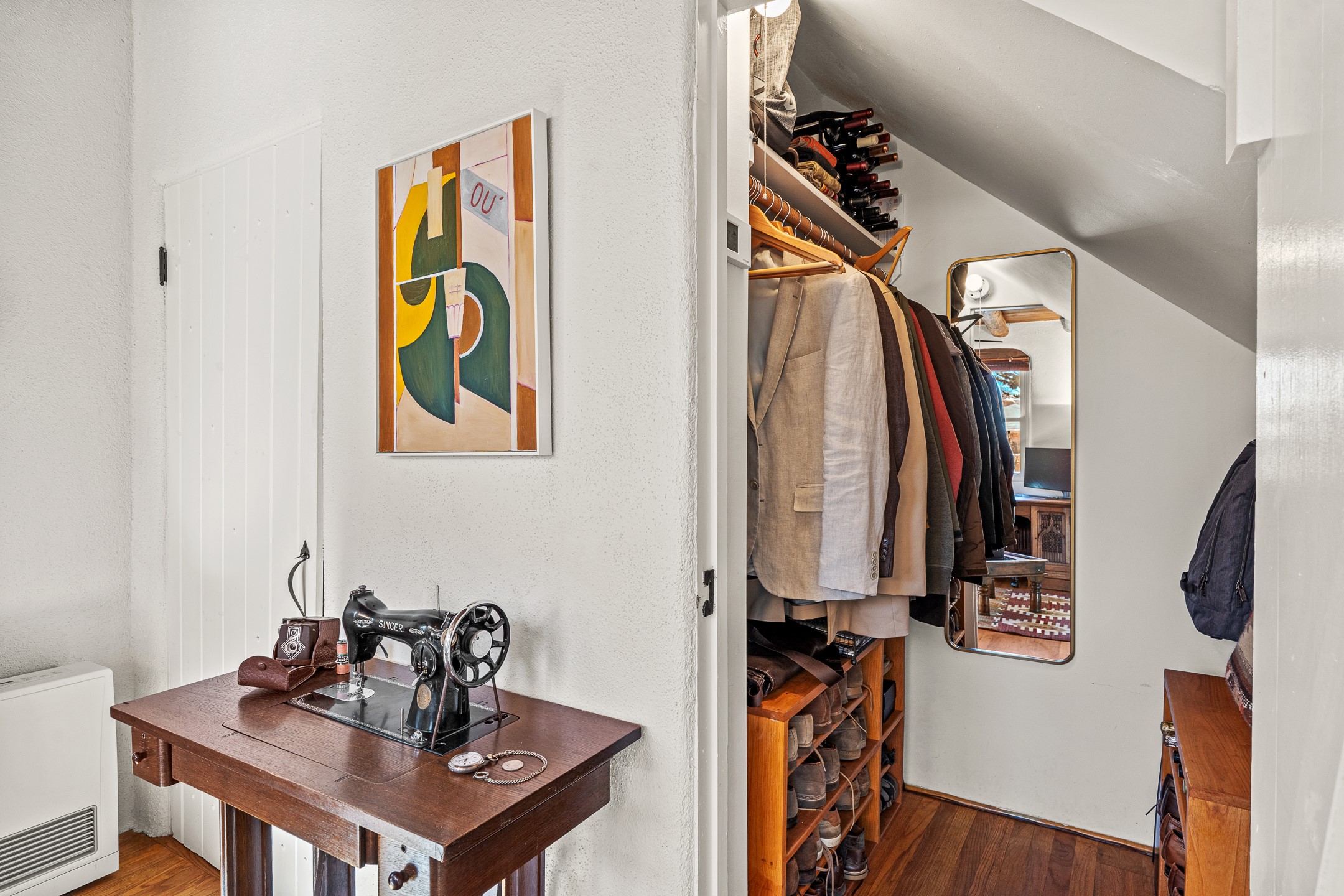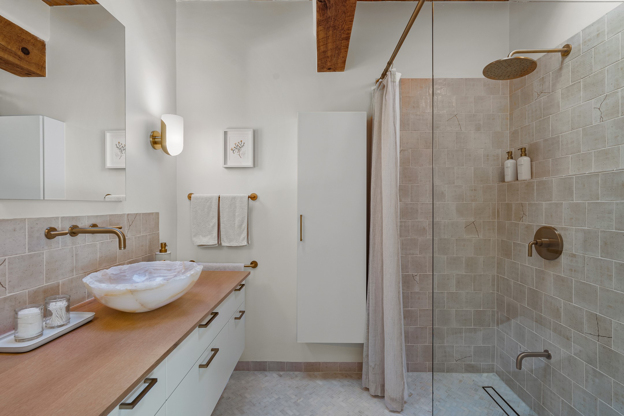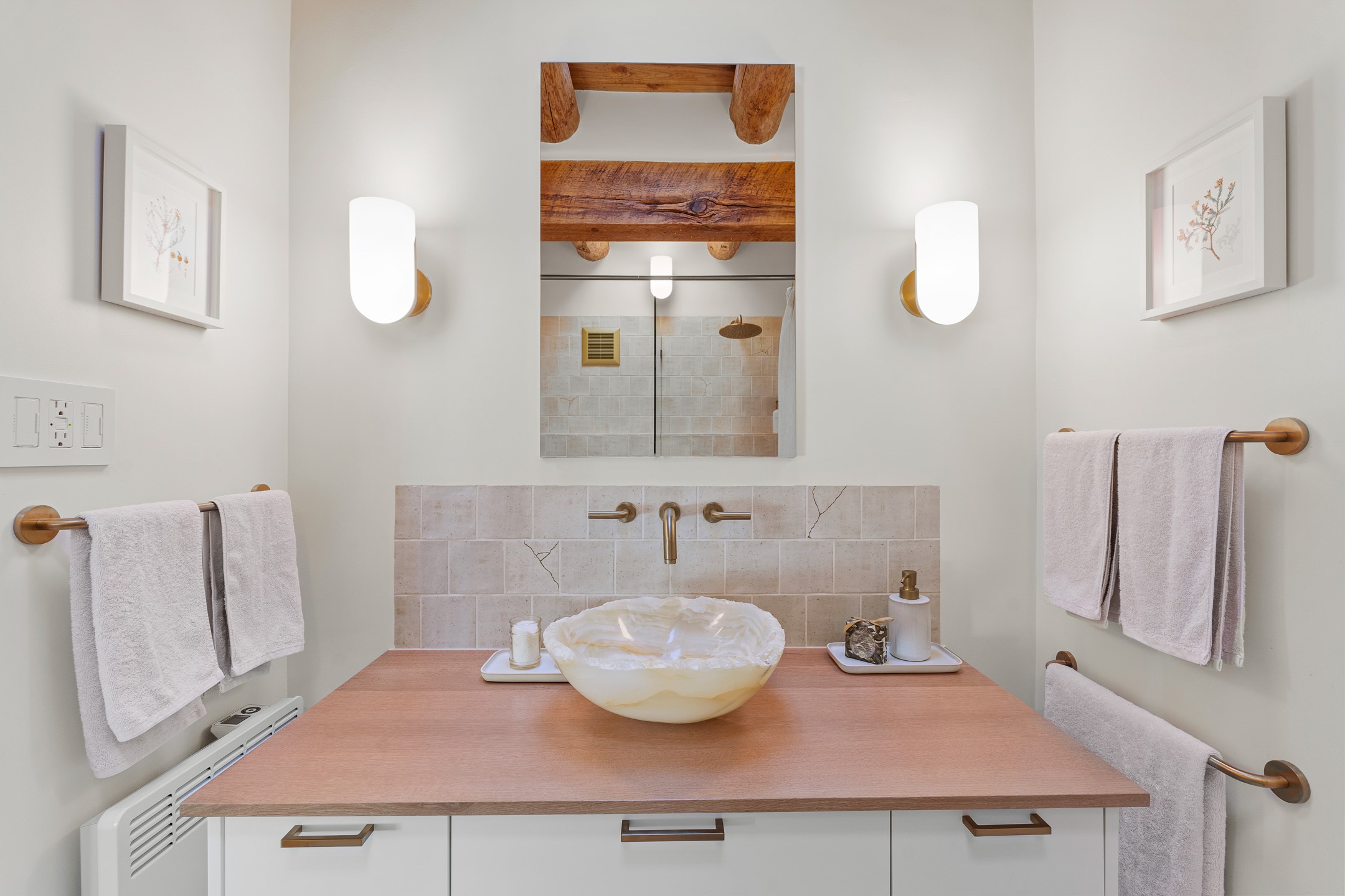 Tucked away on a quiet street in South Capitol, this charming 2-bedroom, 2-bathroom condo has been thoughtfully transformed by Santa Fe Kitchen Design. Every detail of the home reflects quality and craftsmanship with high-end finishes and an integrated design that maximizes style as well as space. The ground level includes the designer kitchen, dining area, a bath with laundry, and a flexible guest bedroom with a walk-in closet which is currently used as an office/sitting room--easily closed off with sliding barn doors. Beautiful hardwood floors run throughout. Upstairs, the sunny living room offers a warm and inviting retreat, perfect for relaxing or entertaining. The primary suite features a stylish built-in desk, a custom walk-in closet, and a beautifully renovated (2025) bathroom complete with a wall-mounted vanity, an onyx vessel sink, Toto wall-mounted toilet, floor-to-ceiling tiled walk-in shower, and radiant heat flooring. Solar panels, installed in 2023 and backed by a 20-year warranty, enhance energy efficiency and sustainability, while a curbside EV outlet is pre-wired for convenient electric vehicle charging. Comfort is ensured year-round with mini-split heating and cooling in all open-concept living areas on both floors, supplemented by electric space heaters in other areas, as well as a stylish gas heater as a back-up heat source. Located just minutes from downtown Santa Fe, this home is a rare opportunity to own a turnkey, design-forward residence in one of the city's most beloved neighborhoods.