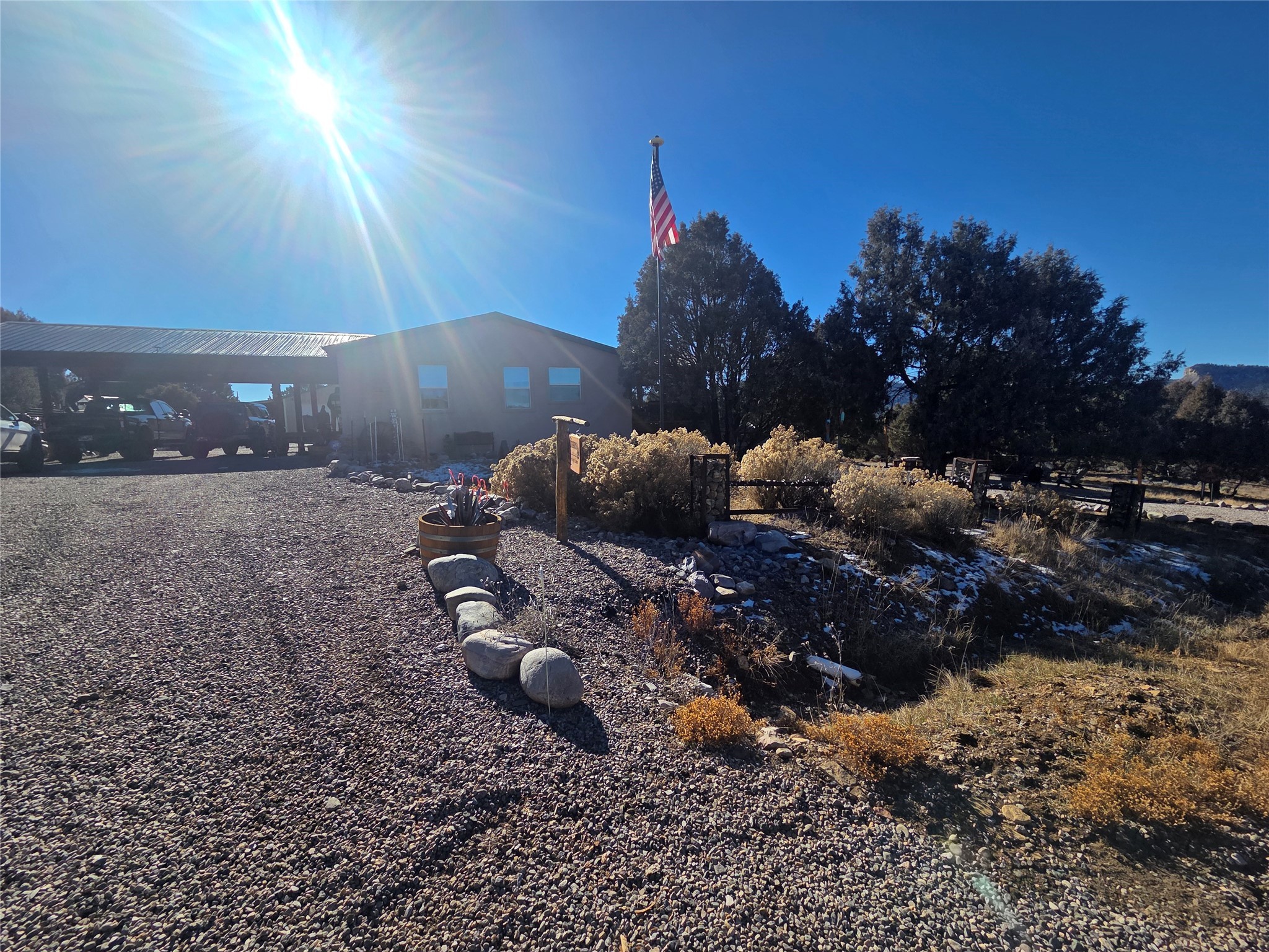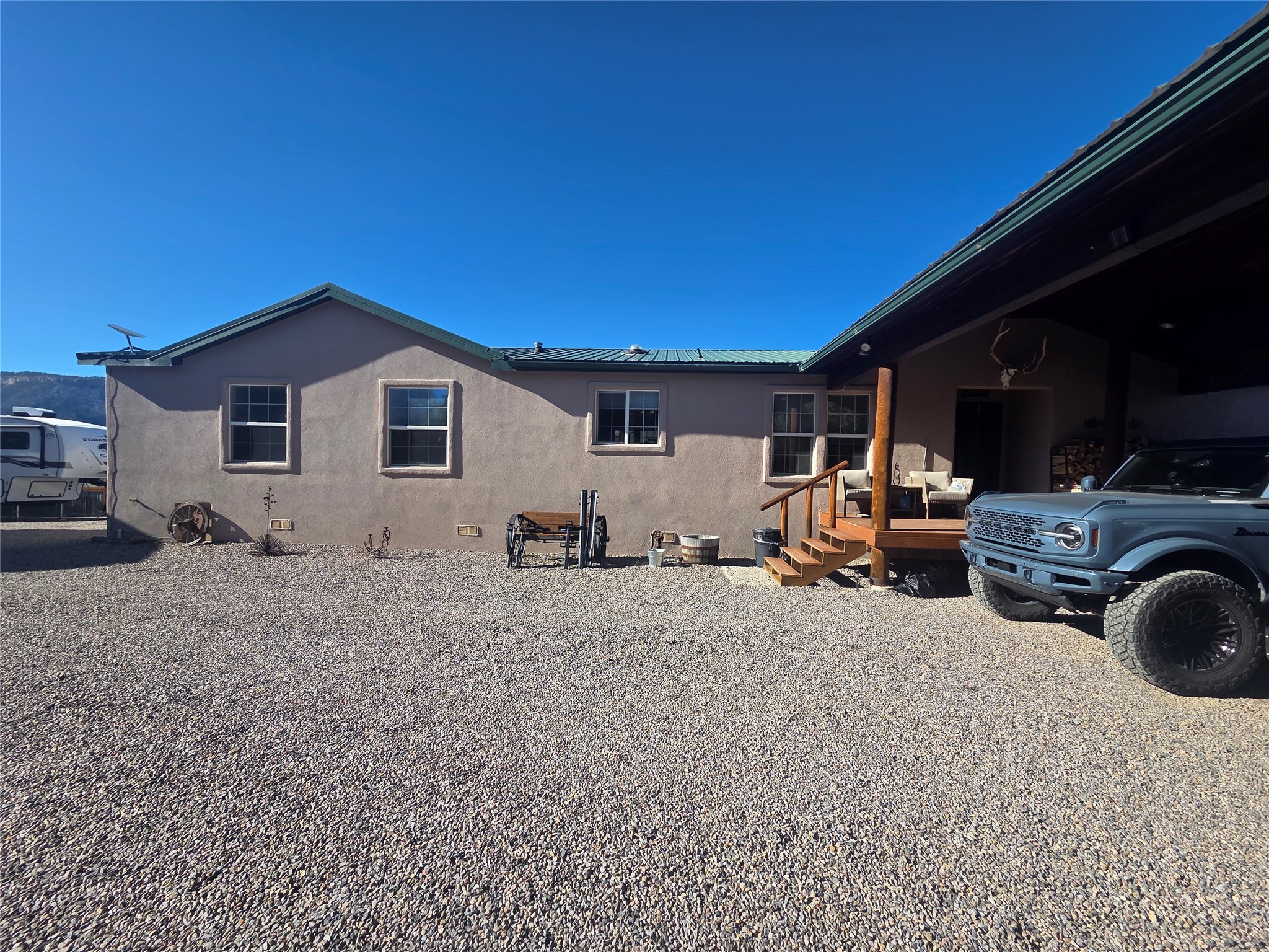 Beautiful Mountain Home located in Pinon Ridge just minutes away from Lake Heron. This is a 4 Bedroom, 2 Full Bath home nestled in on 1.15 acres. The Home has been remodeled with seamless floors, new counter tops, and open concept living space, just to name a few. Enjoy cozy winter nights by the fireplace and outdoor entertaining on the back deck with amazing views of the Chama Sunsets. Also outdoors is another place to entertain your friends and family with the bar, indoor and outdoor seating as well as dance the night away on the outside dance floor. For those of you that want to grow your own veggies - there is a green house in place to do just that. The large 2 car garage will store all your outdoor toys as well as covered parking next to the garage. Learn to share you space with the abundance of wildlife that live in the area. Make this your get-a-way from the Hustle and Bustle of the city living OR a full-time Home where you get to enjoy every morning on the deck with a cup of coffee.