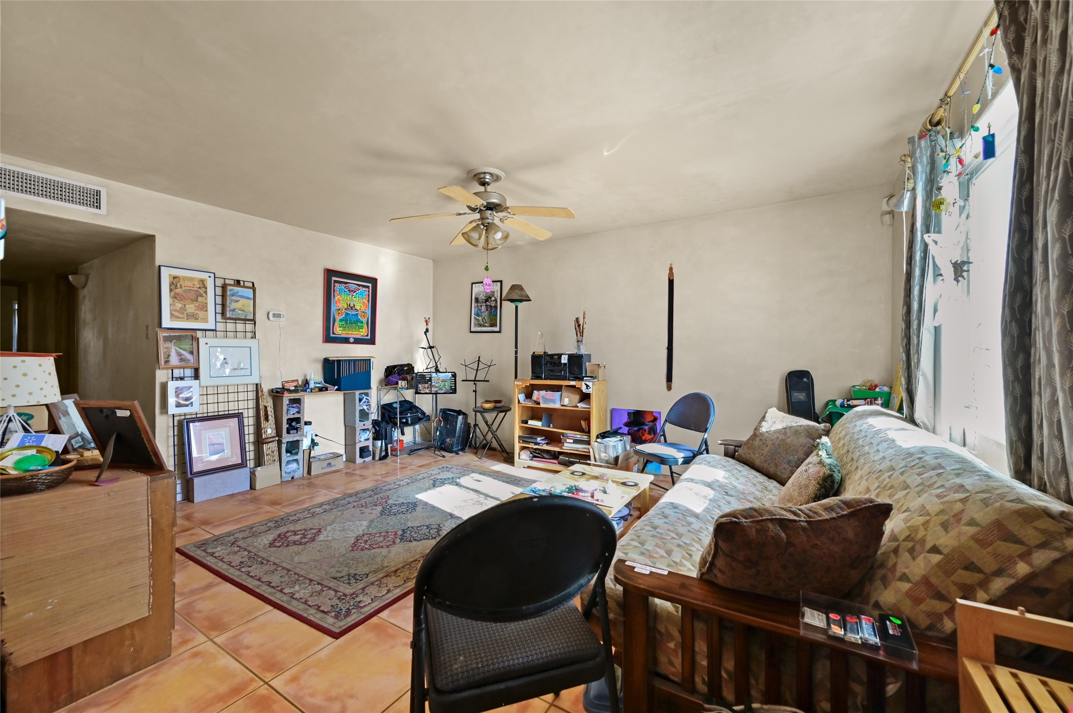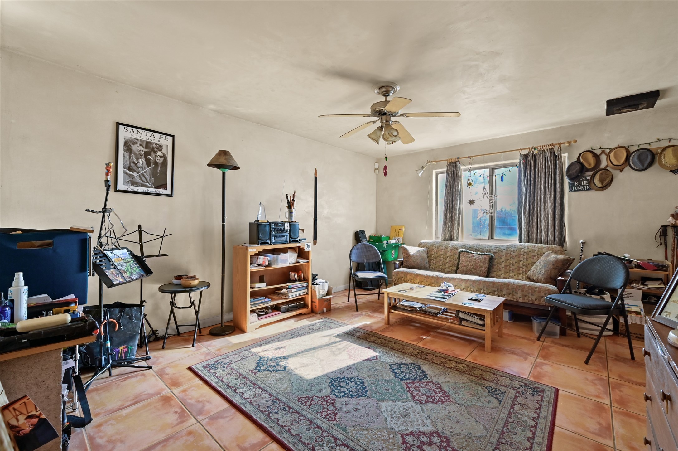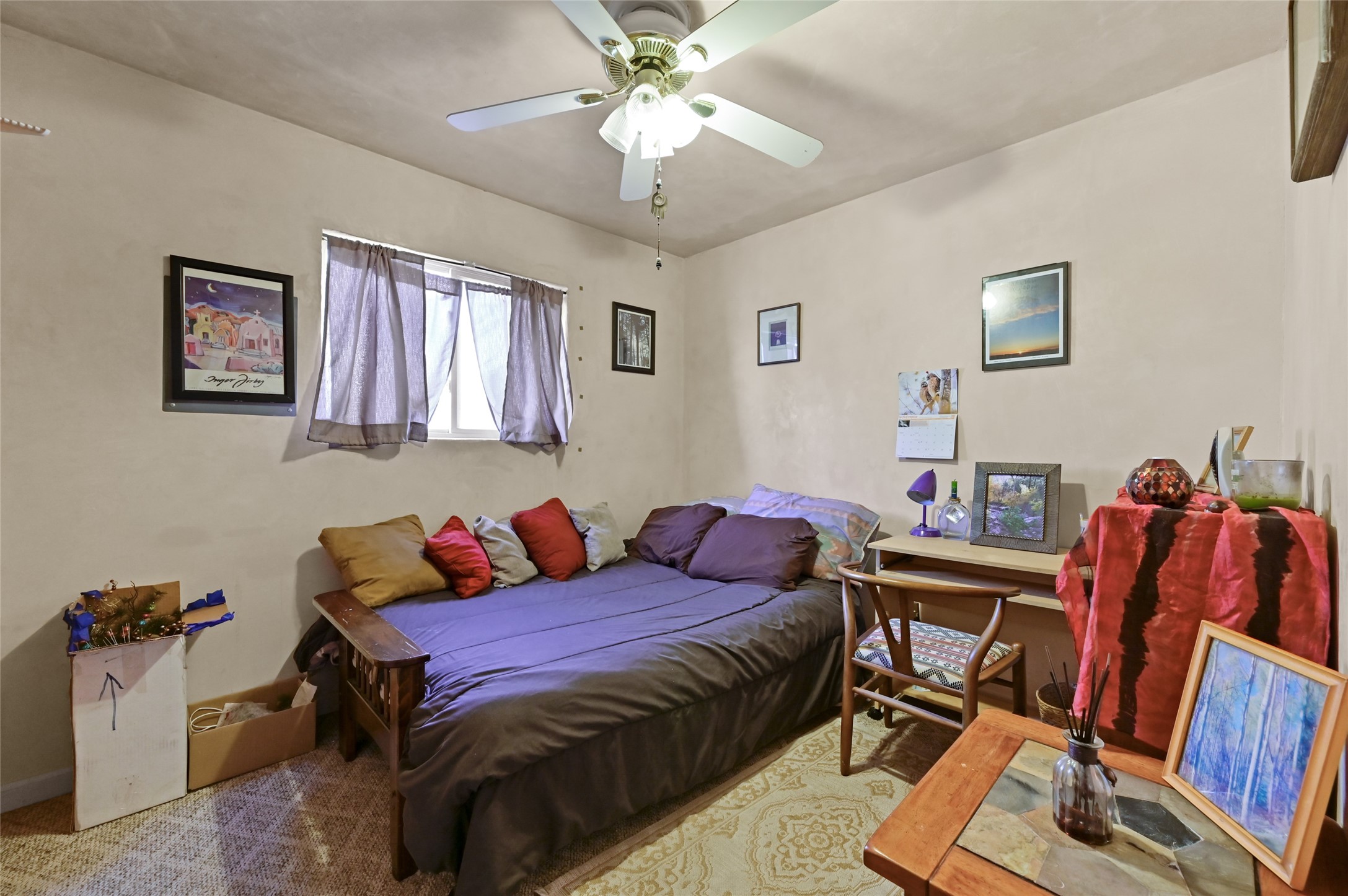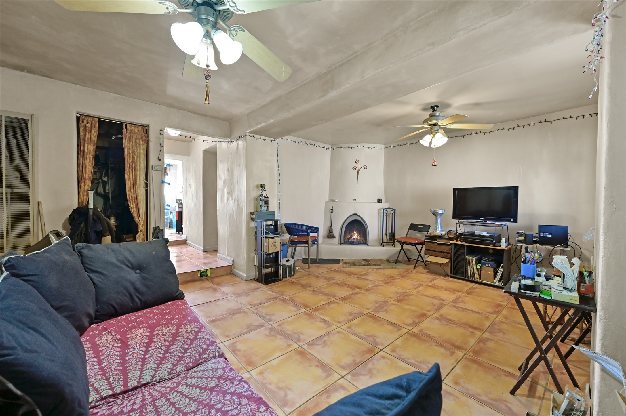 This warm and comfy home features a contemporary open floor plan, a separate den with a Kiva fireplace, some plaster walls, updated lighting & plumbing fixtures, 16-inch Italian tile, Berber carpet, insulated windows & a separate laundry room. Walled front yard and a large back yard landscaped with mature trees & flowers providing shade & color through the summer months, a great place to entertain or bird watch.
