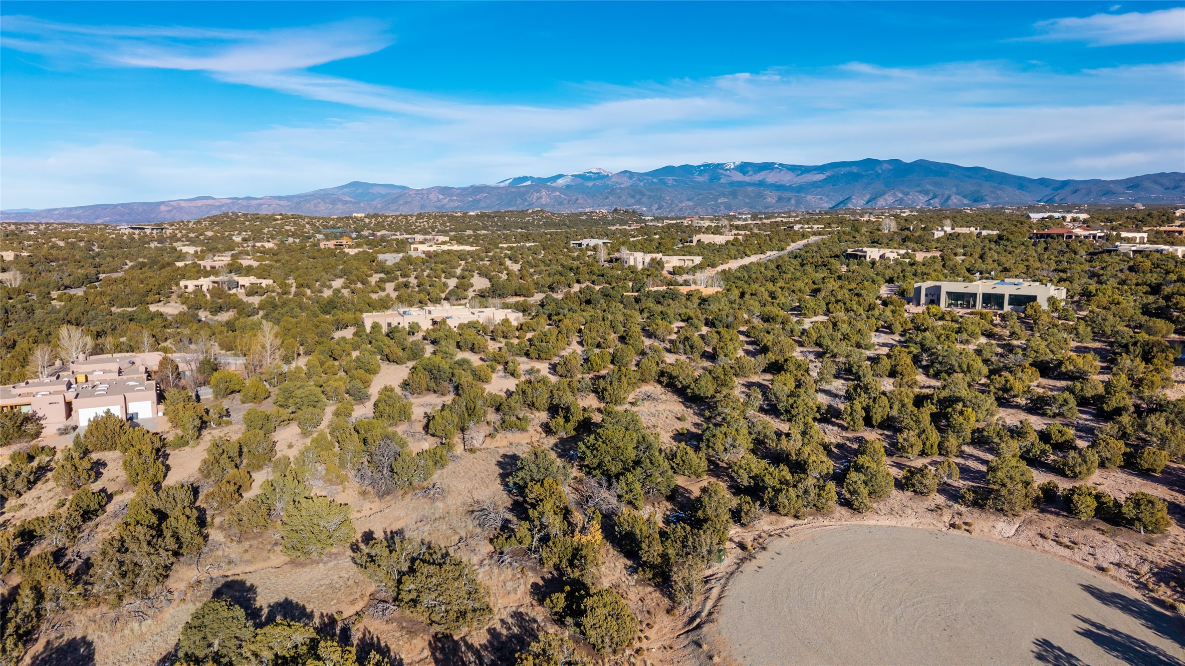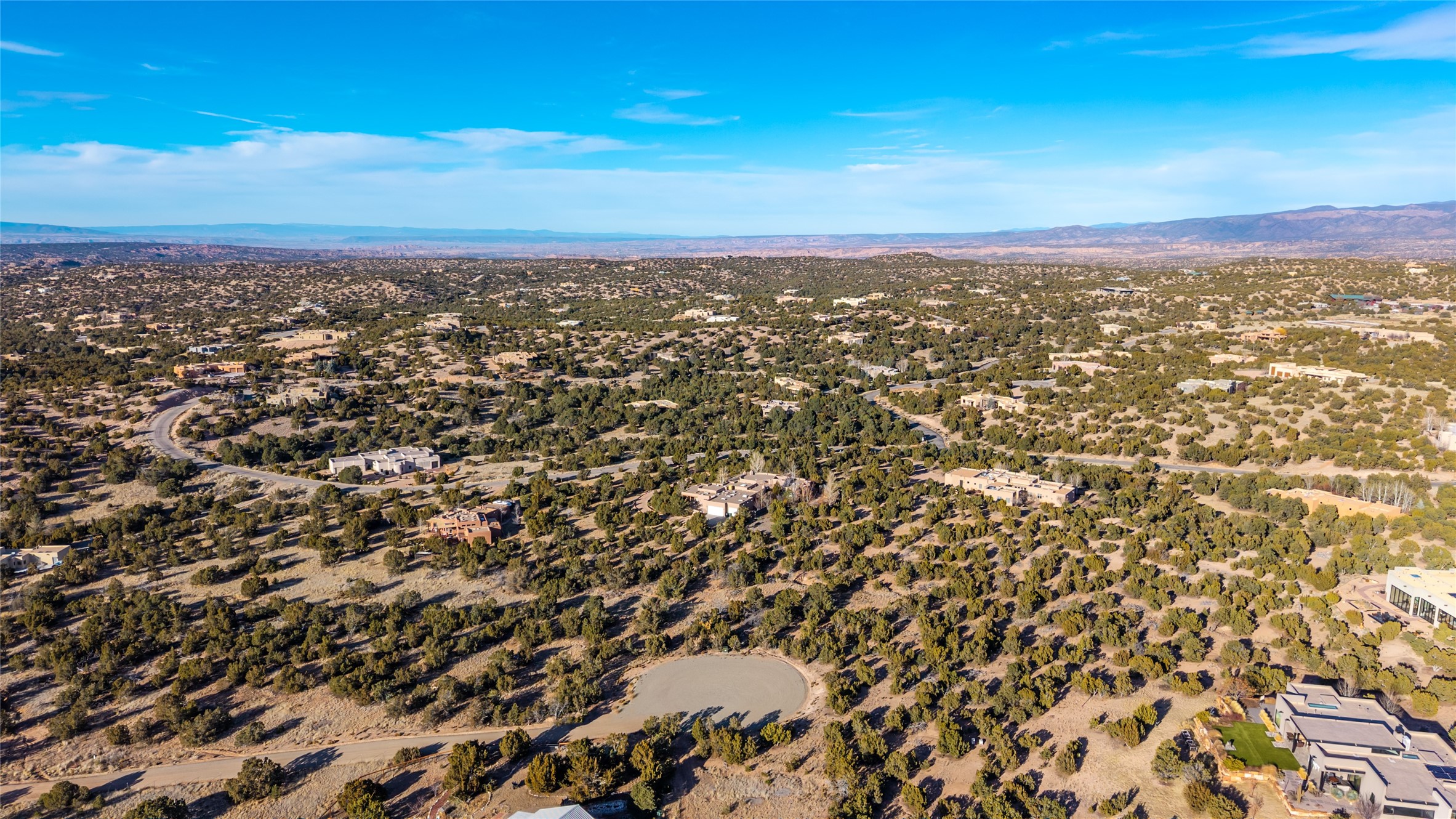 This gorgeous 2.5 acres plot sits at the end of quiet cul de sac and features a gentle slope and panoramic views of the Jemez mountains to the west and the Sangre de Cristos to the east. Serene and tranquil, yet only minutes from downtown- this lot is an ideal location to build your dream home.Price includes a membership to the much desired Las Campanas Country Club. There is a Newly installed transformer on site. No HOA. Shared well.