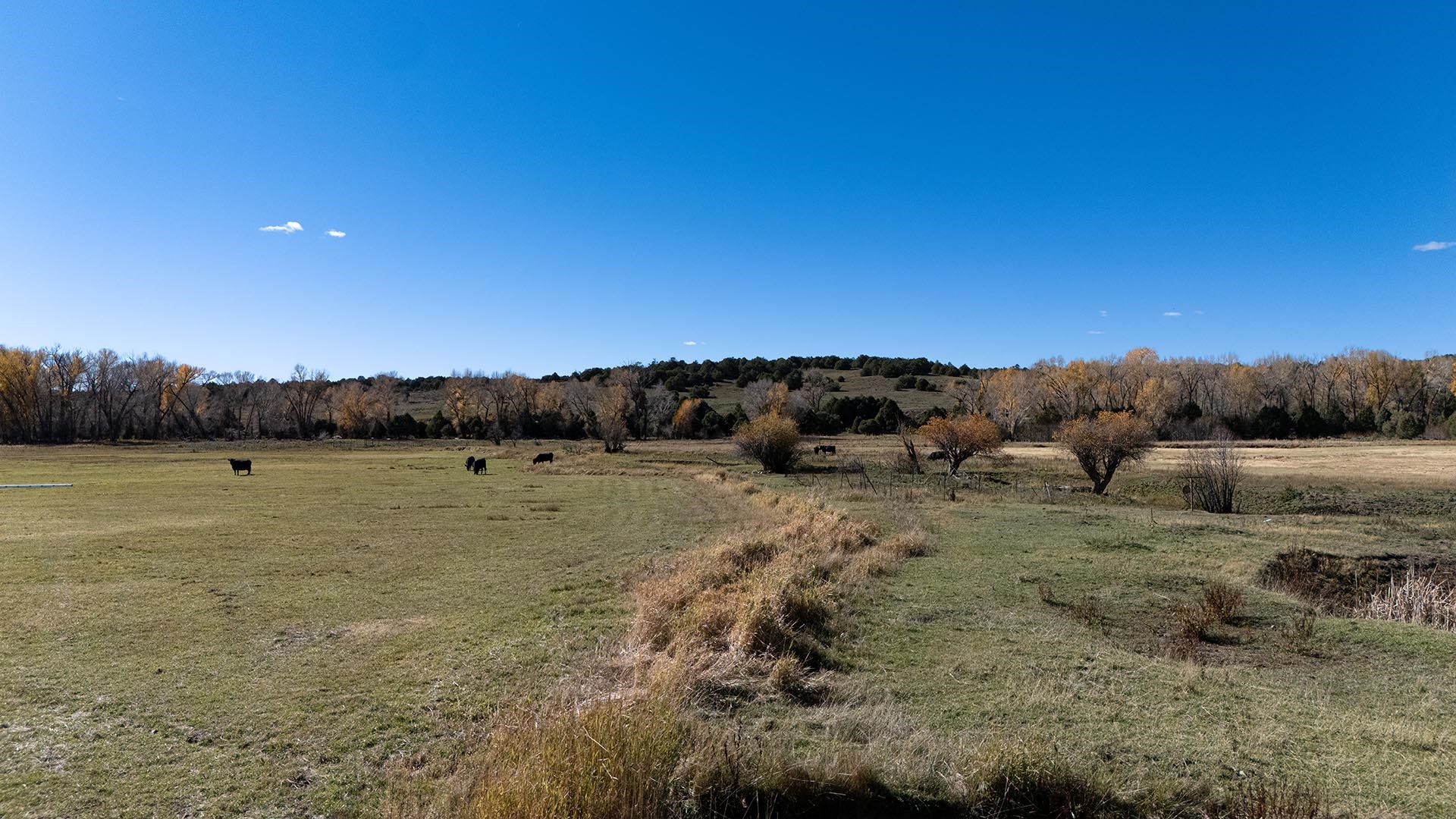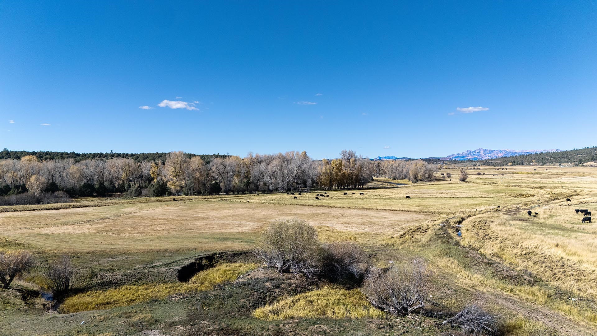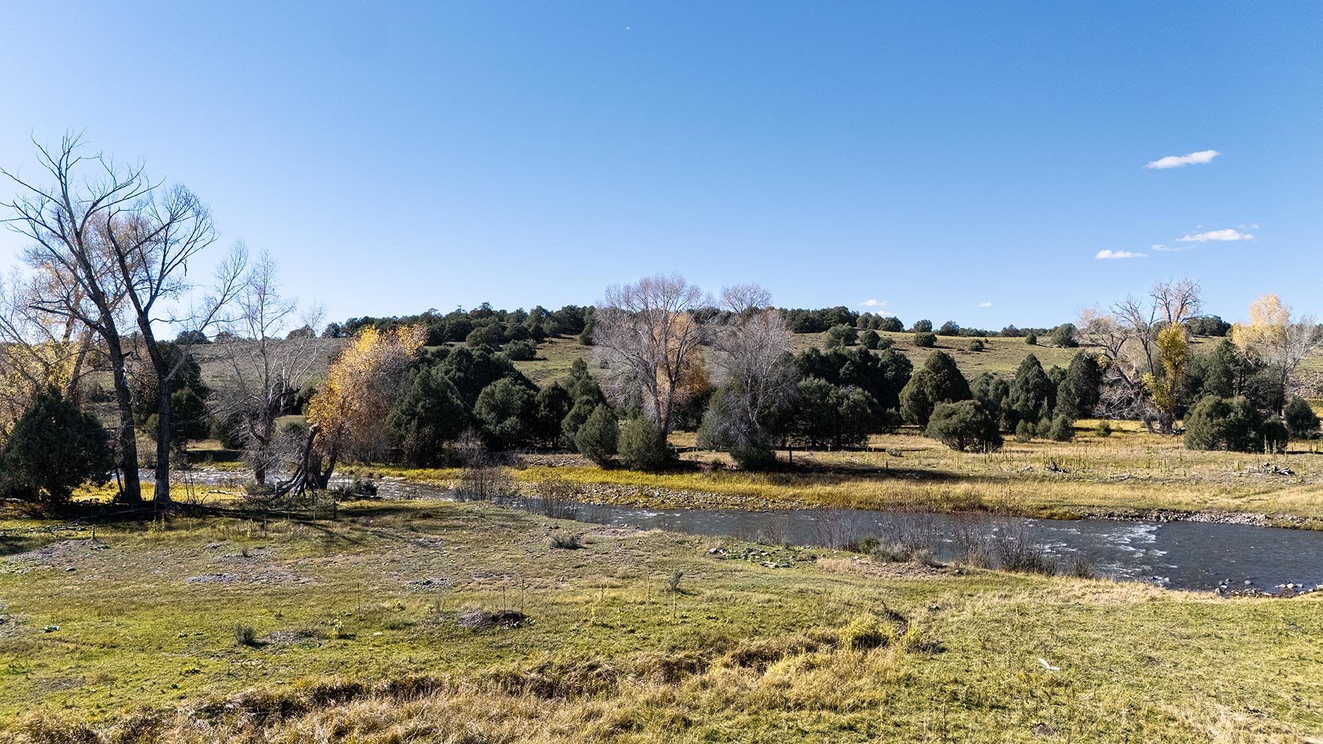 El Barranco Ranch on the Chama River consists of 440 gorgeous acres, blessed with 1.5 miles of both sides of the Chama River in Northern New Mexico. The El Barranco trio of fly fishing, agriculture, and big game hunting is difficult to match on one property. The ranch offers excellent fly fishing on the trout-rich Chama River, which winds through a beautiful setting of cottonwoods. Fly fishing is a prominent feature, but the opportunity to hunt elk or mule deer cannot be overlooked. The ranch borders the vast, undeveloped acreage of the Jicarilla Apache Nation, as well as the renowned elk and mule deer habitat that exists on those lands. Elk and mule deer routinely visit El Barranco's hayfields and river bottom to feed and water. The ranch is eligible for and has received multiple hunting vouchers. It is not unusual at El Barranco in the early fall to hunt elk or mule deer in the morning, fish for large brown and rainbow trout in the middle of the day, and then enjoy another evening hunt. There is more value than just the first-class recreational aspects of the ranch. Substantial senior water rights lead to great hay production and cattle grazing, which has been the primary focus of the current owners. Farm work can be done hands-on or by retaining existing hay and grazing leases. At a time when live water fishing properties and senior water rights are hard to find, a rare recreational and agricultural opportunity awaits the buyer of this gold medal property. Buyers seeking additional acreage should consider the 270 acre El Barranco East property, located across the highway.