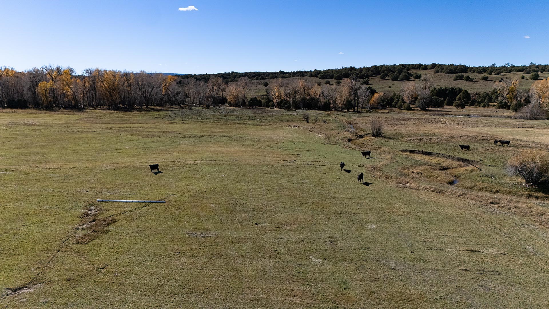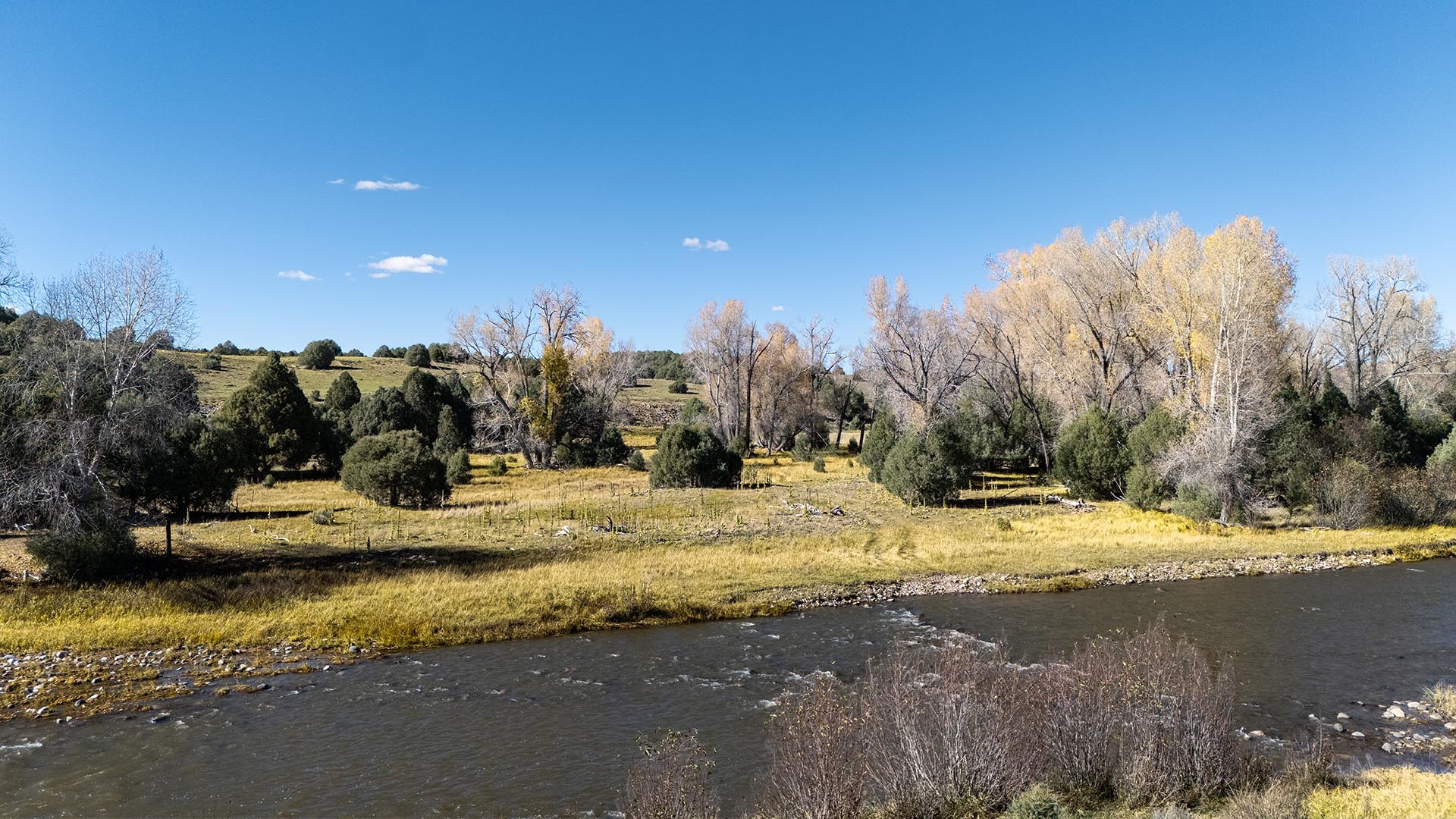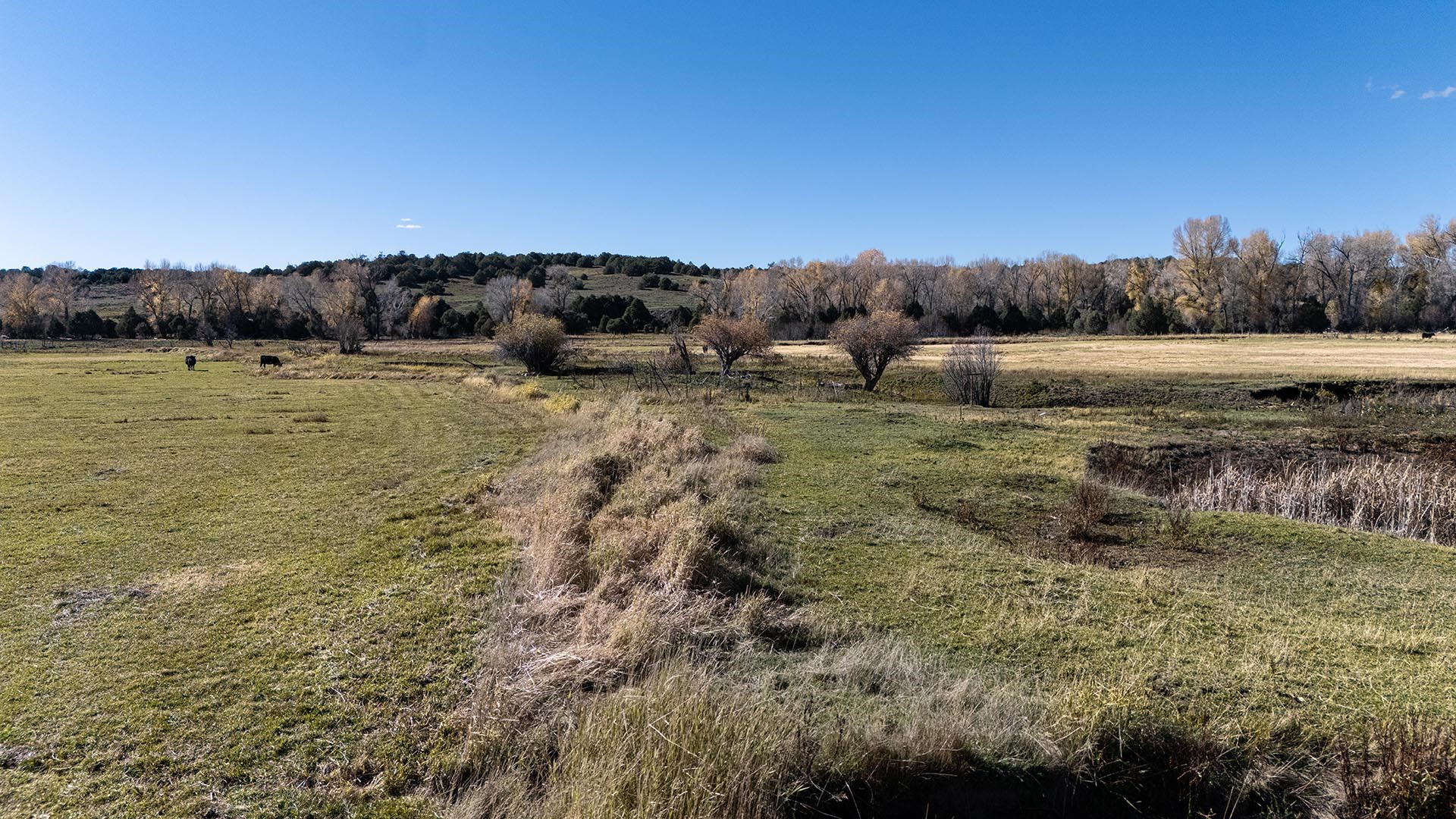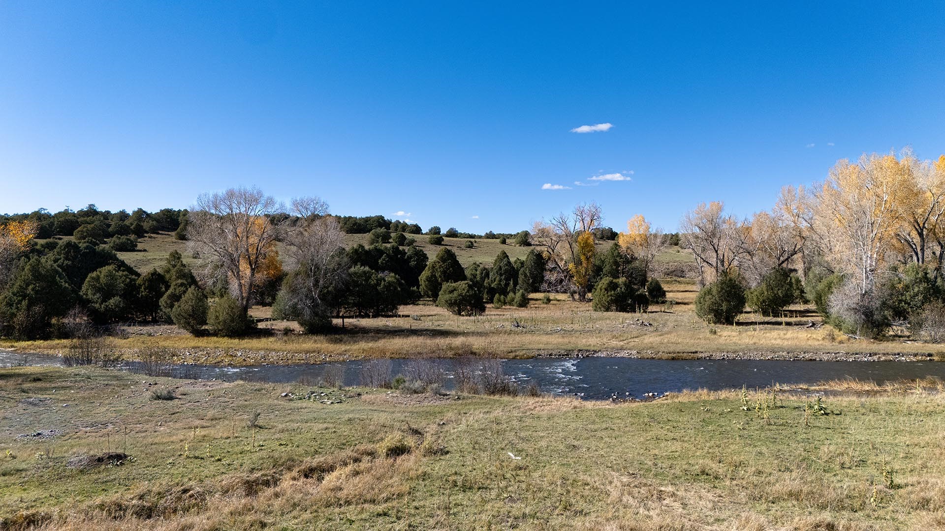 El Barranco Ranch on the Chama River consists of 440 gorgeous acres, blessed with 1.5 miles of both sides of the Chama River in Northern New Mexico. The El Barranco trio of fly fishing, agriculture, and big game hunting is difficult to match on one property. The ranch offers excellent fly fishing on the trout-rich Chama River, which winds through a beautiful setting of cottonwoods. Fly fishing is a prominent feature, but the opportunity to hunt elk or mule deer cannot be overlooked. The ranch borders the vast, undeveloped acreage of the Jicarilla Apache Nation, as well as the renowned elk and mule deer habitat that exists on those lands. Elk and mule deer routinely visit El Barranco's hayfields and river bottom to feed and water. The ranch is eligible for and has received multiple hunting vouchers. It is not unusual at El Barranco in the early fall to hunt elk or mule deer in the morning, fish for large brown and rainbow trout in the middle of the day, and then enjoy another evening hunt. There is more value than just the first-class recreational aspects of the ranch. Substantial senior water rights lead to great hay production and cattle grazing, which has been the primary focus of the current owners. Farm work can be done hands-on or by retaining existing hay and grazing leases. At a time when live water fishing properties and senior water rights are hard to find, a rare recreational and agricultural opportunity awaits the buyer of this gold medal property. Buyers seeking additional acreage should consider the 270 acre El Barranco East property, located across the highway.