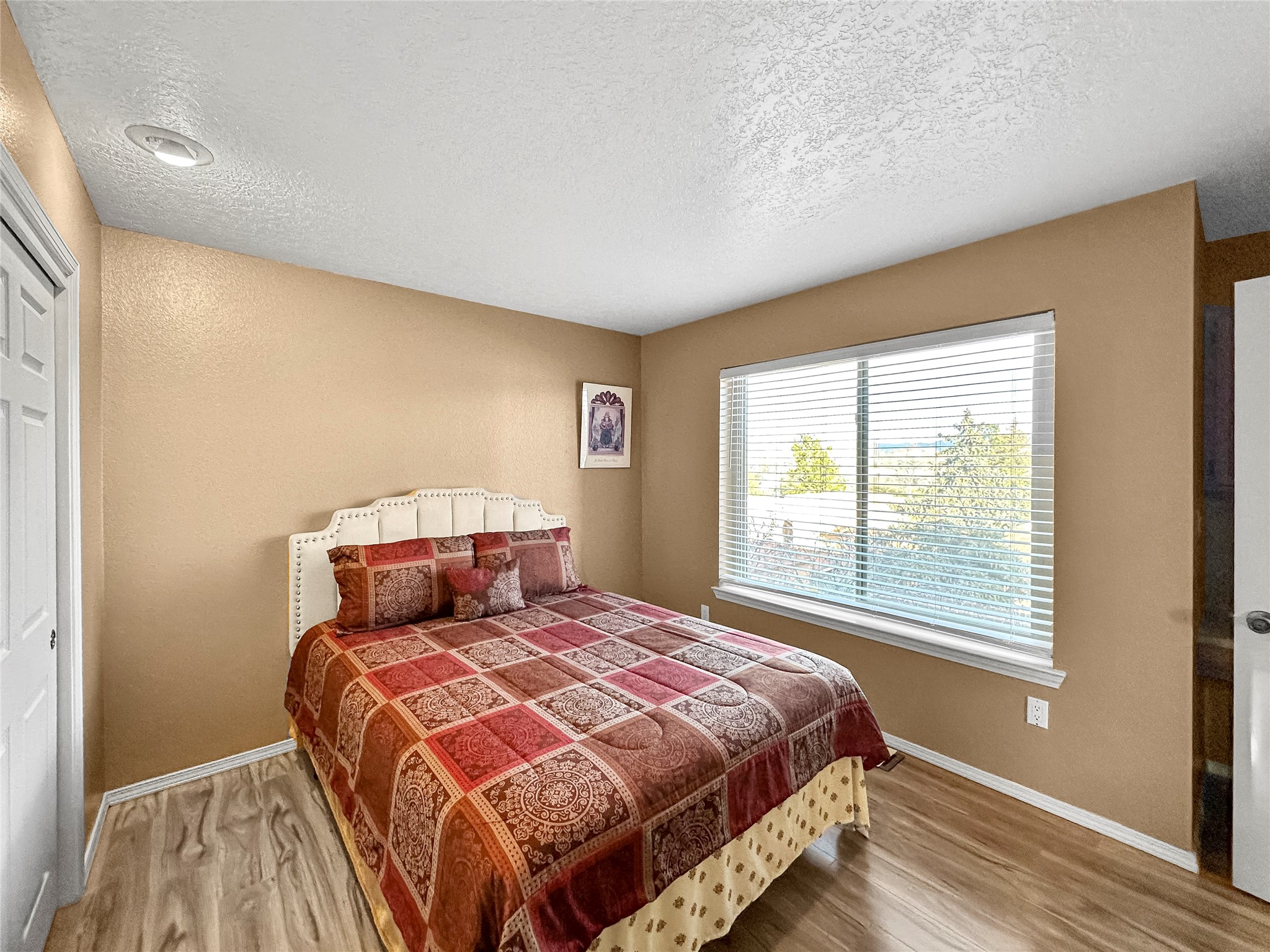 This very spacious home is ready for you to move right on in. Walk into the living room with 2 story ceiling and a grand fireplace that reaches to the top, all of which gives the feeling of vastness. The ground floor offers 2 bedrooms one of which is the Primary ensuite and a powder room for guests. The Kitchen and dining area are surrounded by the main living room and the newer Family room Den. The attached 2 car garage is accessed through the laundry/ mudroom. Such an easy flow floorplan. Upstairs are 2 more bedrooms a full bath and still another family bonus area. Plenty of closet space and storage in this home. The roof is 2 years old and has 10 years left on the warranty. New Windows still under warranty A new Furnace and air conditioner also 2 years old as well as new flooring. The backyard is low maintenance with beautiful roses, and the front yard is nicely manicured. The closet doors not pictured have been ordered. All this in a quiet Cul de sac, in a gated community. Easy access to 599 for a Los Alamos Commute or faster access to the Plaza.