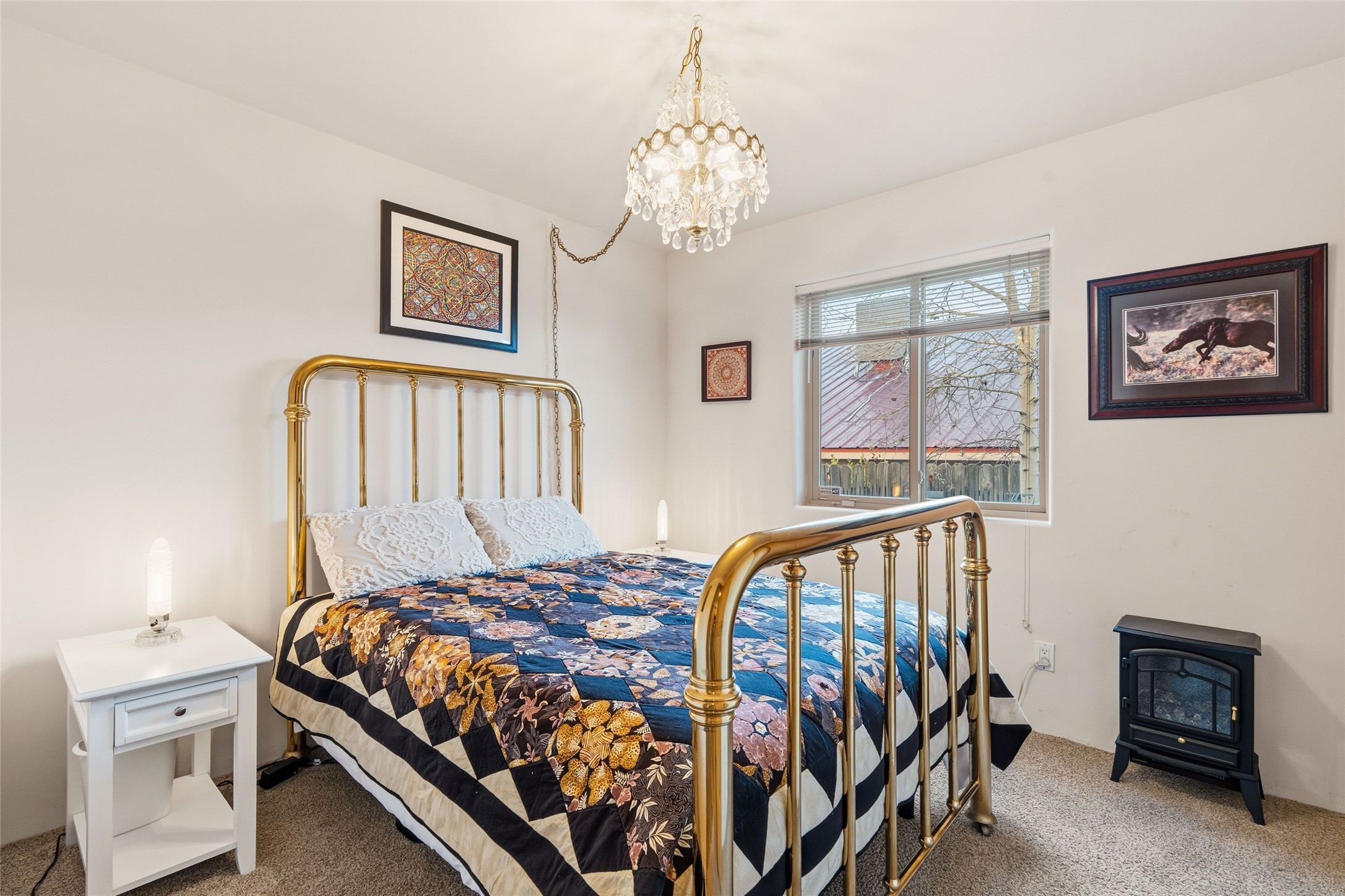 Desirable Pueblos del Sol Home in the Coveted Pion School Zone. This inviting 1,386 sq. Foot, 3-bedroom, 2-bath residence has a new roof (2023) and driveway (2025). Thoughtfully designed for comfortable living, the home features a welcoming living area with high ceiling and beams, anchored by a classic kiva fireplace--perfect for cozy evenings. The thoughtfully laid out kitchen flows around a large center island and into a well-lit dining space that opens up to the back garden. Enjoy recently updated flooring throughout the main living spaces. The primary suite offers an updated bath and direct access to the back portal, creating a seamless indoor-outdoor connection and a peaceful retreat. Step outside to enjoy the generously sized fully-enclosed backyard, ideal for entertaining, gardening, pets, or simply relaxing under New Mexico skies. With its prime location, functional layout, and expansive outdoor space, this home presents a wonderful opportunity in one of Santa Fe's most popular neighborhoods.