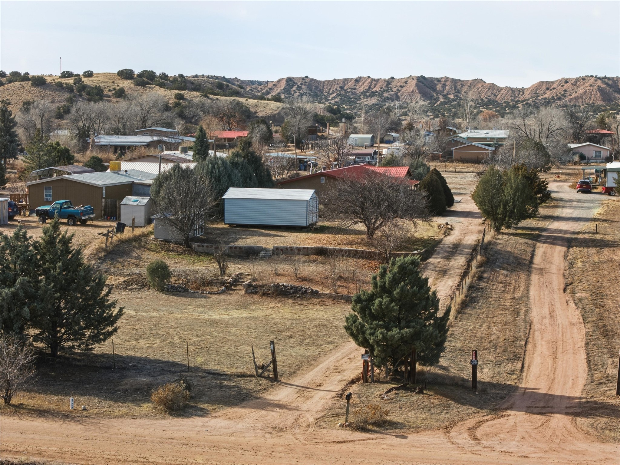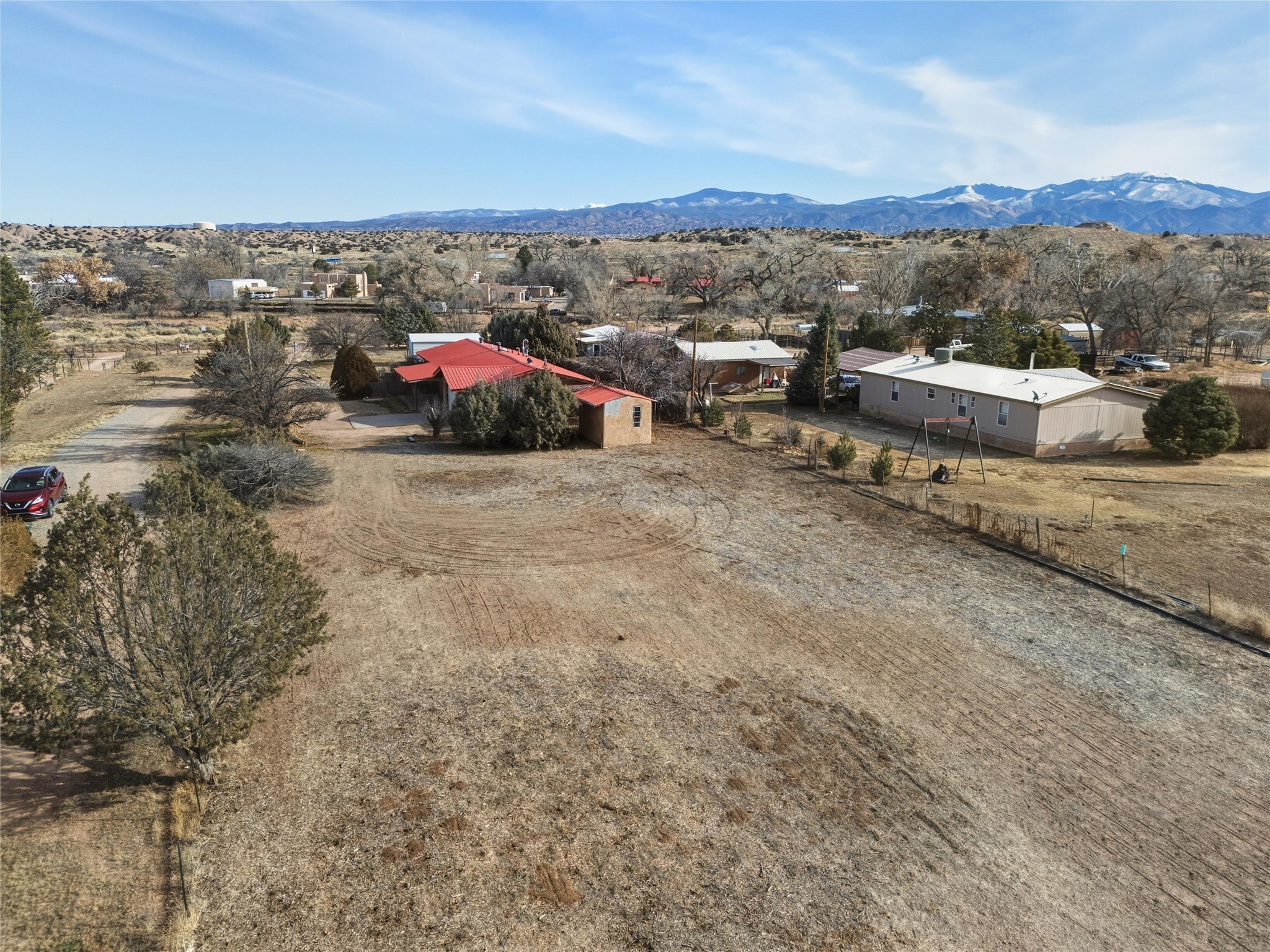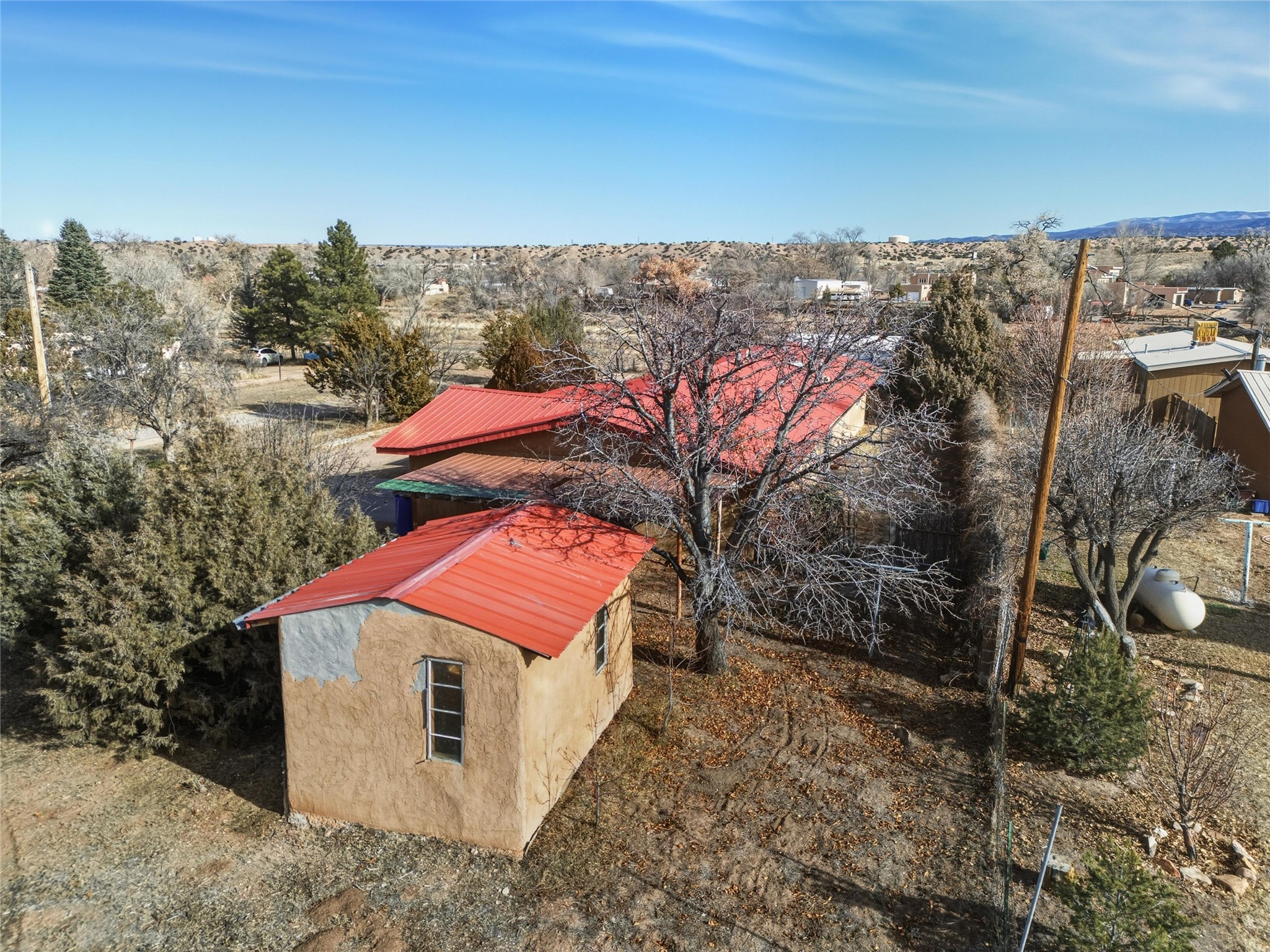 Nestled on over an acre of land with breathtaking mountain views, this updated and well-maintained home offers the perfect blend of modern convenience and rustic charm. From its spacious, light-filled interiors to its serene outdoor setting, this property provides the ideal environment for both relaxation and creativity. With a short commute to Los Alamos and Santa Fe, you can enjoy the peace and privacy of rural living without sacrificing convenience. The heart of the home is the expansive, modern kitchen. Featuring luxurious granite countertops, a large central island with extra storage, and stainless steel appliances, this kitchen is designed for both function and style. Whether you're preparing meals for the family or hosting friends, the layout is perfect for food prep and entertaining, with ample room to gather around the island. A charming wood burning stove located in the kitchen adds warmth and ambiance, creating a cozy focal point for winter mornings and evenings spent cooking and connecting. The kitchen flows seamlessly into the main living areas, offering an open and comfortable layout. The property offers an incredible amount of space for gardening, hobbies, or projects. Mature fruit trees add charm and productivity to the landscape, while the insulated shed provides excellent space for storage or can easily be used as a workshop. The home features an updated bathroom with modern fixtures and stylish finishes, offering both comfort and functionality. This is a rare opportunity to own a well-cared-for home with space to grow, stunning views, and easy access to nearby communities. A perfect balance of comfort, functionality, and location.