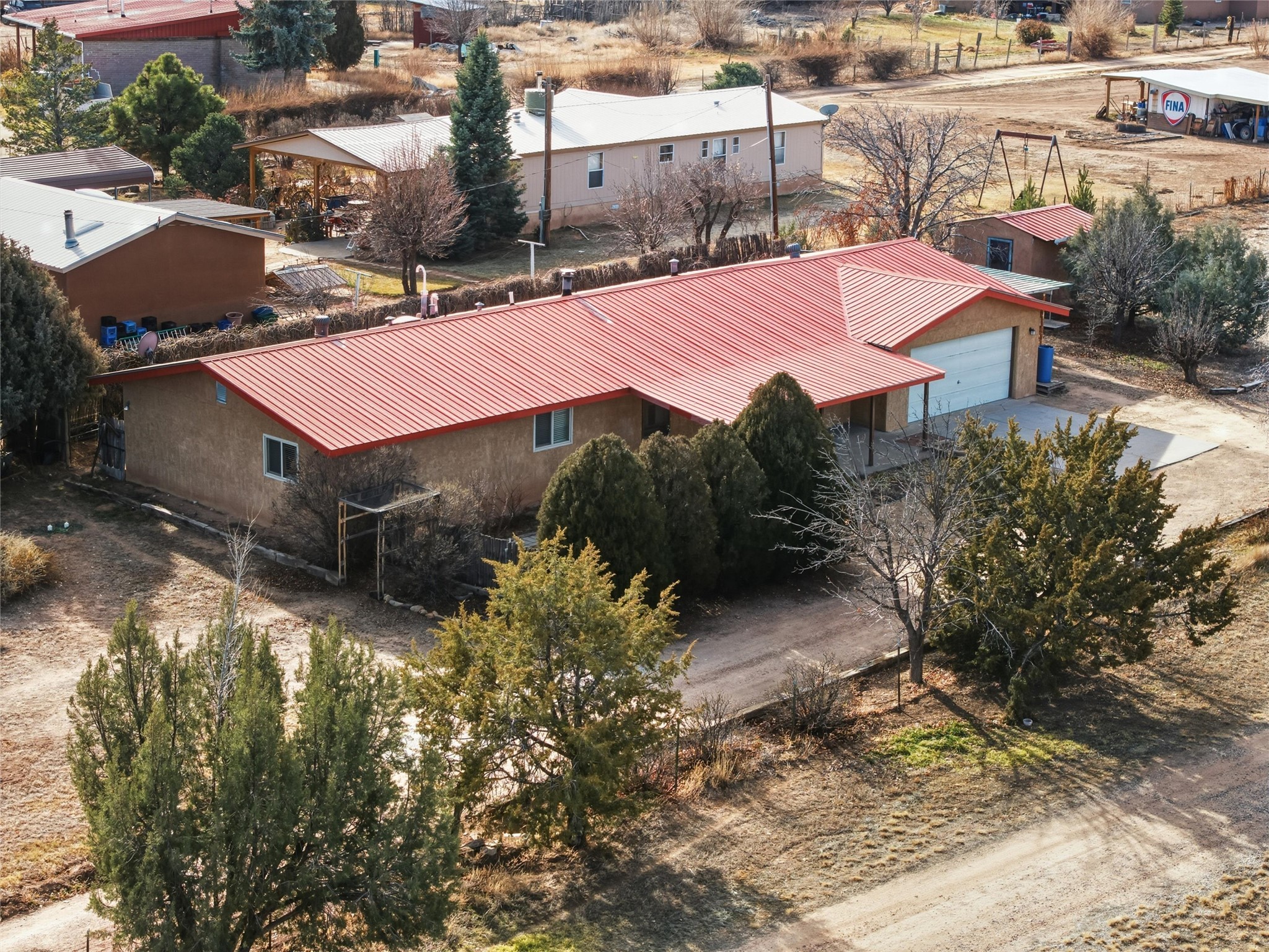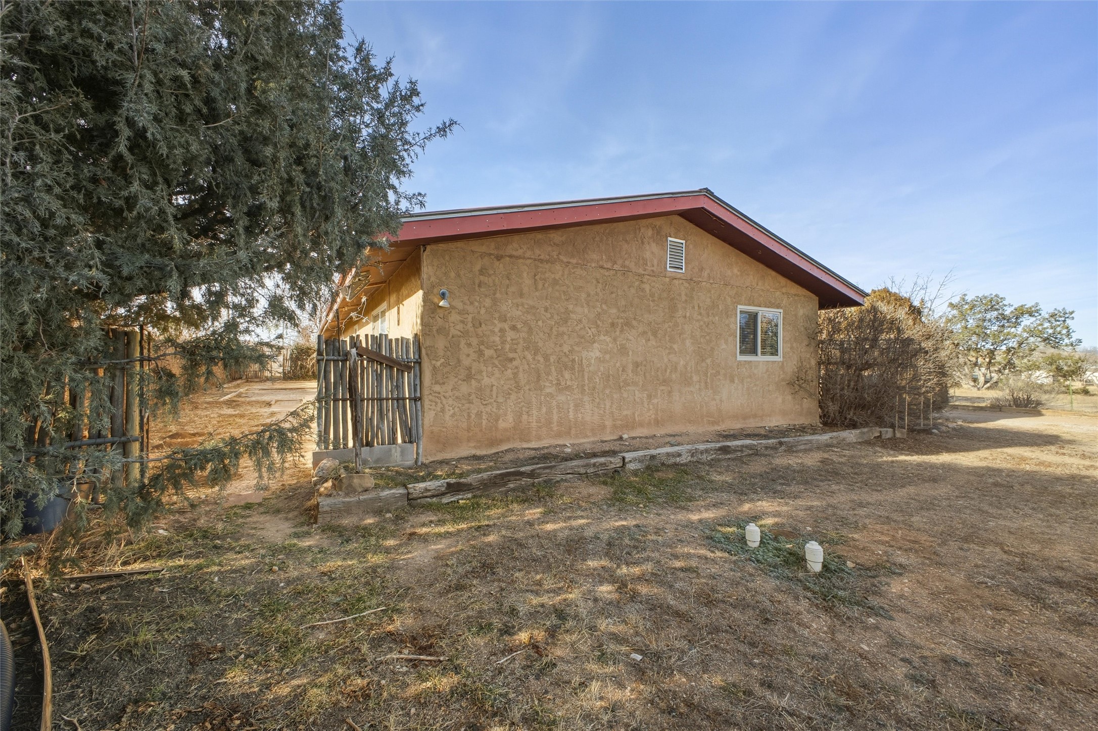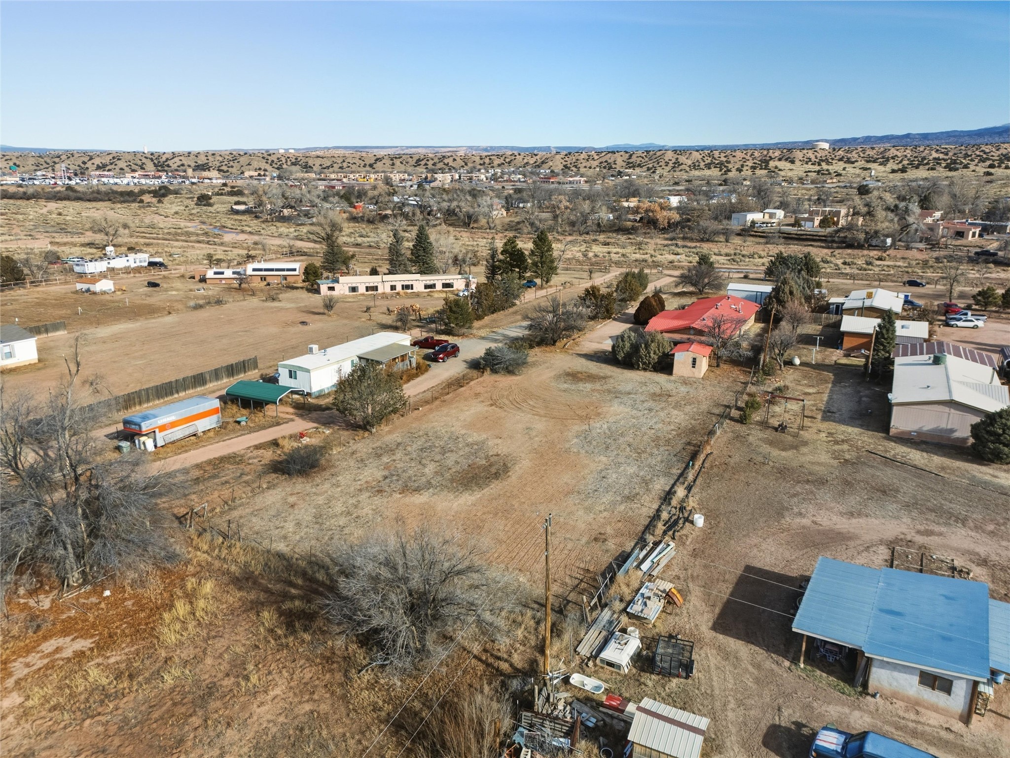 Nestled on over an acre of land with breathtaking mountain views, this updated and well-maintained home offers the perfect blend of modern convenience and rustic charm. From its spacious, light-filled interiors to its serene outdoor setting, this property provides the ideal environment for both relaxation and creativity. With a short commute to Los Alamos and Santa Fe, you can enjoy the peace and privacy of rural living without sacrificing convenience. The heart of the home is the expansive, modern kitchen. Featuring luxurious granite countertops, a large central island with extra storage, and stainless steel appliances, this kitchen is designed for both function and style. Whether you're preparing meals for the family or hosting friends, the layout is perfect for food prep and entertaining, with ample room to gather around the island. A charming wood burning stove located in the kitchen adds warmth and ambiance, creating a cozy focal point for winter mornings and evenings spent cooking and connecting. The kitchen flows seamlessly into the main living areas, offering an open and comfortable layout. The property offers an incredible amount of space for gardening, hobbies, or projects. Mature fruit trees add charm and productivity to the landscape, while the insulated shed provides excellent space for storage or can easily be used as a workshop. The home features an updated bathroom with modern fixtures and stylish finishes, offering both comfort and functionality. This is a rare opportunity to own a well-cared-for home with space to grow, stunning views, and easy access to nearby communities. A perfect balance of comfort, functionality, and location.