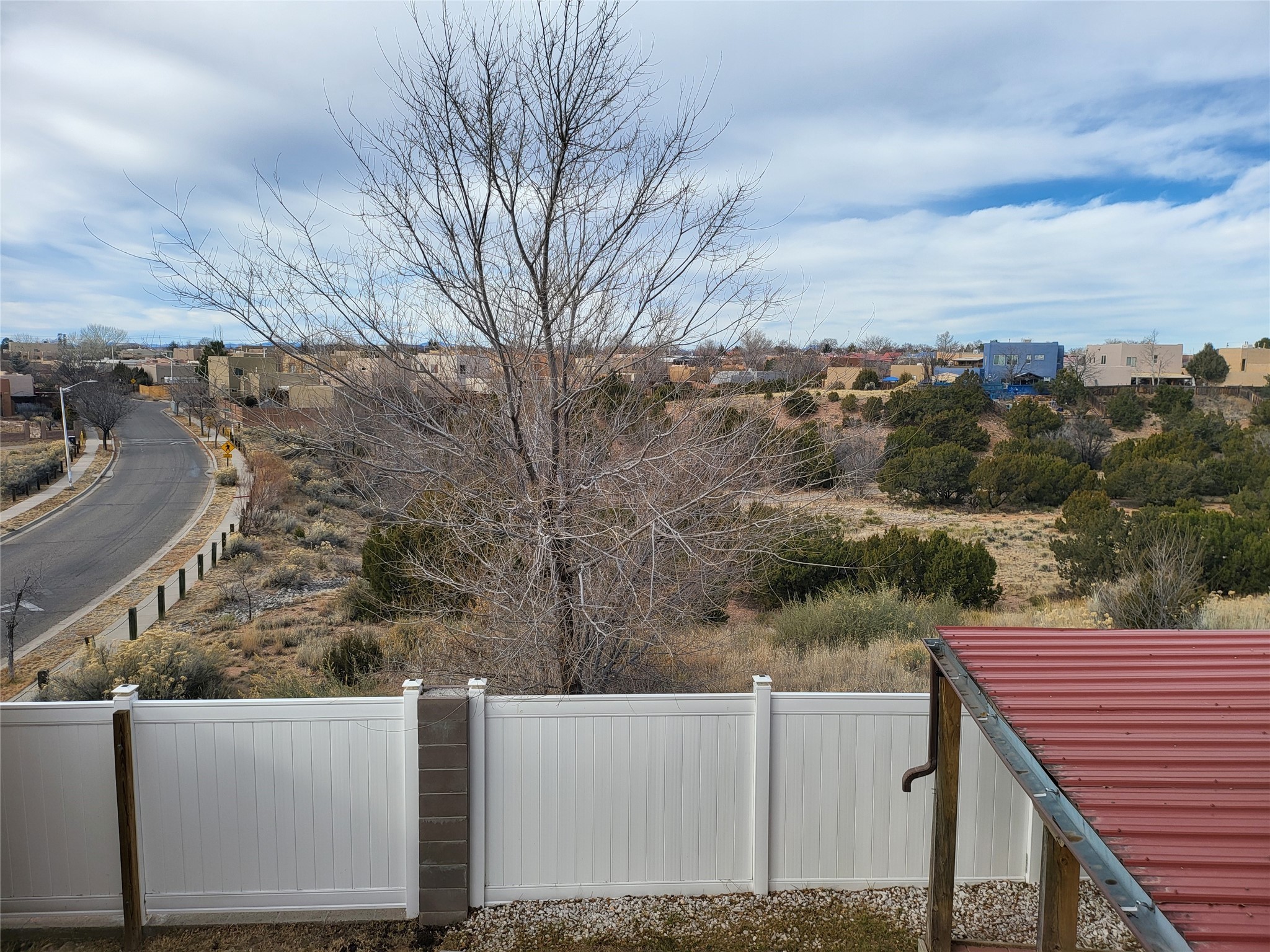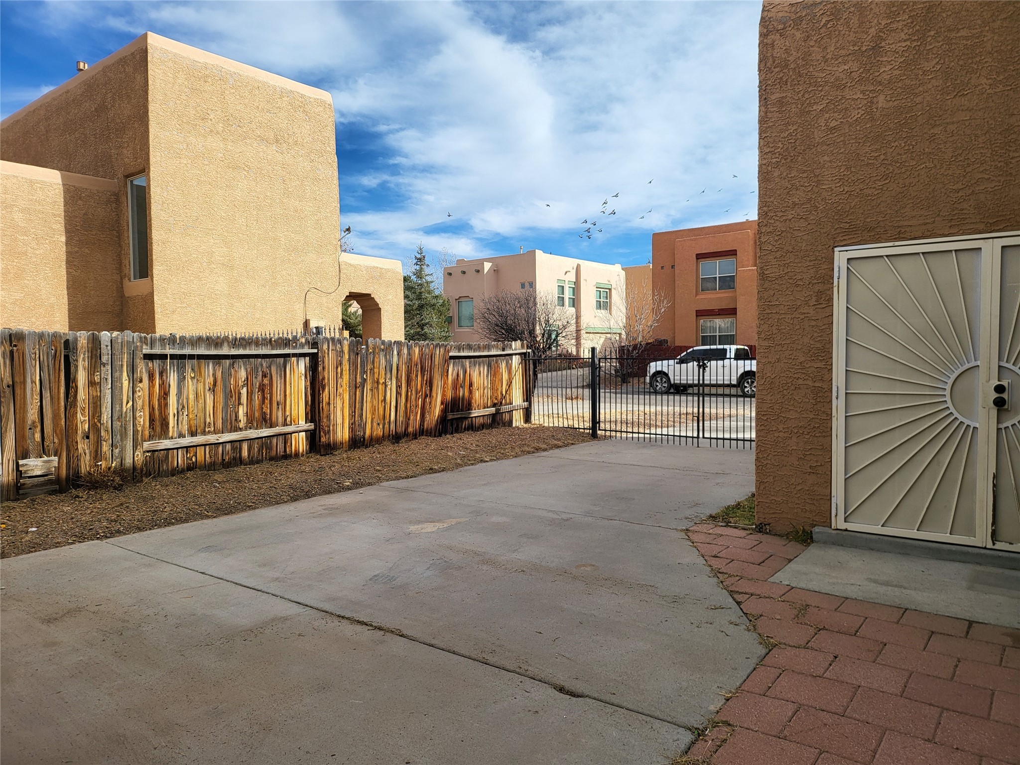 Fantastic location, 4 bedroom, 2.5 baths two story home in the Tierra Contenta neighborhood. Large corner lot and spacious floor plan. Main bedroom is on the ground level with full bath and walk-in closet. Upstairs are three bedrooms and a full bath. High ceilings in the living room, corner gas Kiva fireplace, 2 car garage and extra parking behind the gated drive. Fully fenced private yard with newer white vinyl fencing topped with solar lights. Covered patio area off the garage and shed for extra storage. Additional open space behind fence line, see aerial view for full lot size. No HOA fees, easy access to 599, I-25, Presbyterian Hospital, trails, schools, library, shopping, and restaurants.