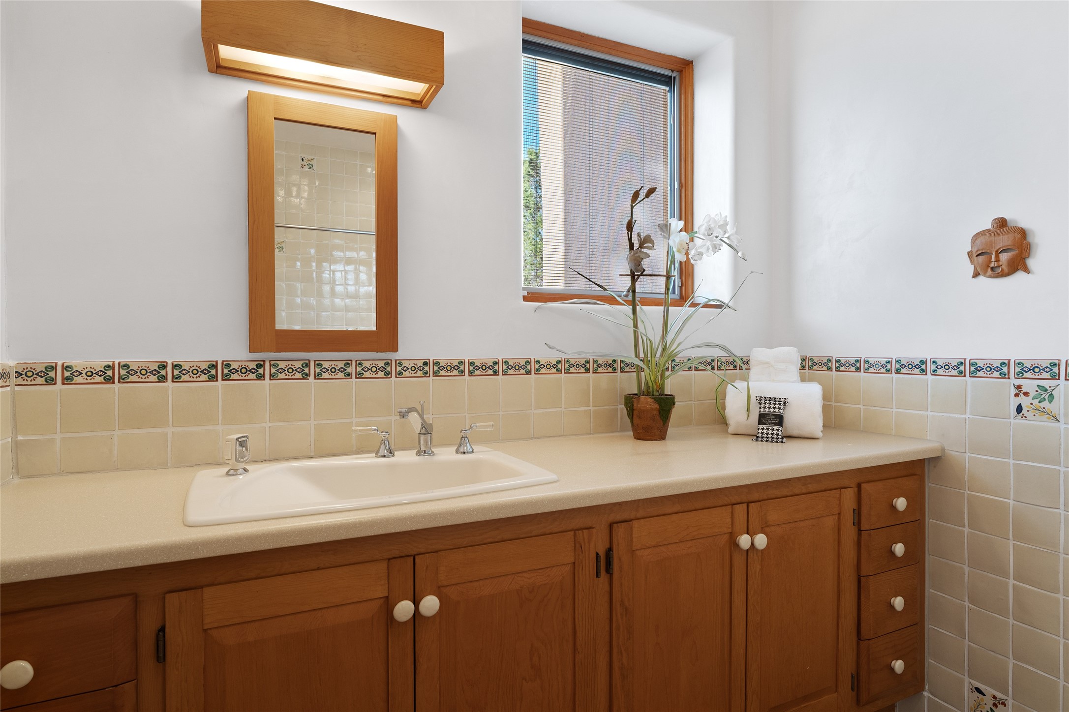 Here's a rare chance to own a very special property in gorgeous, exclusive Los Caminitos, and wouldn't you like to live on Love Street- Camino Amor! A classic Santa Fe Style Hacienda sits atop a glorious ridgeline on 27 lush, private acres in the luxurious green hills of private Los Caminitos with views that go on forever and ever, overlooking vistas far and wide for miles! This is easy living, with easy entertaining flowing through spacious rooms with high finished ceilings and all of the Santa Fe touches; vigas, corbels, lintels, nichos and bancos that enhance this happy ambience. 5 bedrooms and 6 baths with a nice separation of spaces comfortably accommodate all your family and friends! It is silent out here...You can hear the cicadas and the bluebirds, and see millions of stars at night in the big, deep, dark sky. You can be alone with the universe here. This impeccably maintained home is move-in ready now as it is, or you could take it to the next level and create a publishable showplace. As an owner in the lovely gated community of Los Caminitos, whose website you may visit for further information, you will be a member of the private Los Caminitos Clubouse with pool, tennis, pickleball, barbecue facilities and private party house for members use. A stones throw to elegant Encantado, and about 12 minutes to the plaza, you are sure to come back home to peace, serenity, and love here on Camino Amor.
