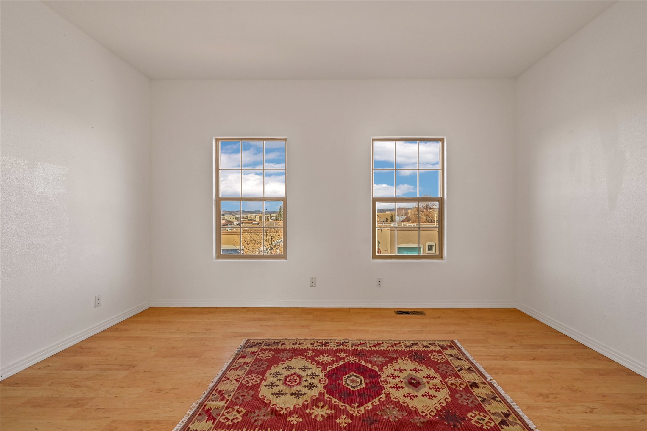 Light and bright two-story home featuring three upstairs bedrooms, two baths, and a versatile bonus room ideal for a home office, second living area, or playroom. Enjoy views from all bedrooms and the bonus room, complemented by attractive wood-look flooring throughout the upper level.The beautifully updated kitchen (2024) showcases newer cabinetry, quartz countertops, stainless steel appliances, and an induction stove any home chef will appreciate. The main level also offers a powder bath, a large laundry room, and access to the two-car garage. Additional upgrades include newer central air conditioning, heating system, and water heater.The spacious primary suite features a large walk-in closet and a well-appointed bathroom with double vanity sinks, a soaking tub, separate shower, and enclosed water closet. The open floor plan, anchored by a charming fireplace, creates an inviting space for relaxing or entertaining. Outdoors, enjoy a fully fenced yard, perfect for gatherings and four-legged friends.Built by BT Homes, this 2117 sqft property has no HOA and is conveniently located near shopping, restaurants, and easy access to 599 and I-25, making commuting to Albuquerque, Historic Downtown Santa Fe, or Los Alamos a breeze.