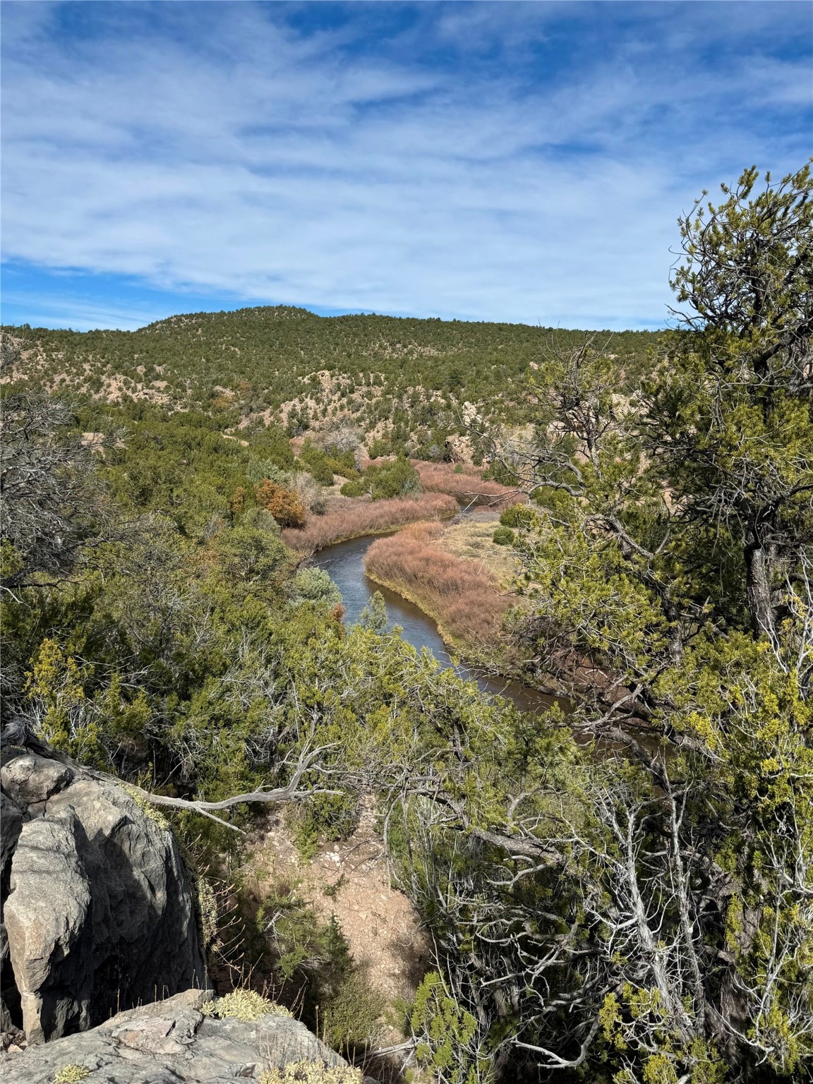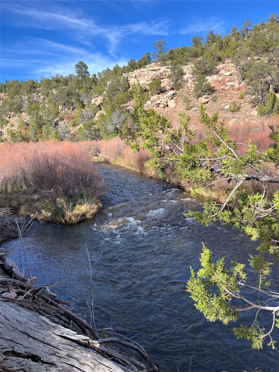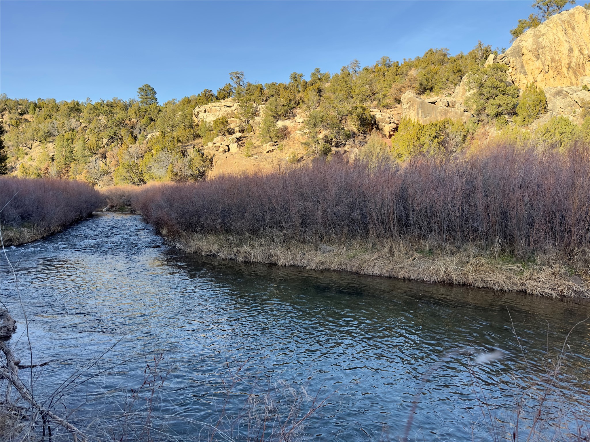 This 112-acre property includes over 300 feet of Pecos River frontage and sweeping views of the Pecos River Canyon, offering rare recreational opportunities less than 40 minutes from Santa Fe. The Pecos River along this stretch is well regarded for quality trout fishing, enhancing the property's recreational and conservation appeal. Healthy riparian corridors support a diverse ecosystem, making it especially attractive to anglers and stewardship-minded owners.Wildlife is abundant, with elk, mule deer, black bear, and other native species regularly present throughout the property. Reliable water, intact habitat, and minimal fragmentation support strong wildlife movement and make the property well-suited for conservation-oriented ownership, habitat preservation, or a low-impact recreational retreat.The property is comprised of three legal lots, offering flexibility for future planning and conservation easement value for conservation-minded buyers. Several homesite locations take advantage of river and canyon views, allowing for building opportunities that complement the surrounding environment. The property includes an existing water well. Located less than 40 minutes from Santa Fe, the property offers rare access to a nationally recognized cultural center while remaining closely connected to the Pecos River corridor. Santa Fe is known for its world-class art and museums, historic architecture, acclaimed restaurants, and year-round cultural events, creating a compelling balance between outdoor recreation and urban sophistication. This proximity allows owners to enjoy exceptional fishing, wildlife, and open space, with easy access to Santa Fe's dining, galleries, and cultural institutions.
