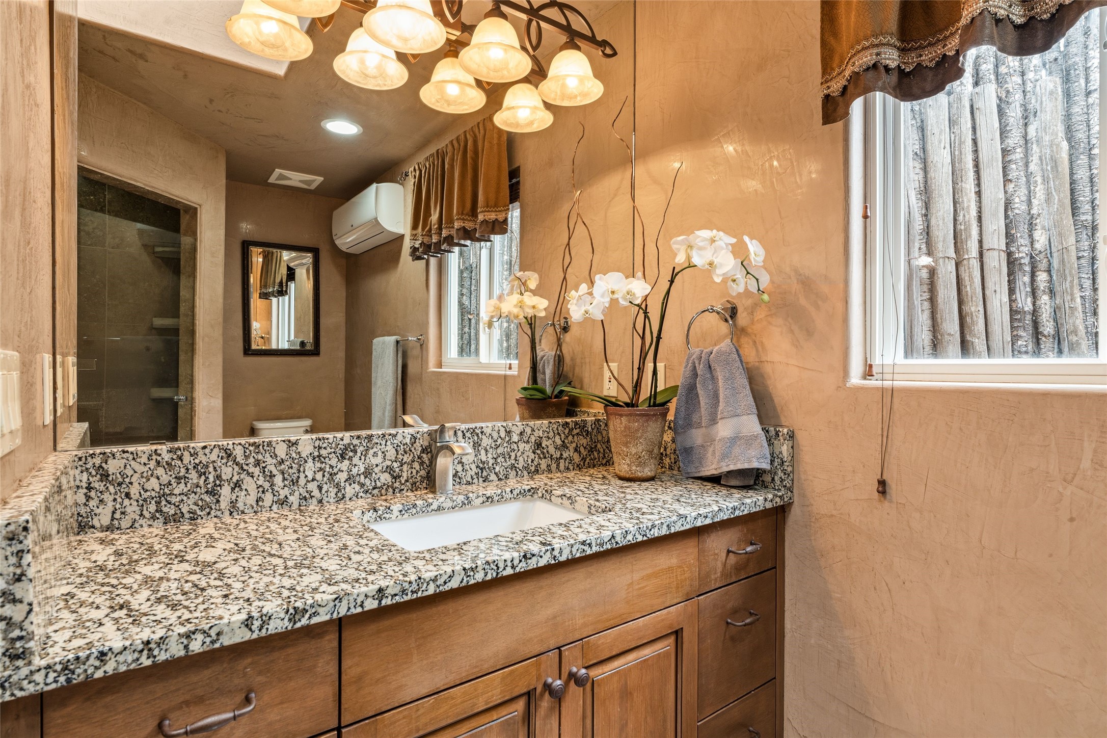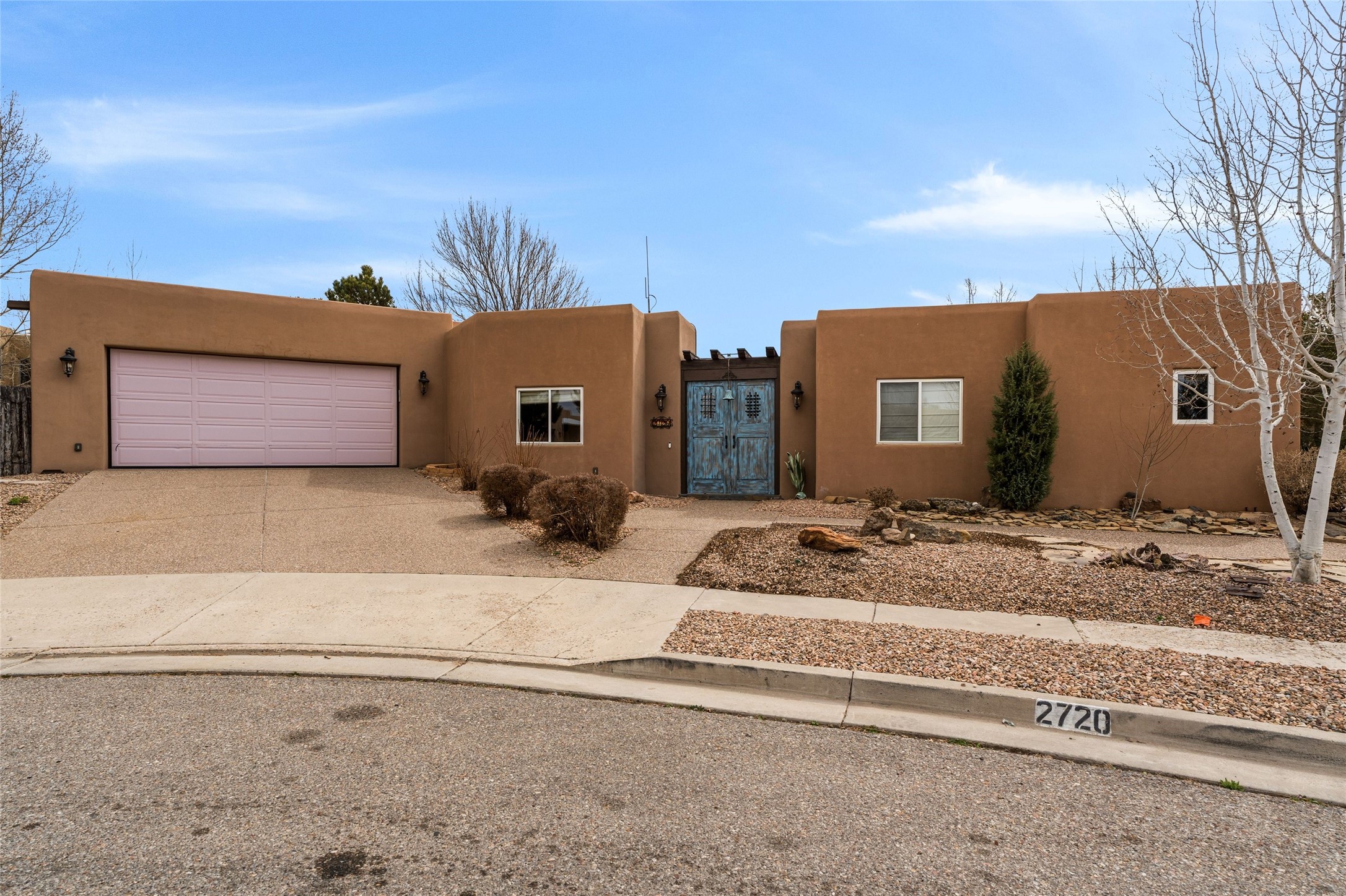 Gorgeous and near perfect, this classic Santa Fe-style home is ready to move right into! This custom property was built around a private, central courtyard open to the sky and filling the house with sunshine. It offers three roomy bedrooms plus a built-in study/office and four baths. Designed with a comfortable, intelligent floor plan it was almost completely renovated in 2023-2025. New buttery, diamond plaster walls; new heating and cooling, New TPO roof, new floors! This property can also be sold turn key, completely furnished down to the dishes and linens with the furniture package. Conveniently Located in a lovely cul-de-sac minutes to the plaza, and easy access to shopping, the hospital, and all freeways. $1,395,000.