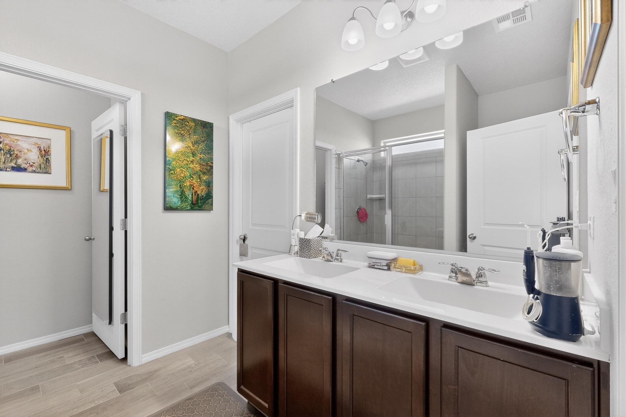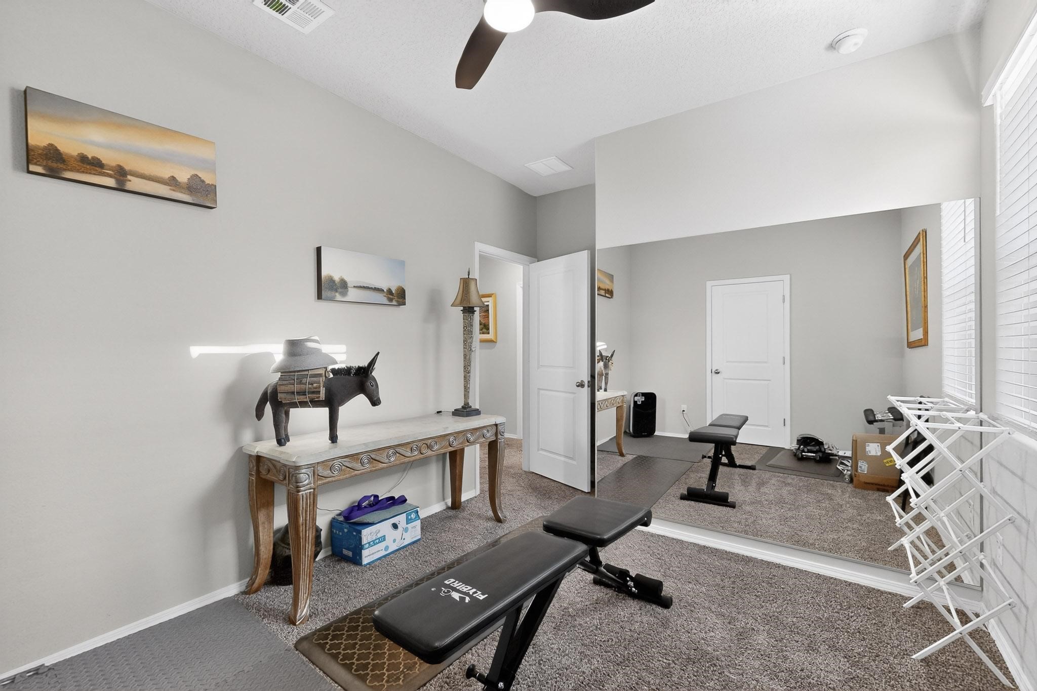 Offering attractive curb appeal, this 4 bedroom, 2 bathroom, DR Horton home is exceptional inside and out. Upgraded cabinetry, floors, counters, appliance package and a walled backyard with an open greenbelt behind the property is the perfect idea! The beautiful Anasazi stacked rock on the front of the home offers character and warmth. The floorplan is smart with a guest bedroom upon entry which can double as an office for great privacy. The heart of the home offers an open feel with the wide entry, open kitchen with an oversized island for casual eating and meal prep, a designated dining area with an open view to the living room and a spacious hallway leading to bedroom #2, bedroom #3, the guest bathroom with full bath and the laundry room with access to the finished garage. The primary suite is tucked away at the rear of the home and boasts the right size en-suite with an oversized walk-in shower, walk-in closet, water closet and plenty of storage to stay organized. Enjoy the privacy of the walled backyard awaiting your landscaping ideas and relish the idea that there is open space behind the property giving you room to breathe. The neighborhood park is seconds away allowing one to enjoy the outdoors even more. Easy living with great value and close to highway access for commuters or enjoy the booming southside of town with restaurants, shopping, schools and medical facilities close by.