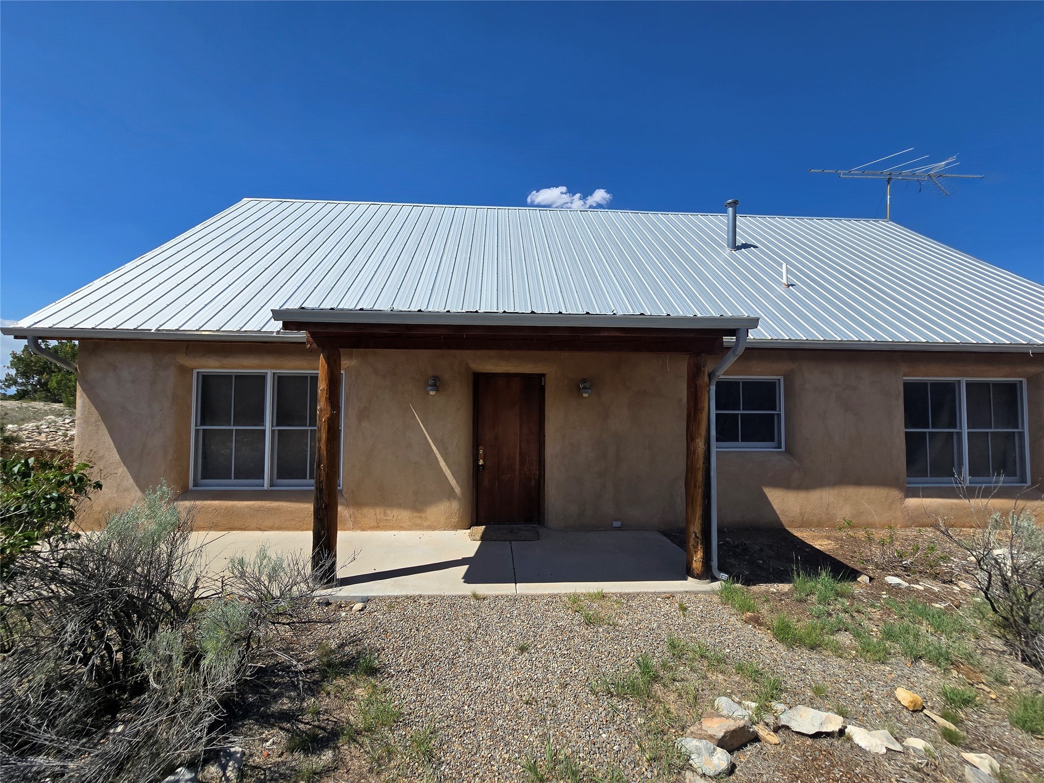 Off-grid living at its finest. Breath-taking panoramic views, quiet and serene amongst the natural flora and fauna of the beautiful, high deserts of New Mexico. 53 acres located outside the historic Village of Cerrillos, nestled between Santa Fe and Albuquerque. This strawbale home has all the amenities. Fully solar-powered home, radiant floor heating, a wood stove, rain catchment system attached to a pitched, metal roof, and an enchanting open-concept kitchen and common area. One main bedroom, laundry room, full bath, and a loft, accessible by a spiral staircase from the common area. . Recently renovated at the end of 2025.