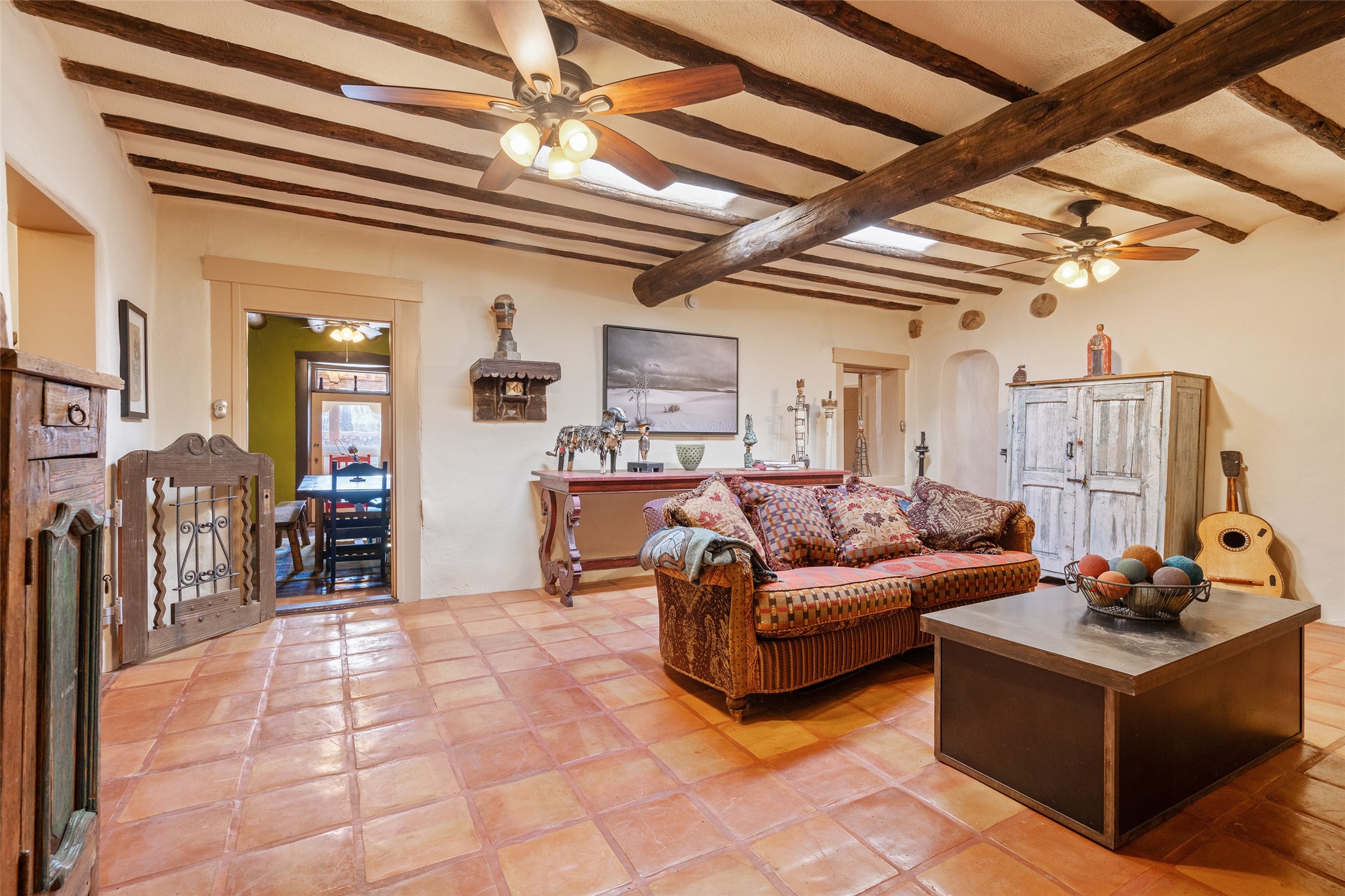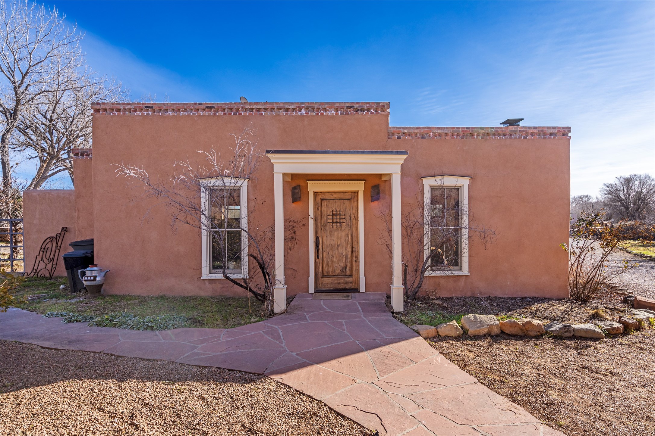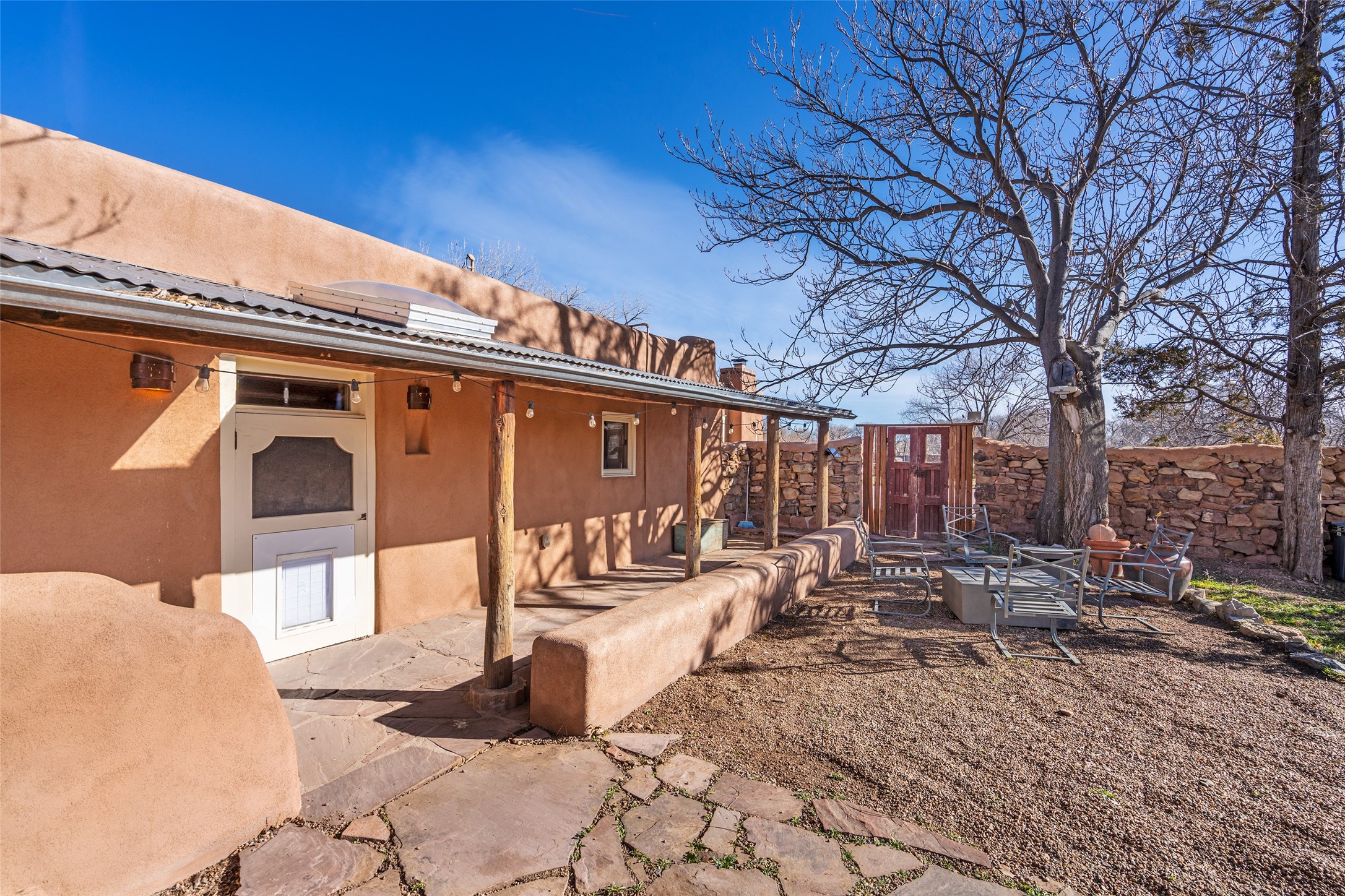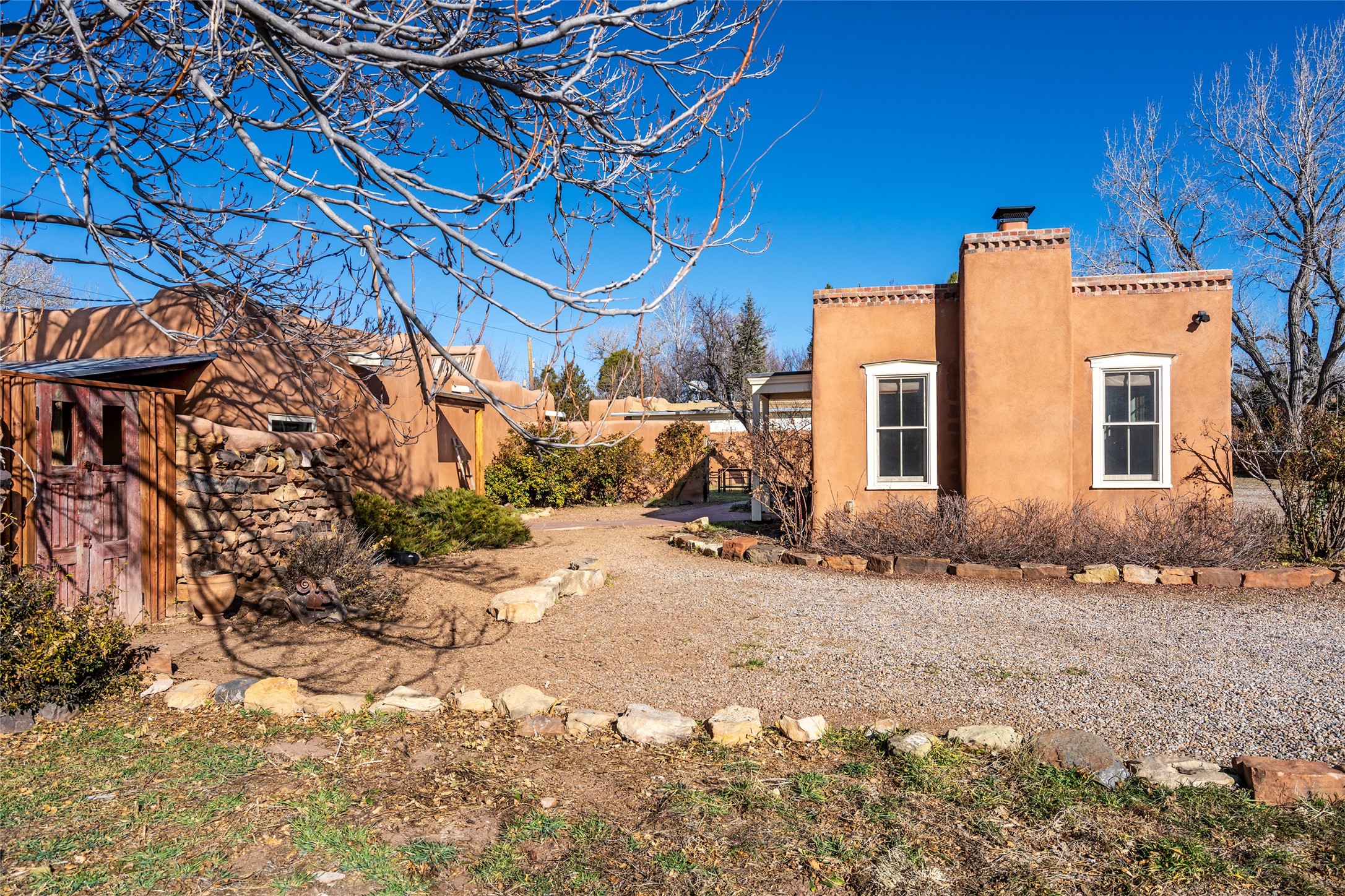 Something Old. Something New. Rare Commercial Opportunity.An exceptional and singular compound in the heart of historic Galisteo, this remarkable property weaves together centuries of heritage with thoughtful modern design. Dating to the 1800s, the 3-bedroom, 2-bath double-adobe Main House once housed the beloved La Mancha Restaurant (1959-1971), where the Ortiz family's New Mexican cuisine earned widespread acclaim.Tastefully renovated in 2012, the Main House features new brick floors, interior plaster walls, updated kitchen and baths, modern plumbing fixtures, and skylights, while honoring the home's original character, authenticity, and soul.Complementing the historic residence is a striking studio/gallery building originally designed by award-winning architect Beverly Spears and constructed in 1995 using Rastra construction for artist Linda Durham. A comprehensive 2006 remodel transformed the space into an extraordinary studio, gallery, and entertaining venue, featuring soaring 12-foot ceilings, exceptional lighting, integrated sound throughout, a home theater with surround sound and retractable screen, a bath, and a chef's kitchen equipped with Wolf, Sub-Zero, Miele, and Fisher & Paykel appliances, Bob Pepper custom cabinetry, and a generous pantry.The inviting Guest House, built in 2006, offers a warm and comfortable retreat with a living room, bedroom with fireplace, kitchen, and bath, ideal for visitors or extended stays.Commercially zoned and among the few such properties in Galisteo, this compound presents rare possibilities for a boutique B&B, restaurant, gallery, or creative retreat. Enclosed by historic adobe and stone walls and graced with fruit trees, this truly special offering invites vision, imagination, and opportunity in one of New Mexico's most cherished villages.