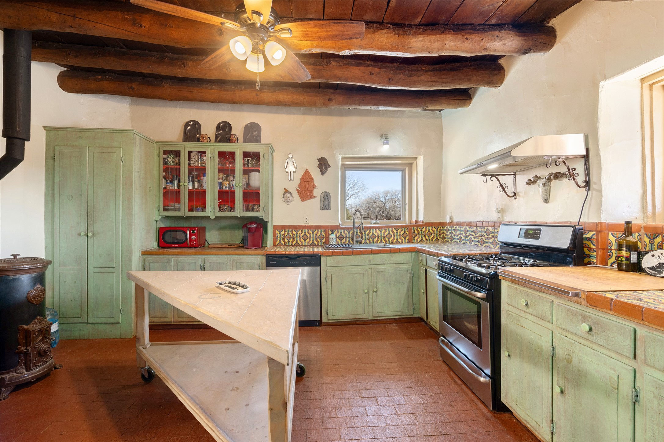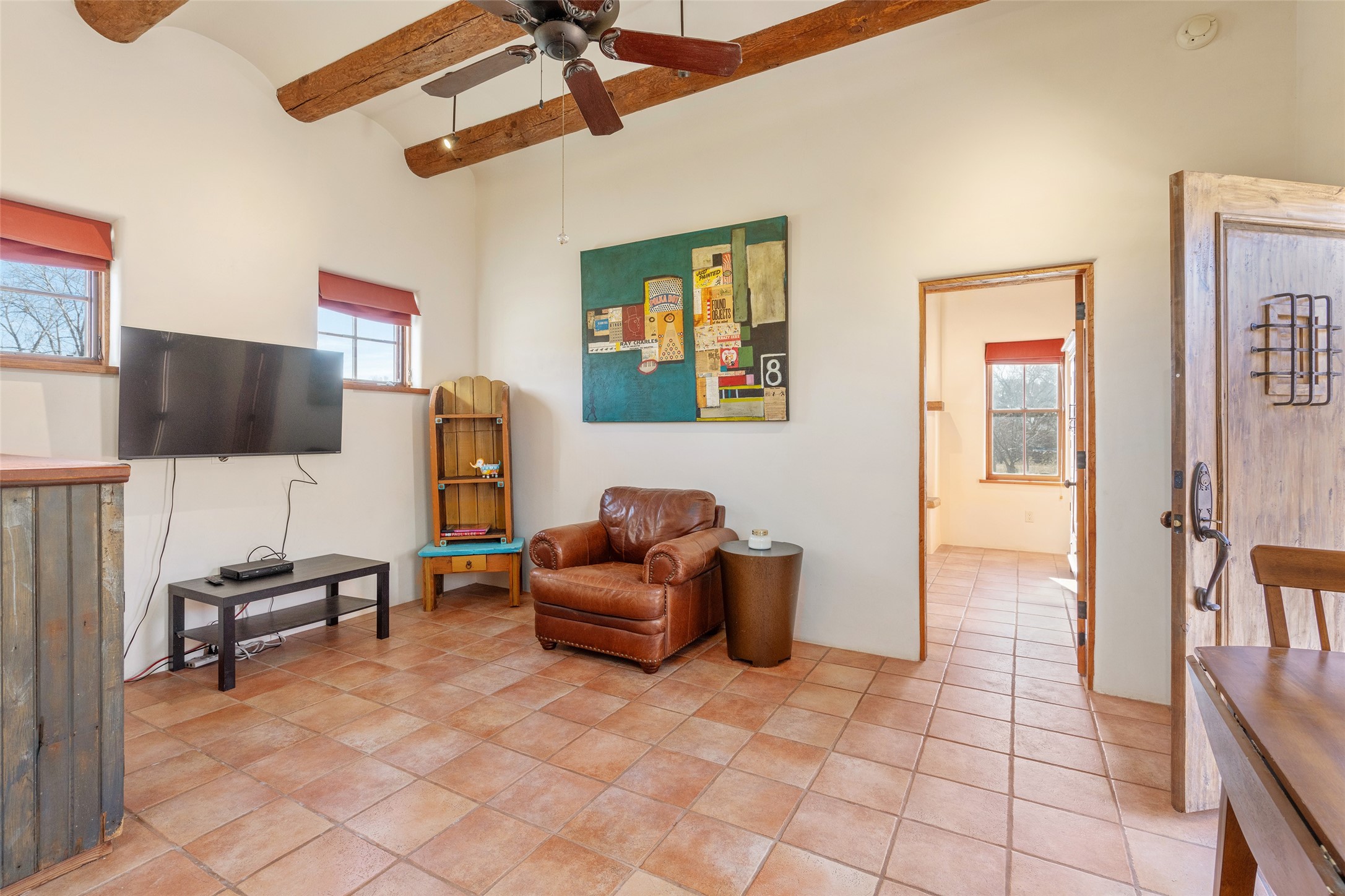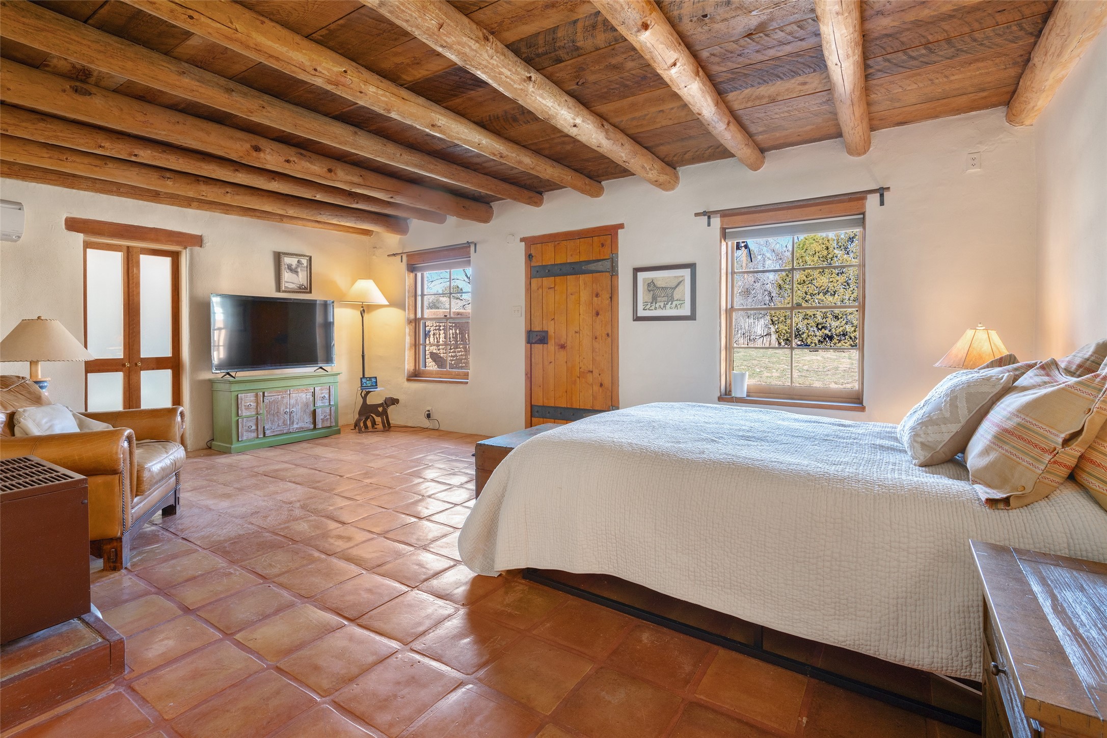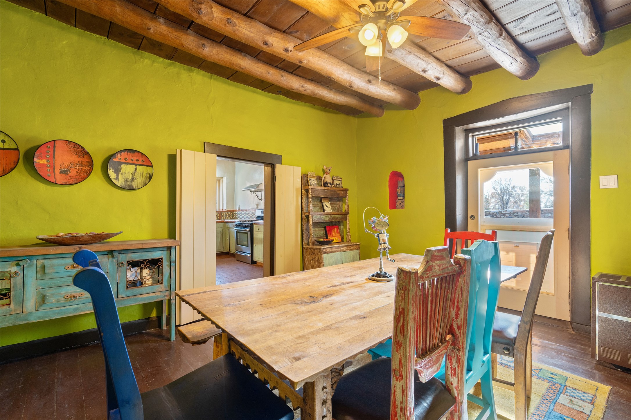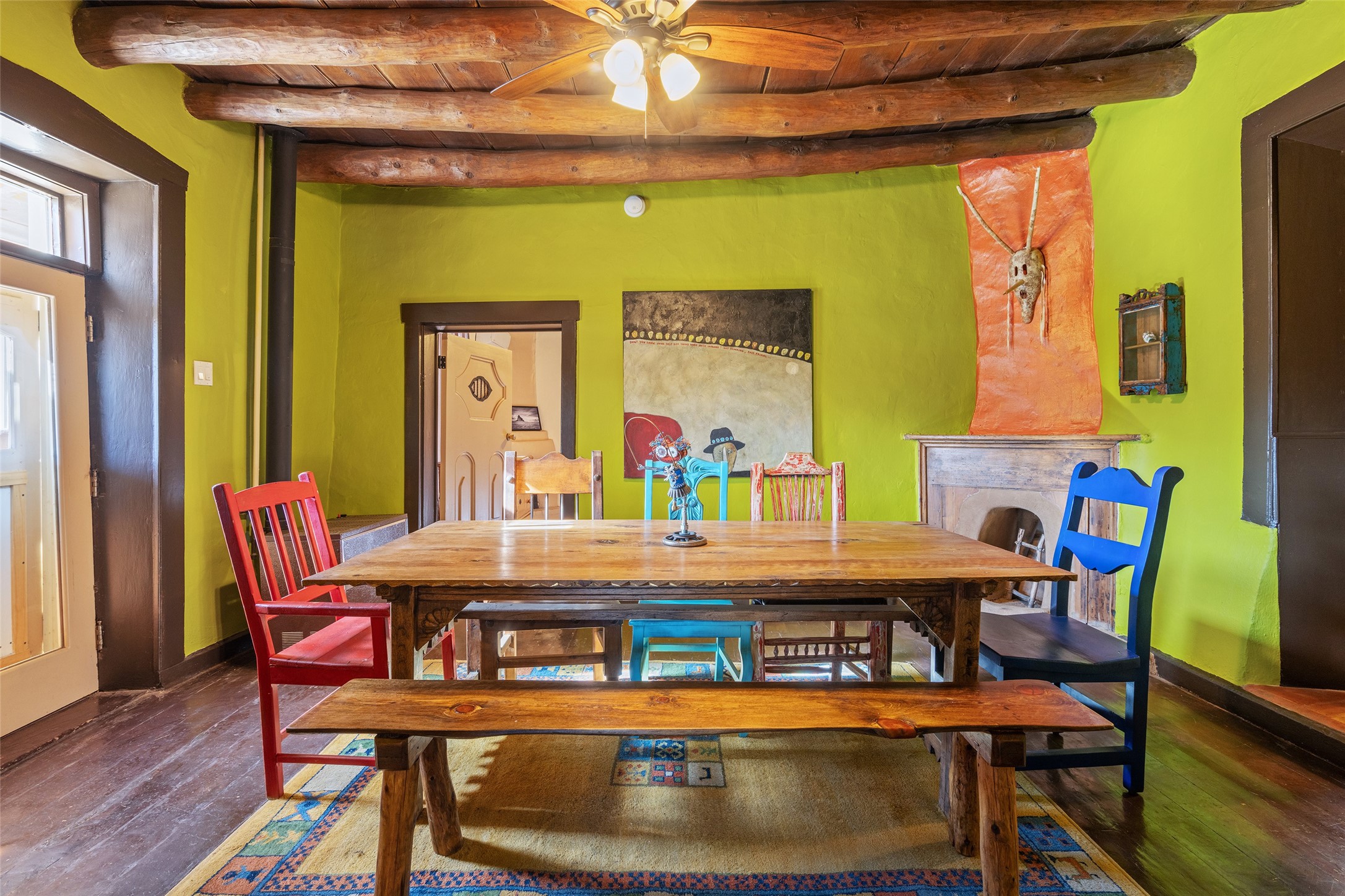 Something Old. Something New. Rare Commercial Opportunity.An exceptional and singular compound in the heart of historic Galisteo, this remarkable property weaves together centuries of heritage with thoughtful modern design. Dating to the 1800s, the 3-bedroom, 2-bath double-adobe Main House once housed the beloved La Mancha Restaurant (1959-1971), where the Ortiz family's New Mexican cuisine earned widespread acclaim.Tastefully renovated in 2012, the Main House features new brick floors, interior plaster walls, updated kitchen and baths, modern plumbing fixtures, and skylights, while honoring the home's original character, authenticity, and soul.Complementing the historic residence is a striking studio/gallery building originally designed by award-winning architect Beverly Spears and constructed in 1995 using Rastra construction for artist Linda Durham. A comprehensive 2006 remodel transformed the space into an extraordinary studio, gallery, and entertaining venue, featuring soaring 12-foot ceilings, exceptional lighting, integrated sound throughout, a home theater with surround sound and retractable screen, a bath, and a chef's kitchen equipped with Wolf, Sub-Zero, Miele, and Fisher & Paykel appliances, Bob Pepper custom cabinetry, and a generous pantry.The inviting Guest House, built in 2006, offers a warm and comfortable retreat with a living room, bedroom with fireplace, kitchen, and bath, ideal for visitors or extended stays.Commercially zoned and among the few such properties in Galisteo, this compound presents rare possibilities for a boutique B&B, restaurant, gallery, or creative retreat. Enclosed by historic adobe and stone walls and graced with fruit trees, this truly special offering invites vision, imagination, and opportunity in one of New Mexico's most cherished villages.