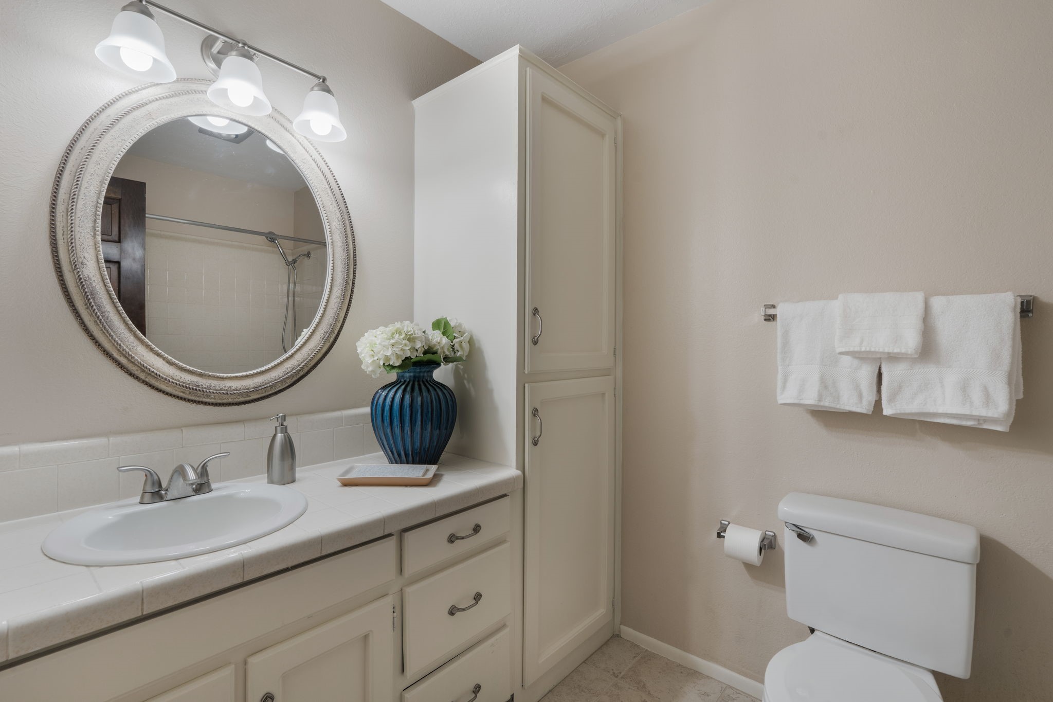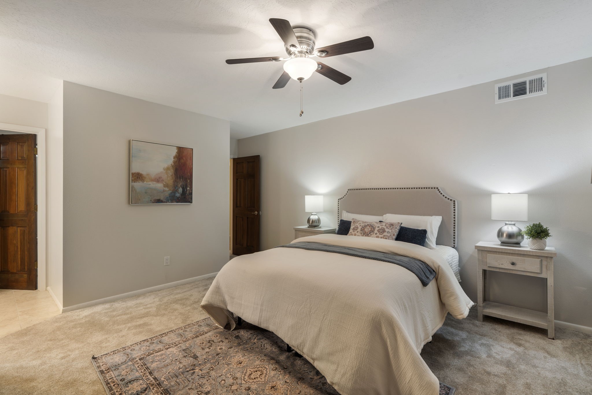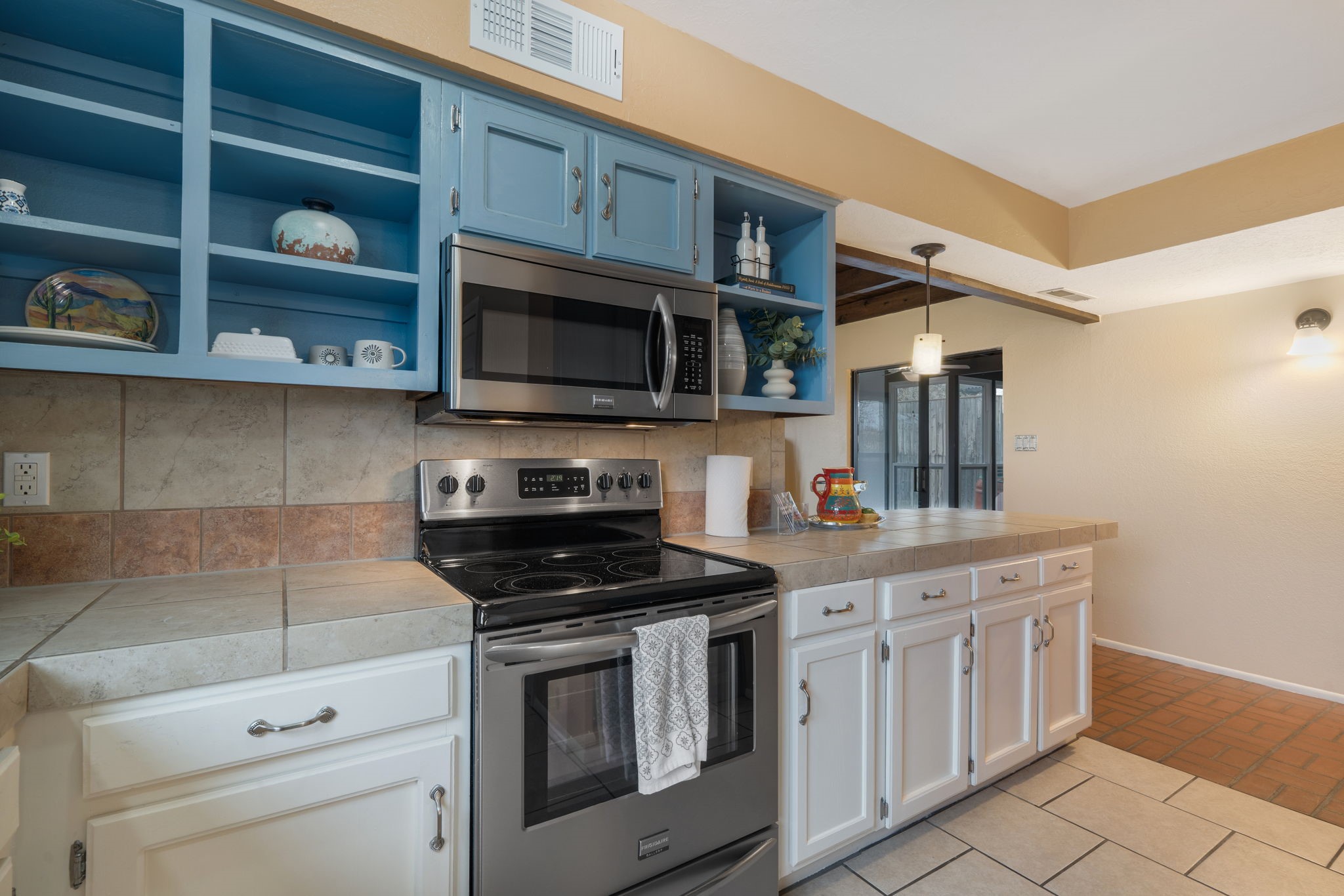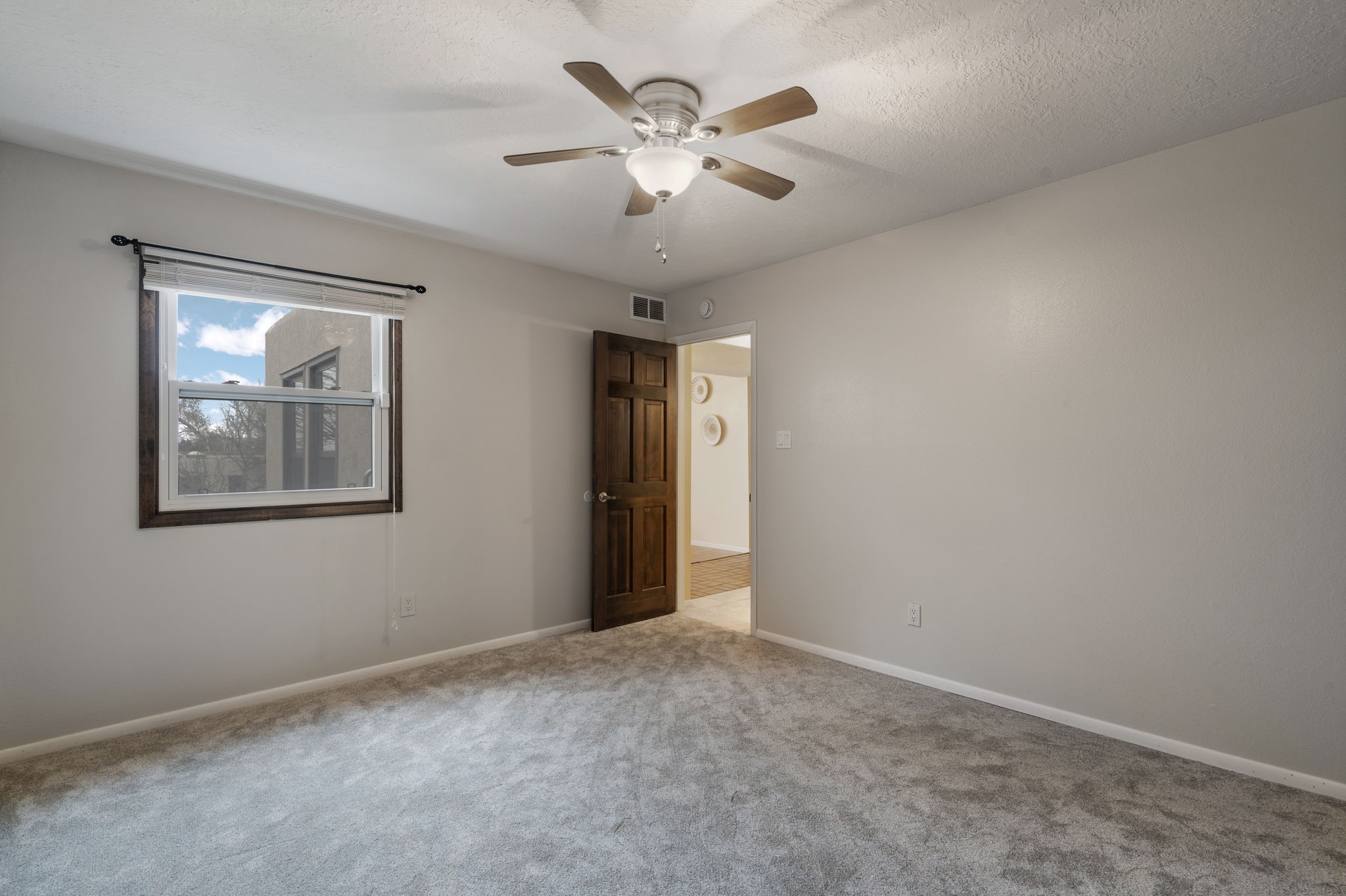 Welcome to this adorable single-story gem in coveted Park Plazas, where charm, comfort, and community come together beautifully.Step through a sweet blue gate into a private entry courtyard that sets the tone for the warmth and character found throughout. Inside, a welcoming front hall lined with classic brick tile creates an inviting first impression. To the left, a spacious dining room is bathed in natural light, featuring laminate floors and picturesque views of the Jemez Mountains -- the perfect backdrop for memorable dinners and gatherings.The L-shaped kitchen offers both functionality and style, with tile countertops, generous cabinet and pantry space, and stainless steel appliances, including a brand-new dishwasher. Whether you're preparing a quiet meal at home or entertaining friends, this kitchen is ready to serve.The living room is rich with Southwestern charm, highlighted by a corner Kiva fireplace, beamed ceiling, and laminate wood floors. Sliding doors lead to an enclosed portal that functions beautifully as a sunroom, office, or creative retreat -- a bright and versatile space to enjoy year-round.The primary bedroom is newly carpeted and features a wall of closets along with a private bath. A second bedroom and bath provide comfortable accommodations for guests or family. The entire home has been freshly painted, with new carpet in both bedrooms and the sunroom, giving it a crisp, refreshed feel inside and out. Truly move-in ready.A two-car garage adds convenience and storage.Located in the lovely and centrally situated Park Plazas neighborhood, you're just minutes from restaurants, shopping, and a short drive to the Plaza. Residents enjoy miles of walking trails, tennis courts, an off-leash dog park, community garden, children's playground, and basketball courts -- an active and welcoming community with something for everyone.This is a wonderful home in a wonderful neighborhood -- ready to welcome its next owner.