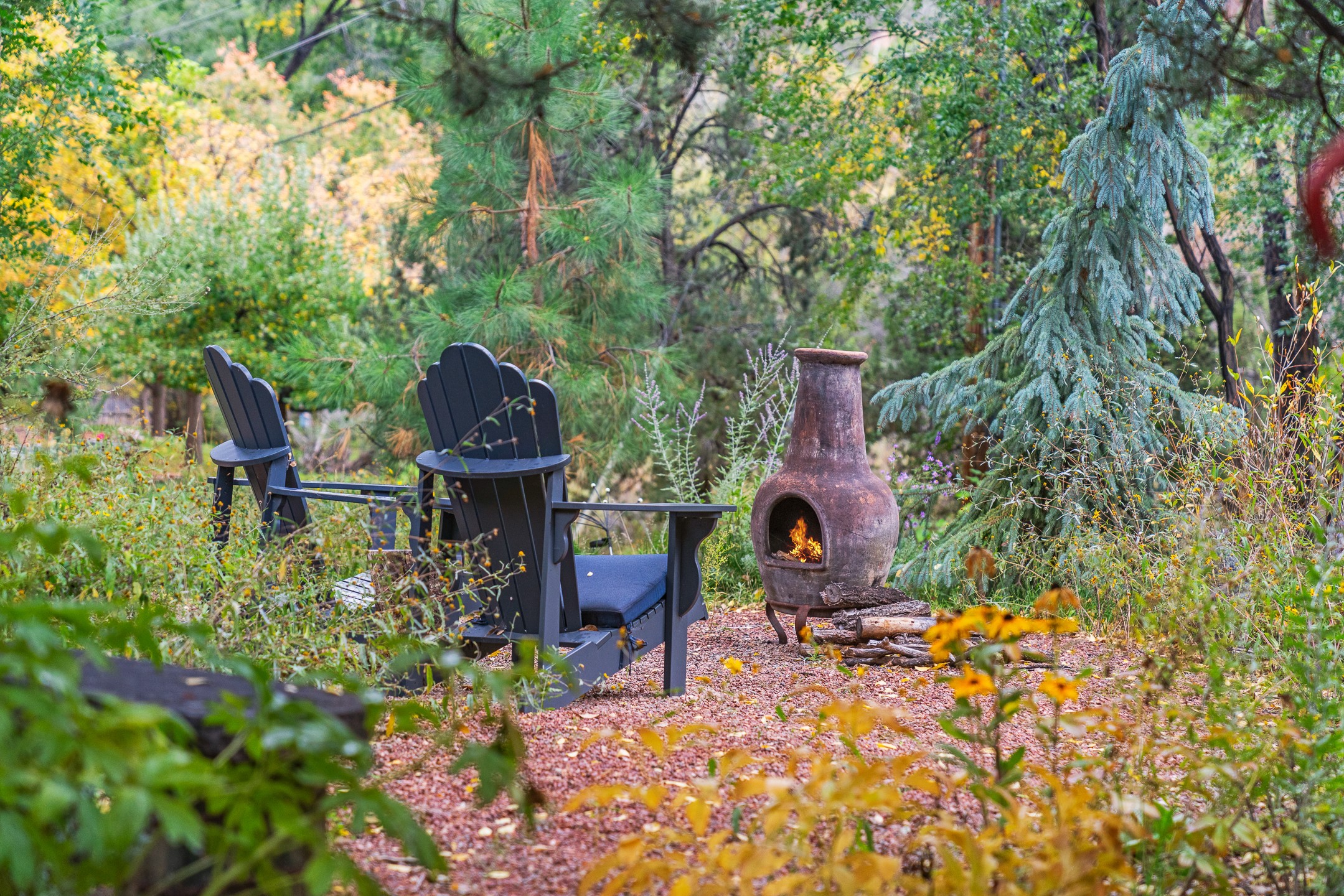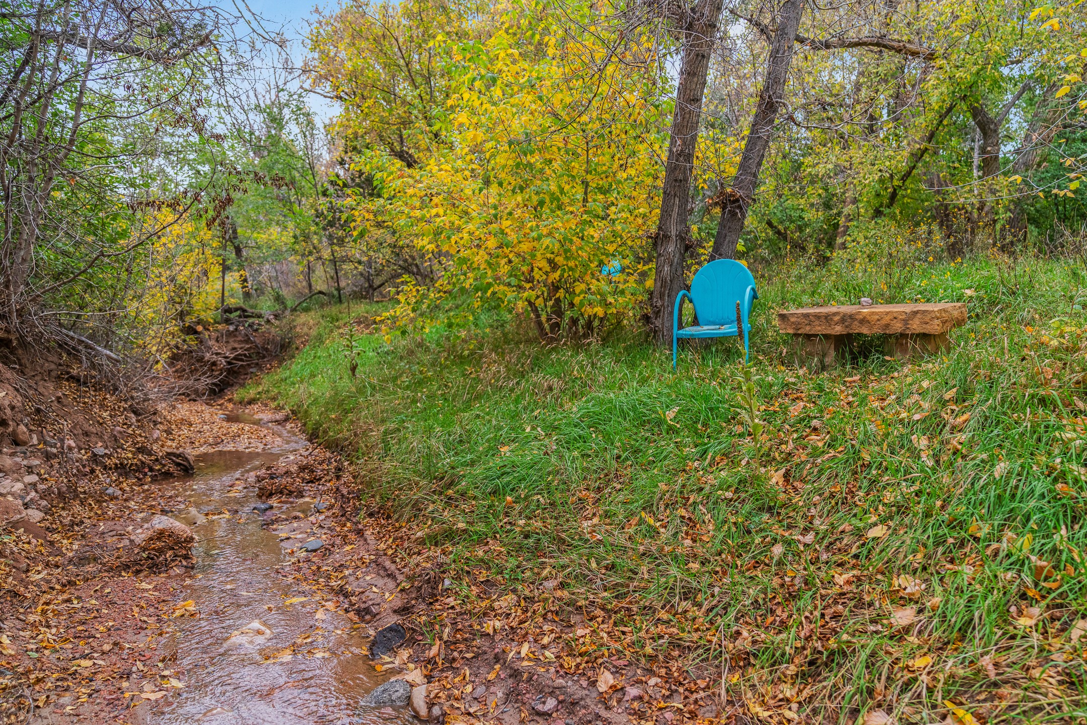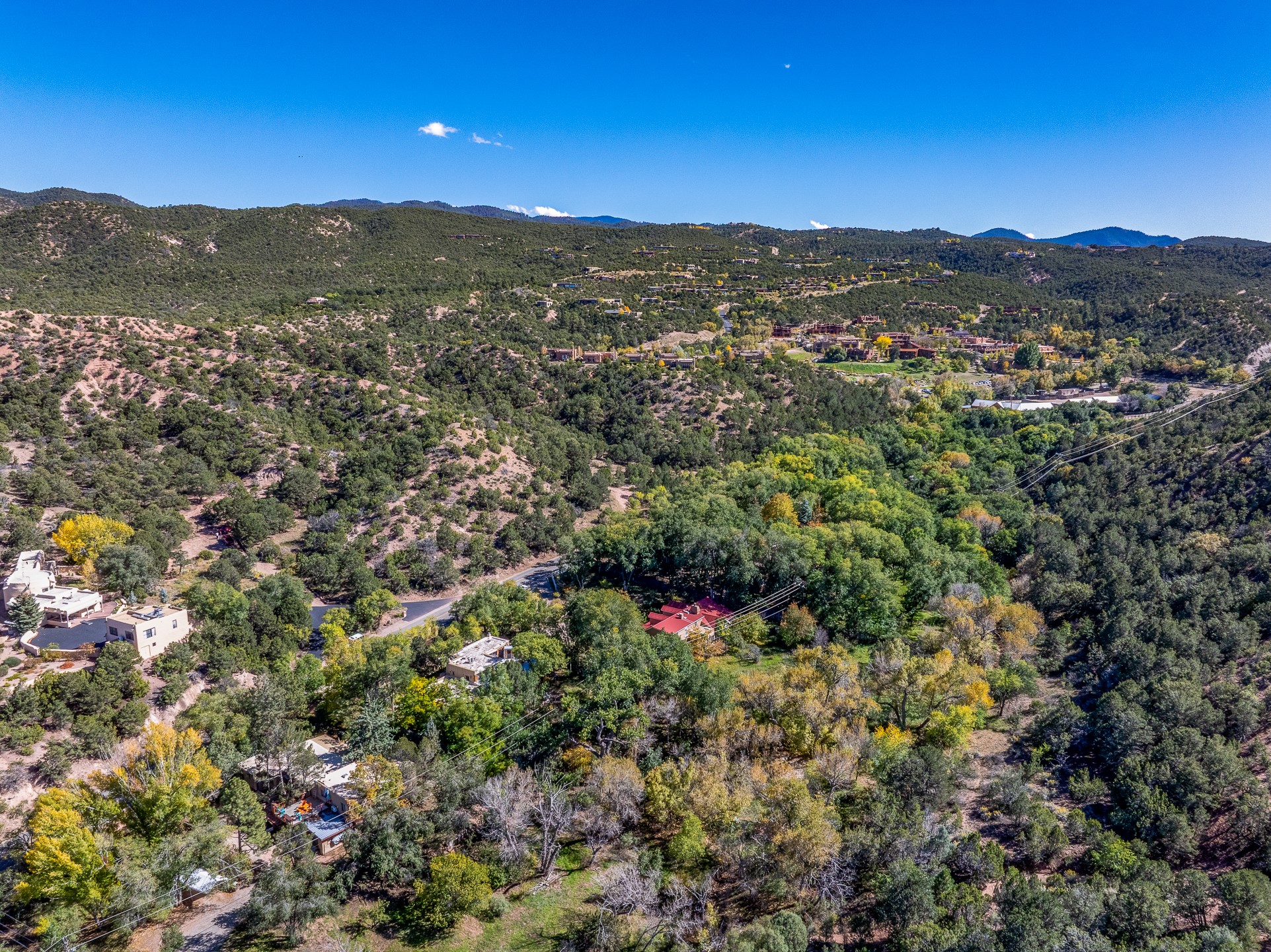 Location, Location--and Priced Below Appraisal - Featured in The Santa Fe New Mexican's December Real Estate Guide, this 3,366 sq. ft. adobe sanctuary in Tesuque is a rare fusion of artistry, nature, and architectural integrity. Just 8 minutes from the Plaza and nestled on 0.77 lush acres beside the seasonal Tesuque Creek, the property offers serenity, soul, and sustainability. The land has been gently restored through regenerative landscaping--reintroducing native wildflowers, birds, and wildlife pathways that honor the land's natural rhythms. Built by master Santa Fe artisans, the 3BD/3.5BA home celebrates timeless design with flagstone floors, vigas, split cedar ceilings, and walls that shift organically from adobe to stone. At the heart is the open kitchen and dining area, renovated with natural stone counters and designed for entertaining. French doors open to a covered portal with a natural gas firepit for gathering under the stars or summer monsoons. Two unique living rooms offer distinct experiences:- One, originally crafted for Japanese tea ceremony, features a pitched ceiling and a glass wall that frames the forested garden.- The second centers around a dramatic fireplace and leads to a ground-level primary suite with cedar-lined closet and fenced garden with fruit trees and pollinator plants.Upstairs are two guest suites, each with en suite baths; one includes a private deck and infrared sauna--an elevated retreat in the treetops.Extras include an automatic gate, a contemplative labyrinth, a private well with 3-acre feet of water rights, EV charger, handcrafted workshop, and arroyo access to nearby hiking and the Lower Windsor Trailhead.1330 Bishops Lodge is a soulful, artful expression of intentional living.