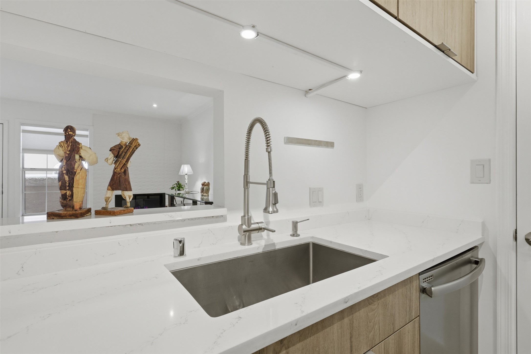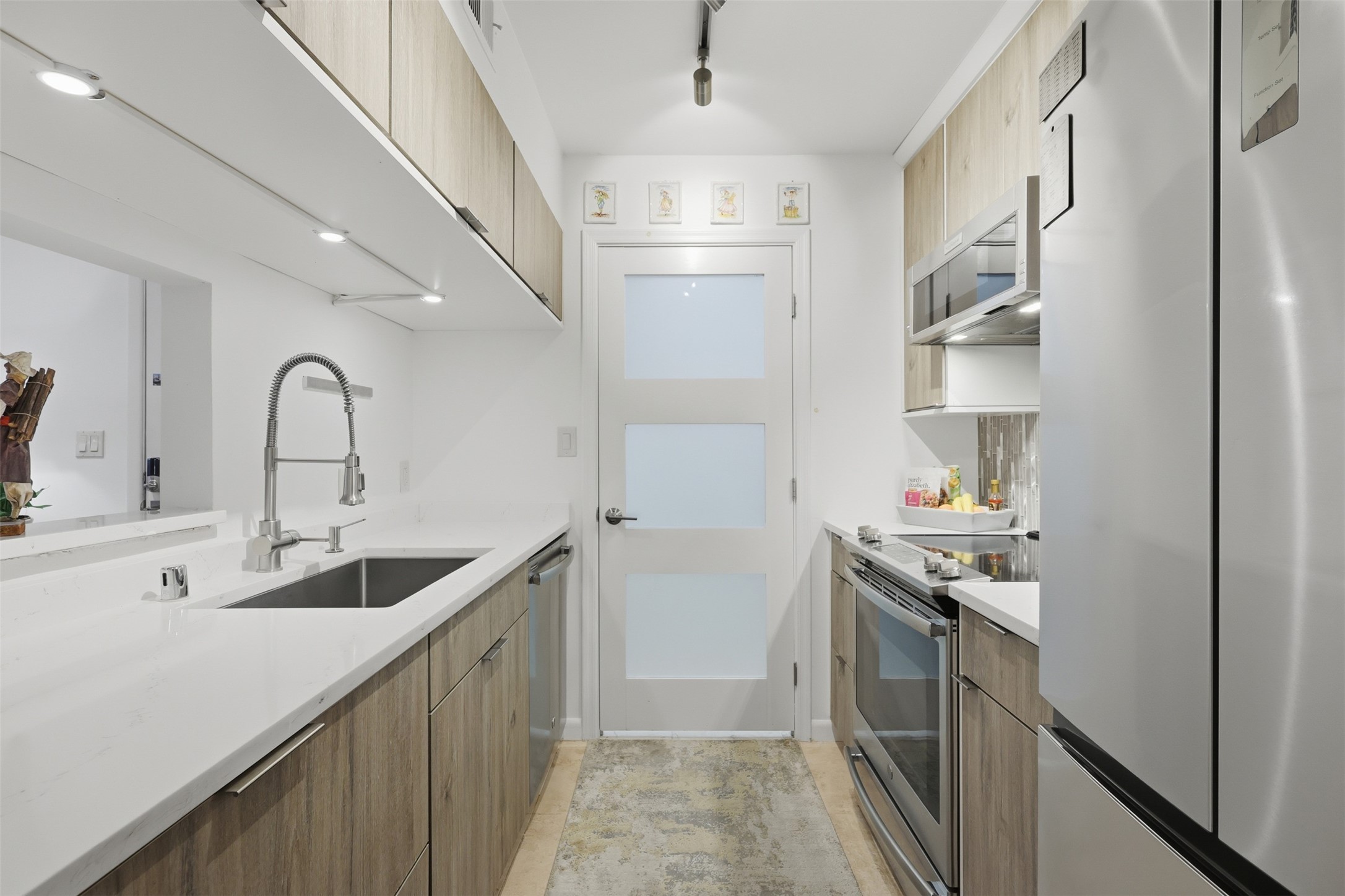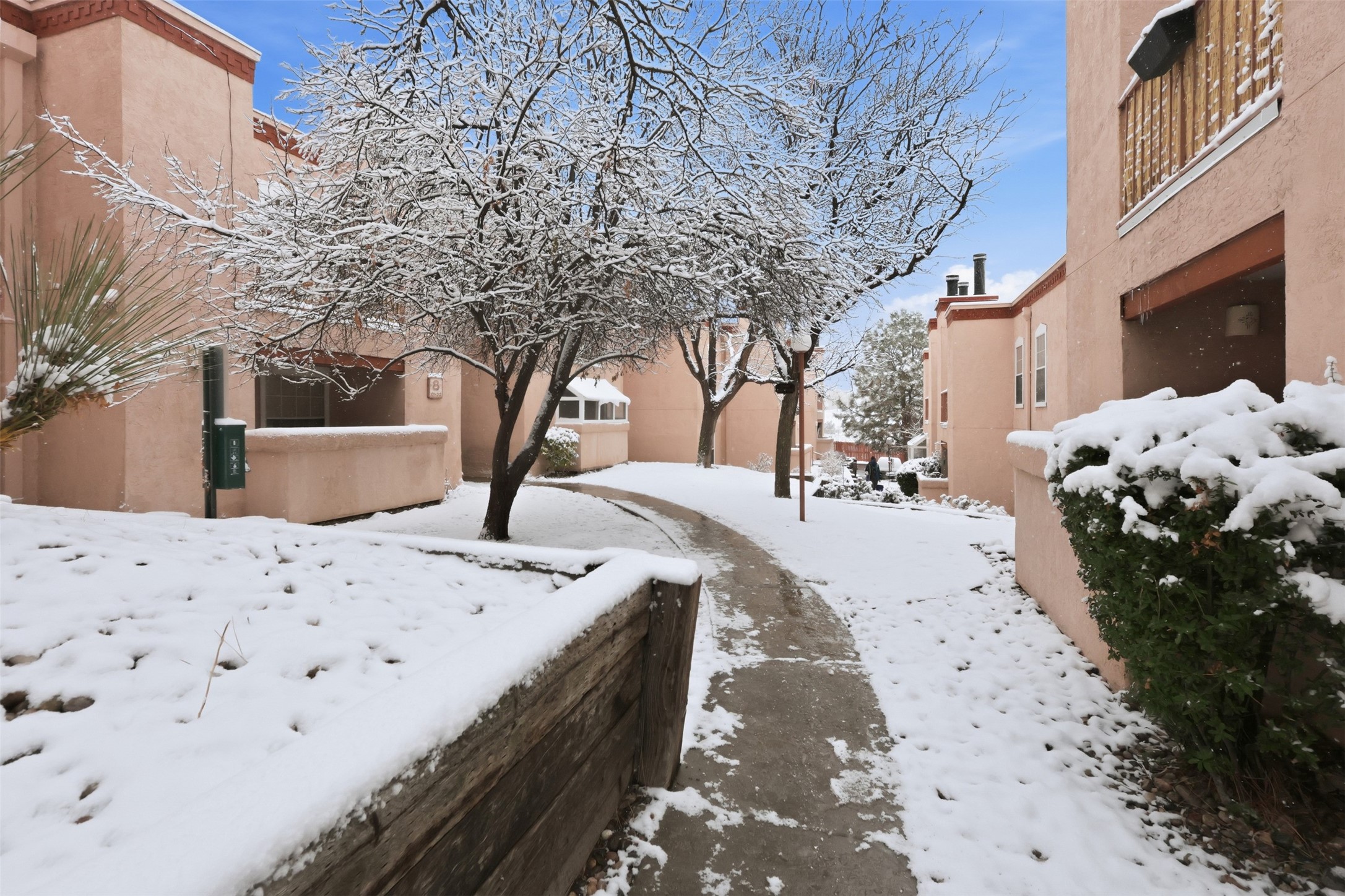 Step into effortless comfort in this immaculate, move-in ready 2-bedroom, 2-bath condo, thoughtfully updated by an interior designer with contemporary finishes and refined details throughout. The single-level layout features travertine flooring, recessed lighting, quartz kitchen countertops, stainless steel appliances, freshly painted, and a welcoming fireplace--perfect for cozy Santa Fe evenings.The serene primary suite offers a spa-inspired ensuite with double vanities and a walk-in shower, while the guest bath includes a shower/tub combination and an illuminated touch mirror. Enjoy indoor-outdoor living on the private patio, ideal for morning coffee, along with the convenience of an in-unit washer and dryer. This centrally located end unit provides added privacy and a peaceful setting within the community.Located in a secure, gated condominium complex, residents enjoy a pool, hot tub, community clubhouse, fitness center, scenic walking trails, and on-site laundry facilities. Just minutes from shopping, restaurants, galleries, and outdoor recreation, this home offers easy access to the art, culture, nature, and relaxed rhythm that define the Santa Fe lifestyle.