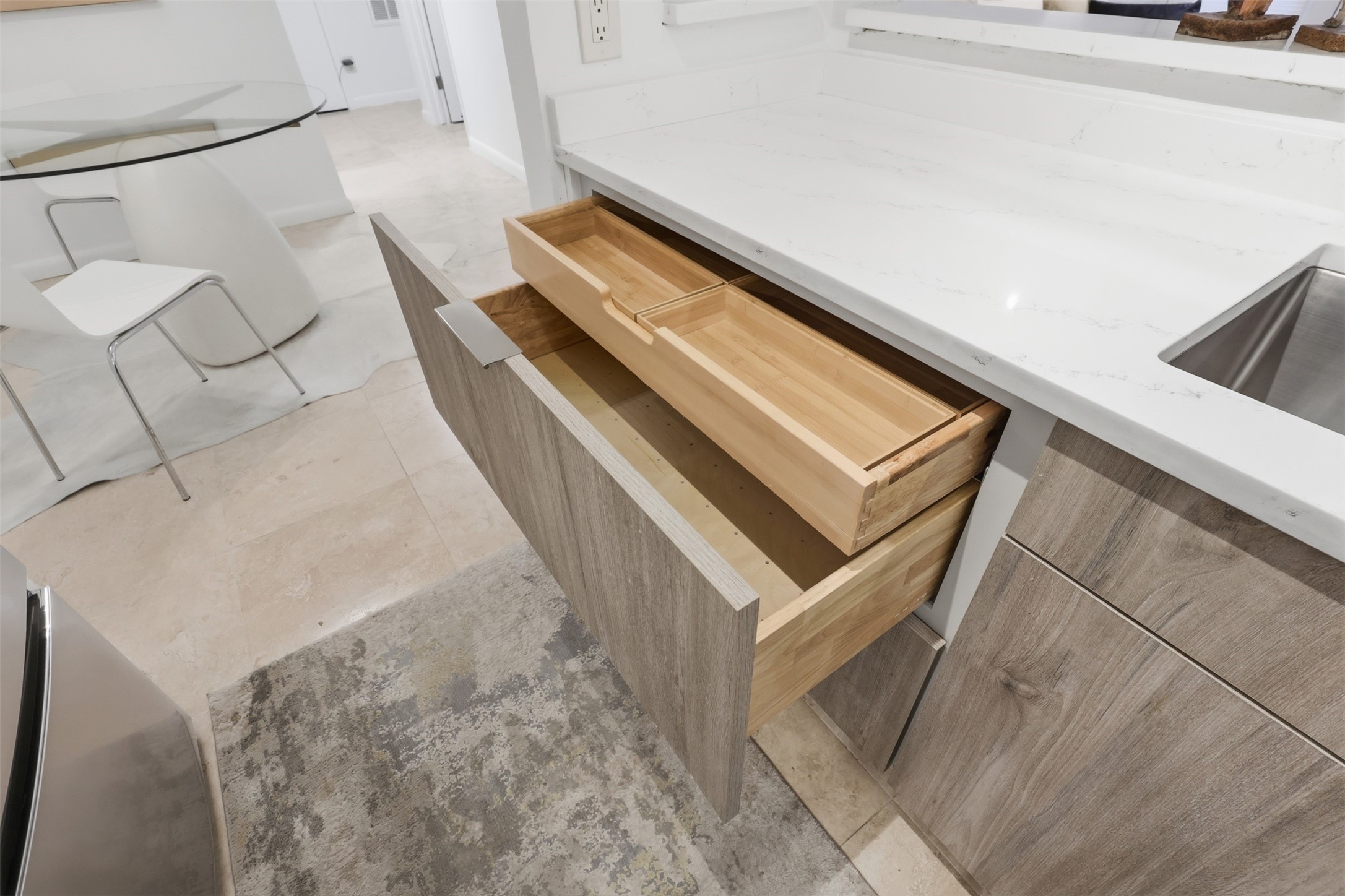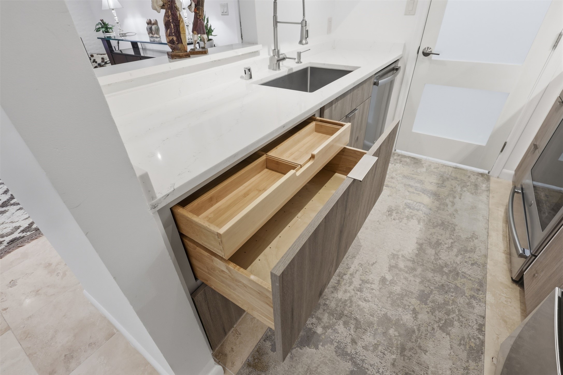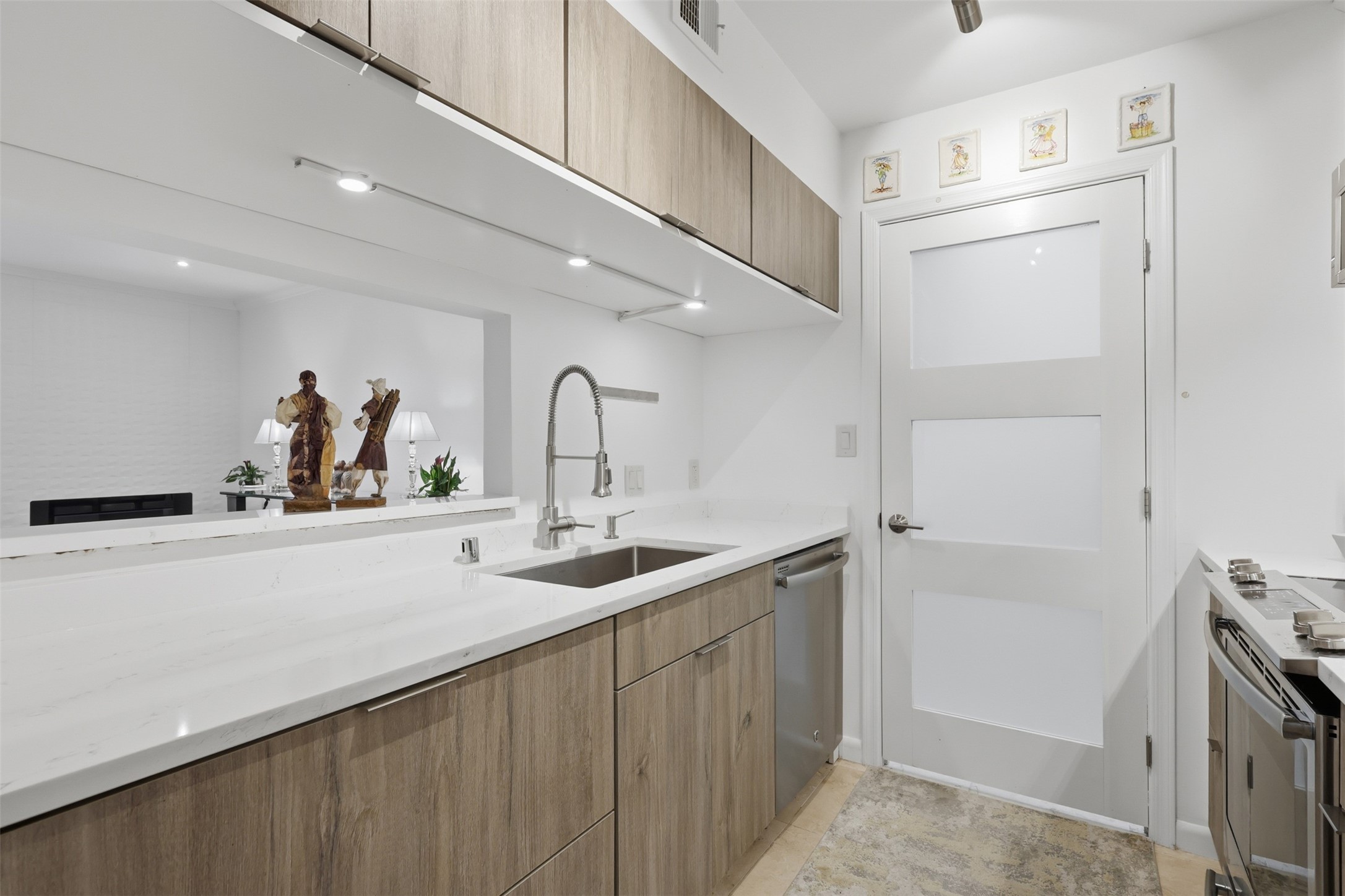 Step into effortless comfort in this immaculate, move-in ready 2-bedroom, 2-bath condo, thoughtfully updated by an interior designer with contemporary finishes and refined details throughout. The single-level layout features travertine flooring, recessed lighting, quartz kitchen countertops, stainless steel appliances, freshly painted, and a welcoming fireplace--perfect for cozy Santa Fe evenings.The serene primary suite offers a spa-inspired ensuite with double vanities and a walk-in shower, while the guest bath includes a shower/tub combination and an illuminated touch mirror. Enjoy indoor-outdoor living on the private patio, ideal for morning coffee, along with the convenience of an in-unit washer and dryer. This centrally located end unit provides added privacy and a peaceful setting within the community.Located in a secure, gated condominium complex, residents enjoy a pool, hot tub, community clubhouse, fitness center, scenic walking trails, and on-site laundry facilities. Just minutes from shopping, restaurants, galleries, and outdoor recreation, this home offers easy access to the art, culture, nature, and relaxed rhythm that define the Santa Fe lifestyle.