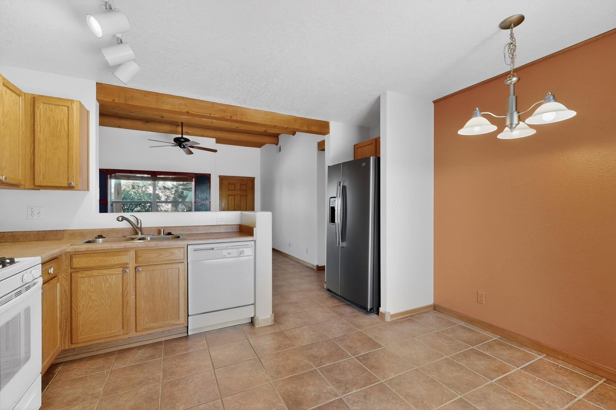 Welcome to a very well kept home on the south side of Santa Fe! Located in a cul-de-sac, this home boasts a large backyard that has been nicely landscaped as well as a nicely landscaped front yard. The entry has a glass panel screen door that opens up to a tiled living room with vigas. The kitchen is equipped with newer appliances, along with the laundry room located adjacent to the garage. The water heater and furnace have been updated, and the roof has been maintained. The carpets in the bedrooms have been cleaned, and the house has been painted as well. Close to schools, restaurants, the south side library, the teen center, trails, parks, and other amenities that this part of town has to offer. Easy access to Highway 599 and interstate 25. Come see for yourself this wonderful home!