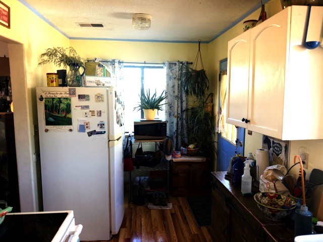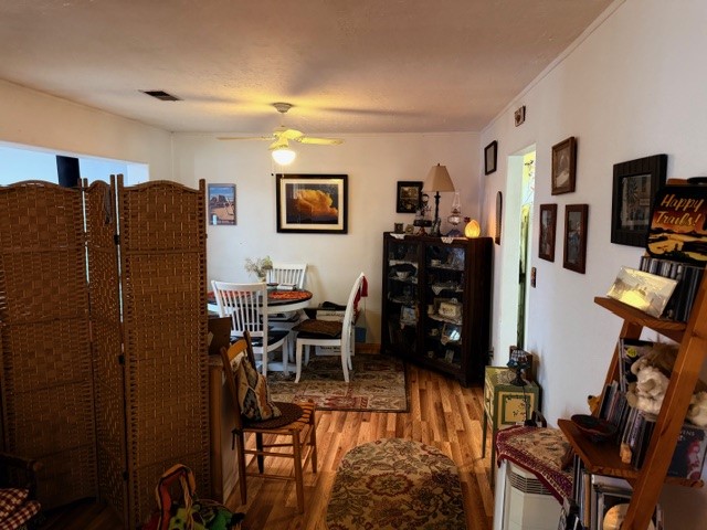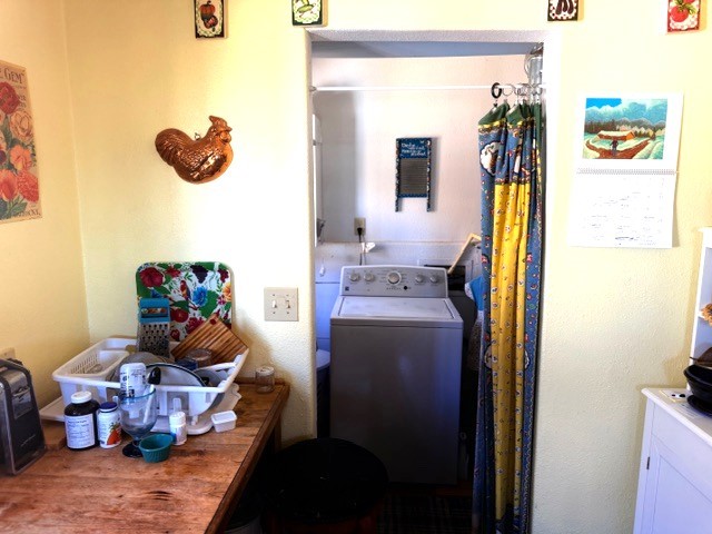 If you are looking for peace and quiet, lovely views that include sunsets, come and look at this house! Enjoy the joys of small-town life in this charmer! Situated east of the center of Pecos and the Pecos River in East Pecos, there are mountain views from the property, and the surrounding properties have beautiful rock formations. Two bedrooms, one bath, large living room which is a later addition to the main house. New laminate flooring in the whole house, new toilet, and new hot water in 2022-23. The main house has a second living area with dining area. The country chicken sink is the focal point of the kitchen. The older/smaller living area could potentially be turned into a third bedroom. Partially enclosed front porch. A large building in the back is divided into two spaces, a studio on one side and storage on the other. It has electricity, and heating on the right (larger) side. The property is completely fenced, with an apple tree, dwarf crabapple, and grape vines.