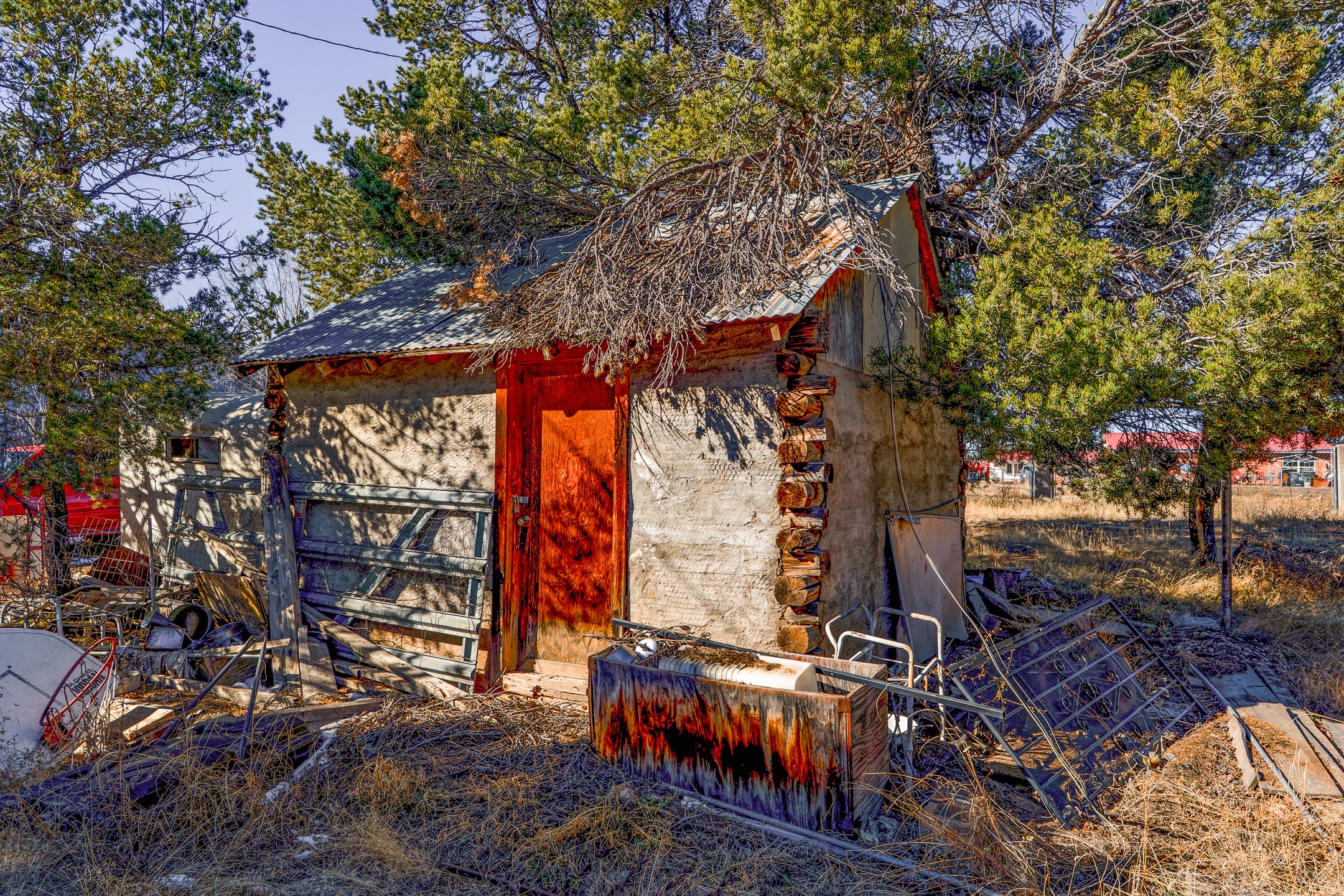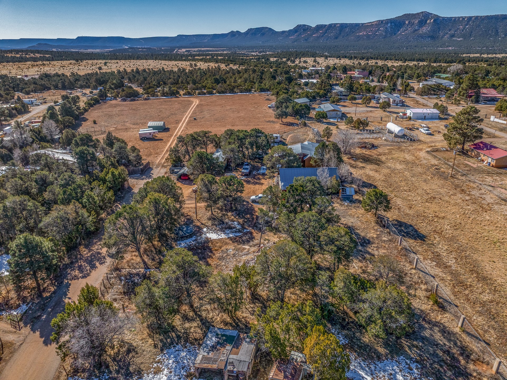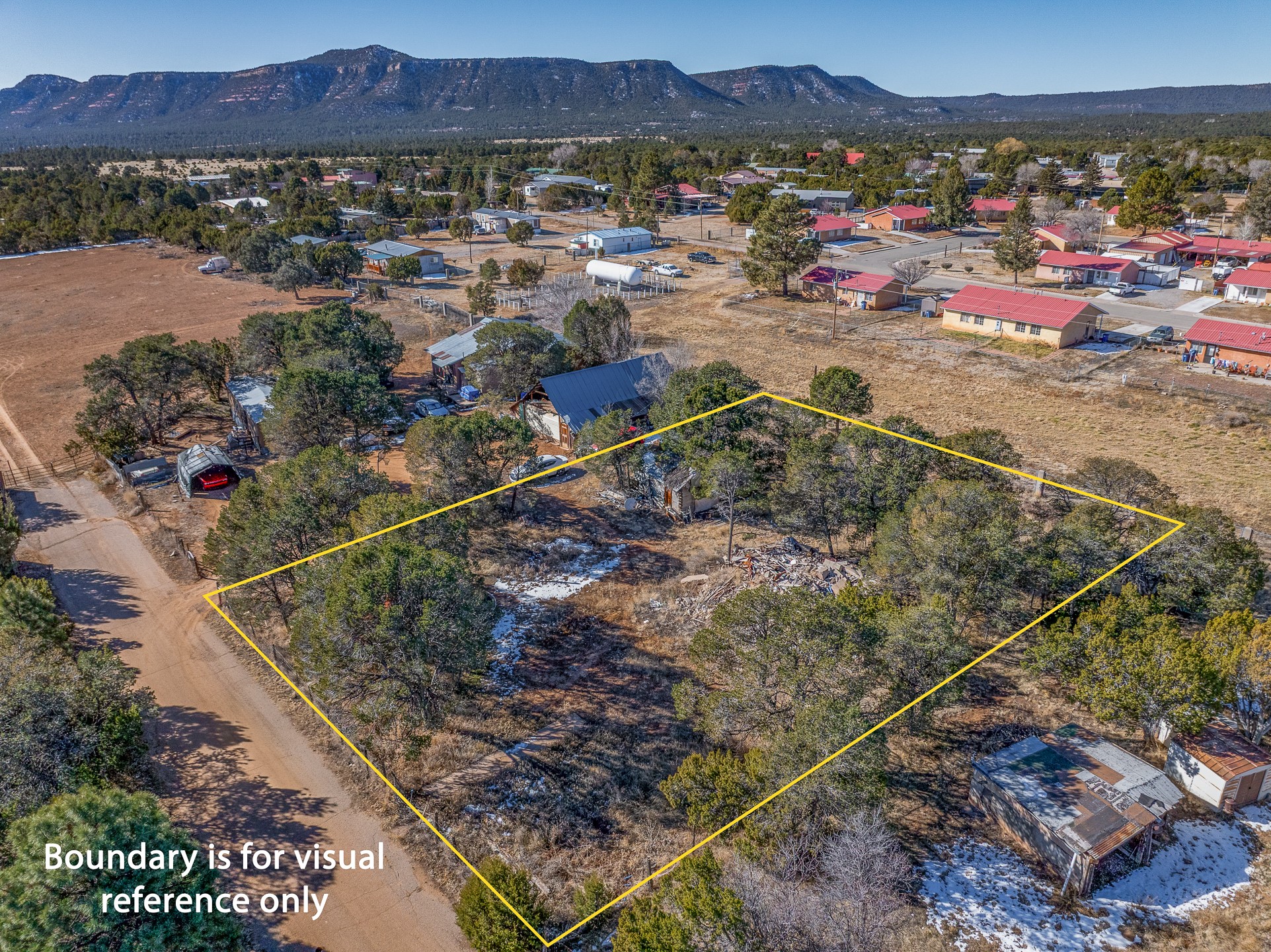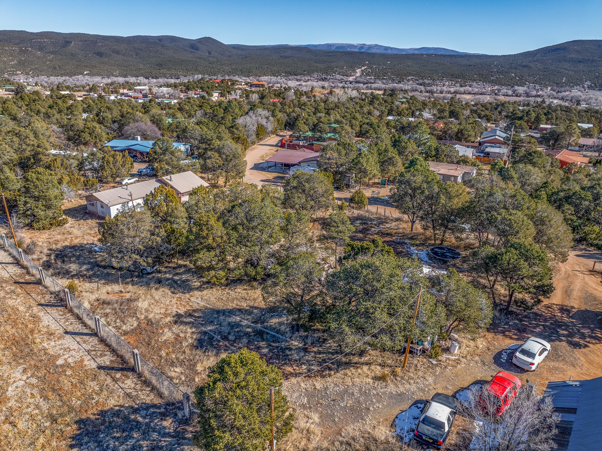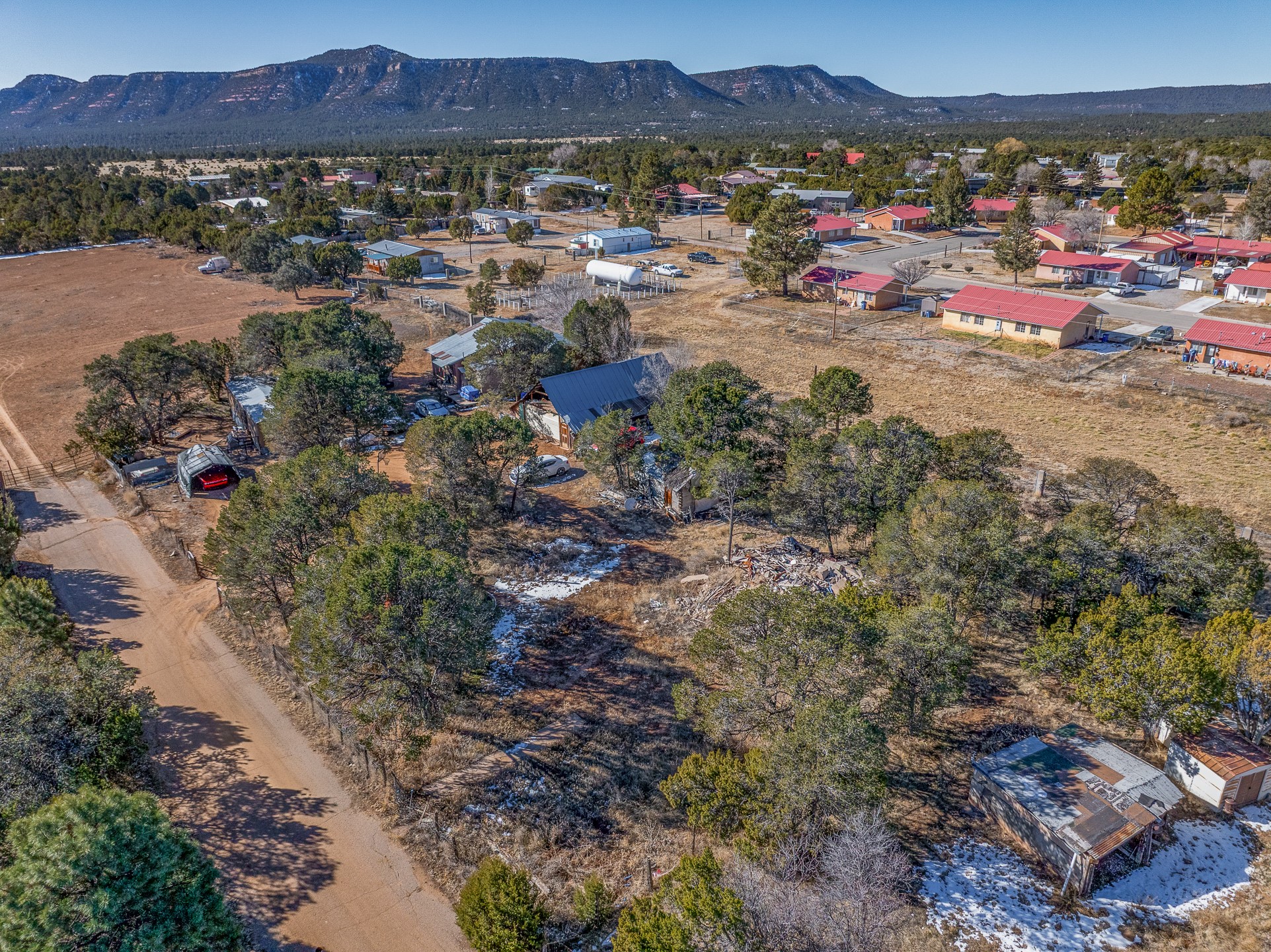 Just over a half acre in the Village of Pecos. Two lots make up this property, with considerable flat space for easy building and large pine trees. Connection to village water and sewer possible. A home had been on the lot and burned years ago, some rubble remains. An old outbuilding is still on the lot. Easy to access, easy to build.