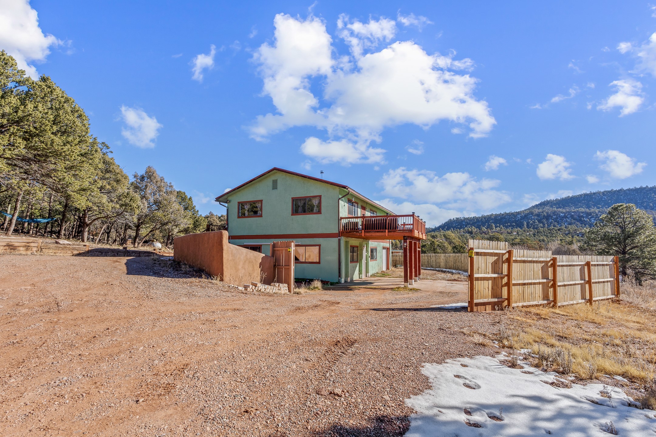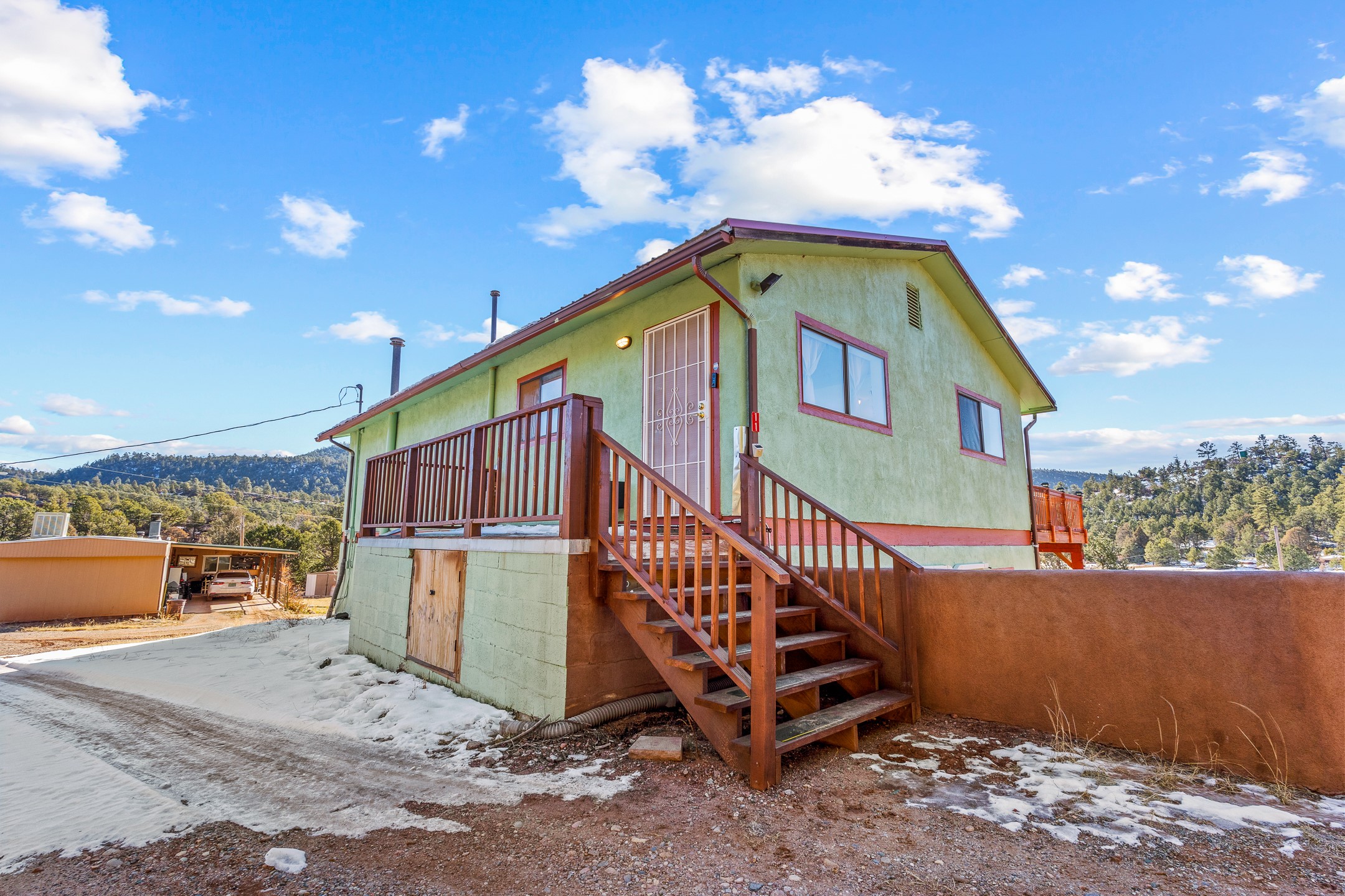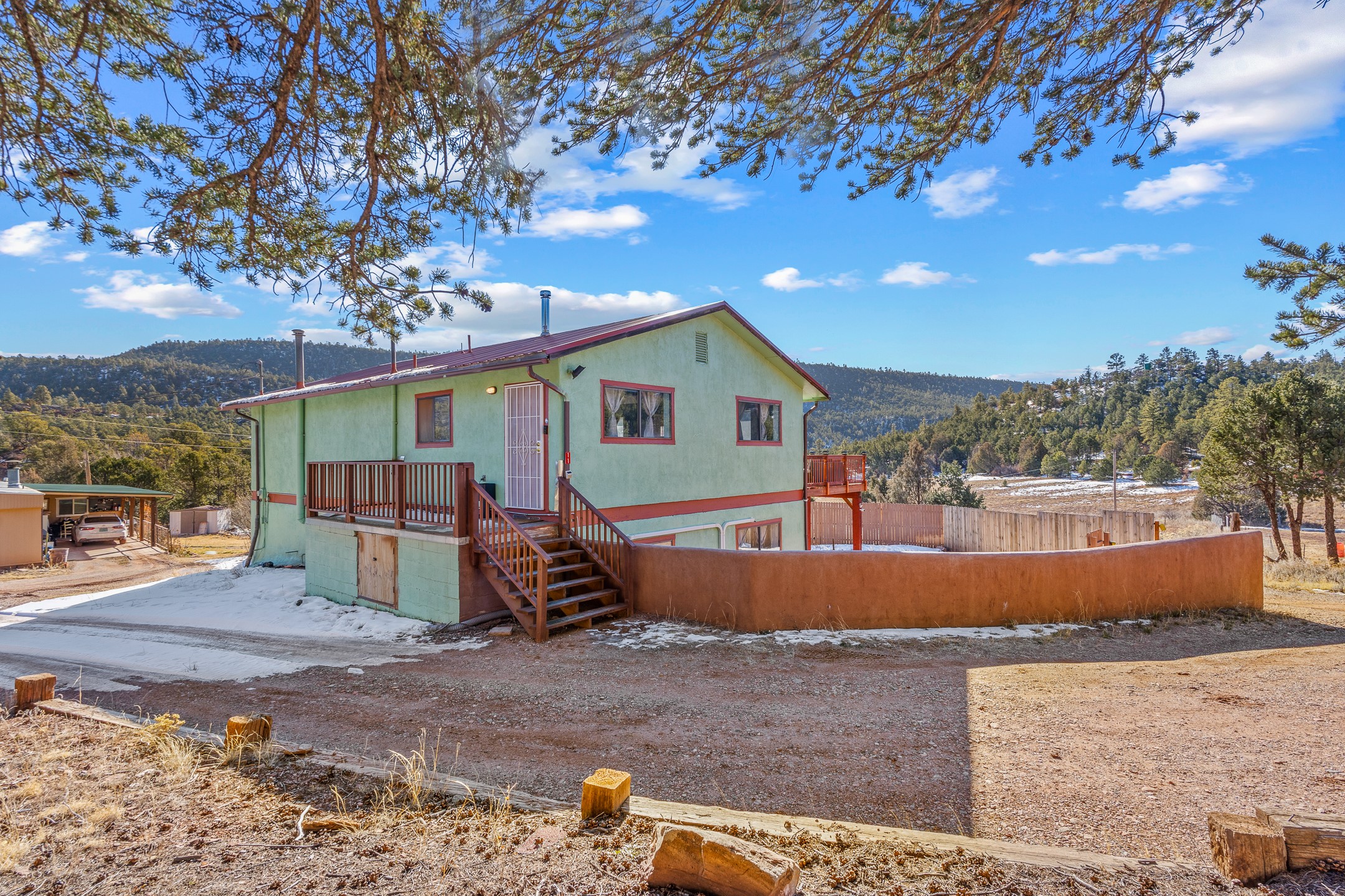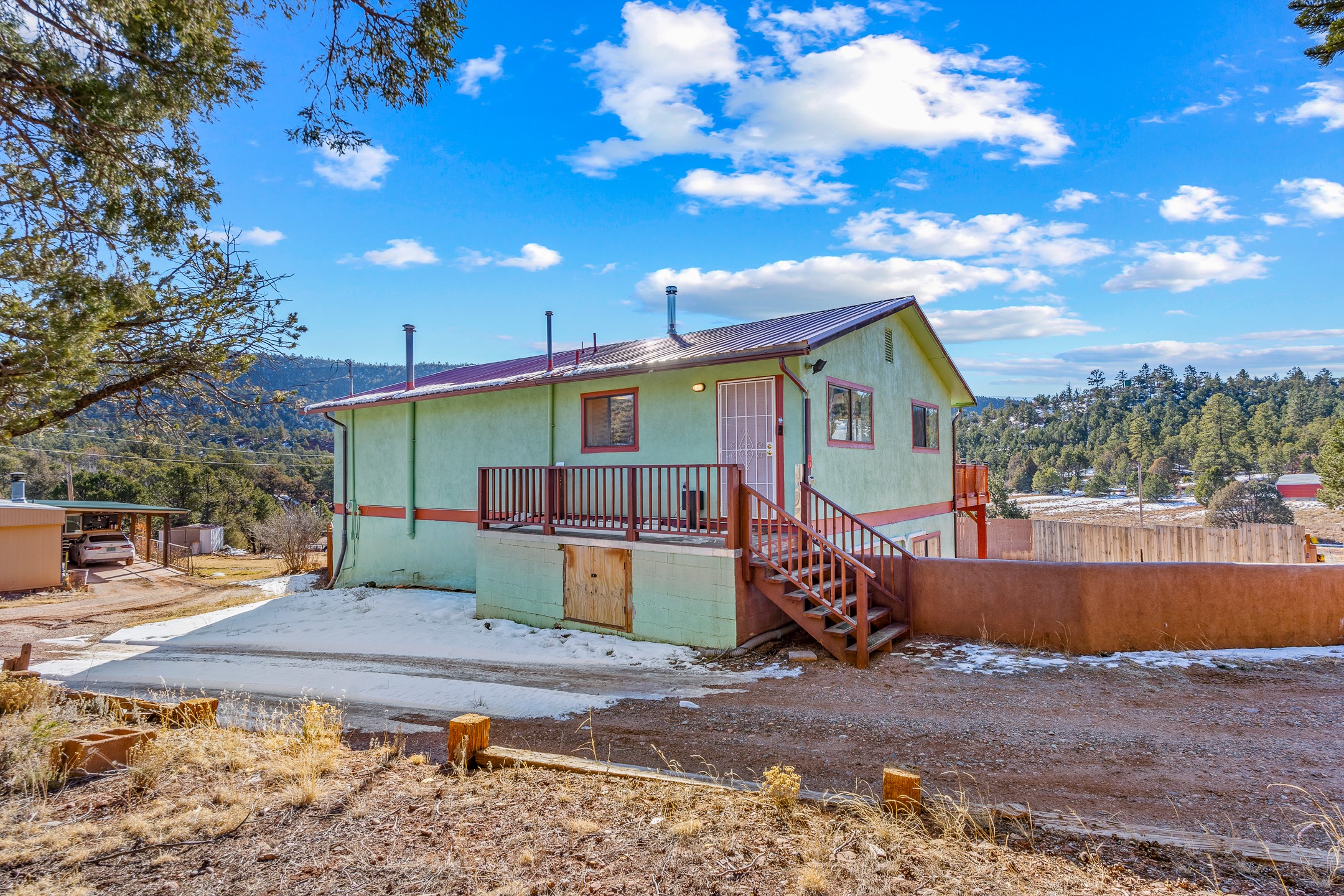 Situated on desirable acreage in Glorieta, 11 Eusebio Road offers expansive views and exceptional potential. This 3-bedroom, 2-bath home features a large downstairs great room and an elevated deck ideal for enjoying sweeping mountain and valley vistas. Additional features include a carport and a new garage door. The water heater, boiler, and baseboard heating were installed in 2025. With room to expand or customize, this property presents a unique opportunity to create a retreat or full-time residence in a peaceful, scenic setting.