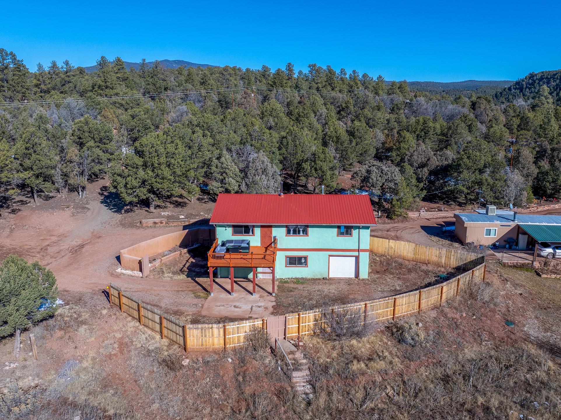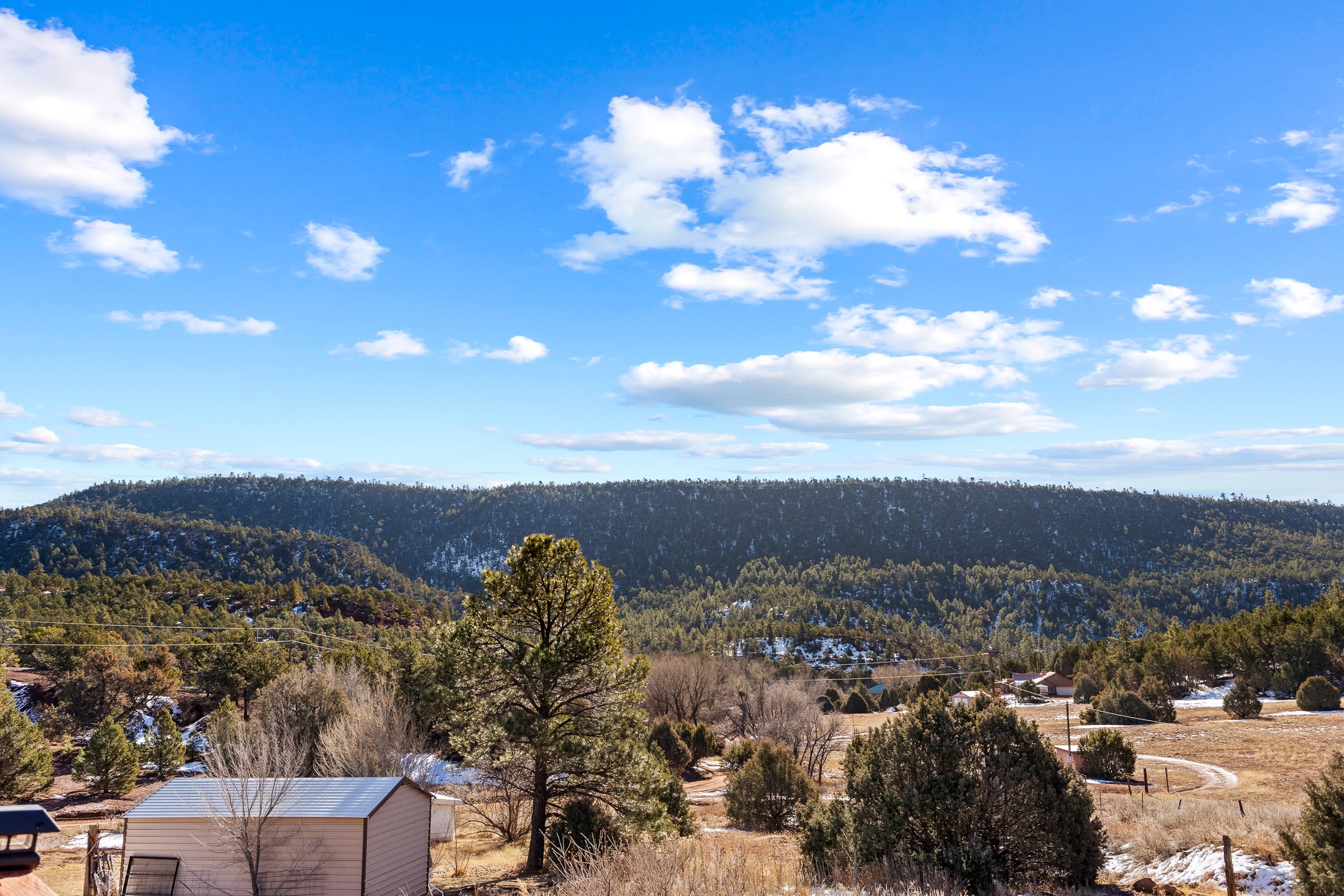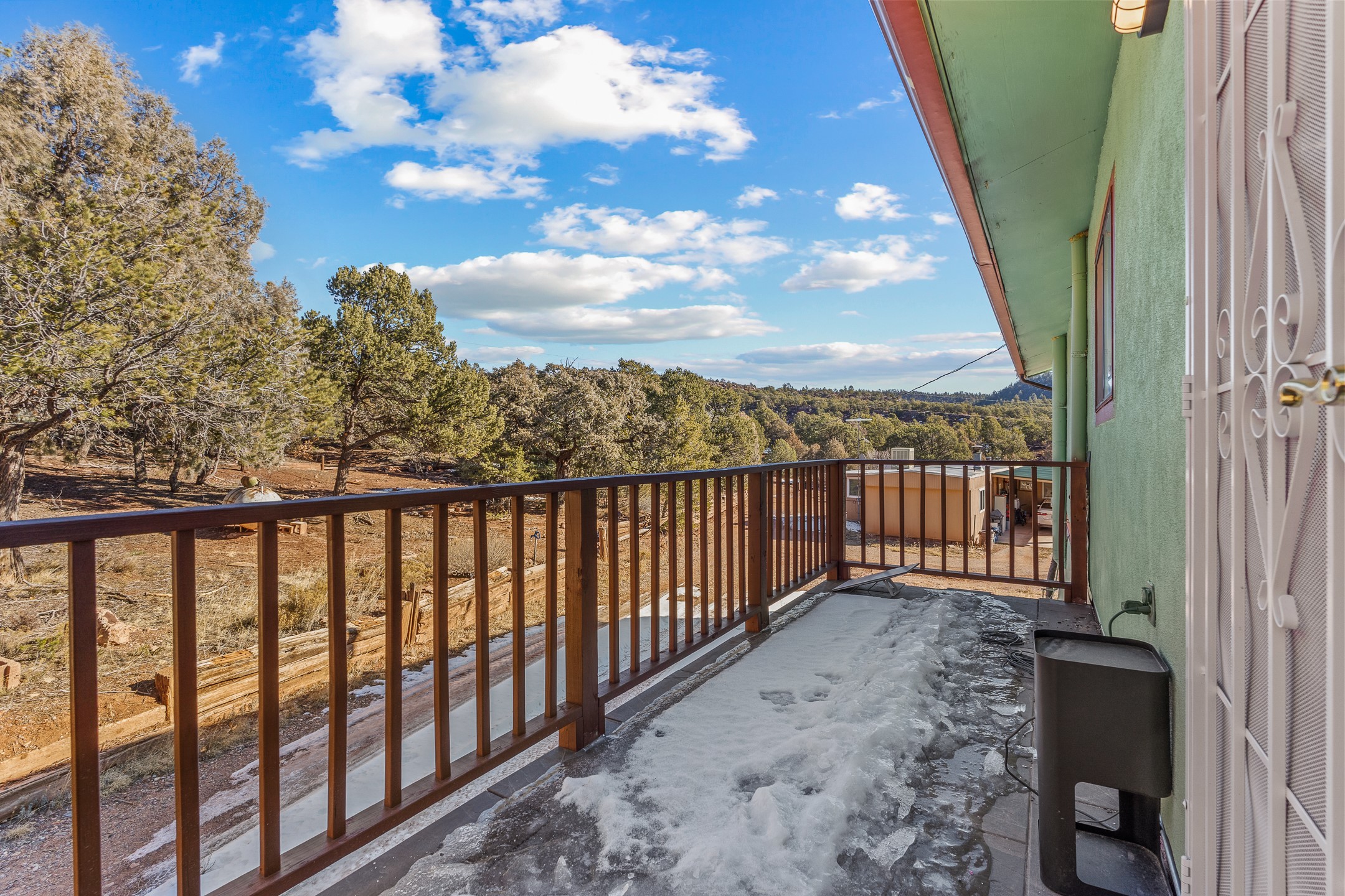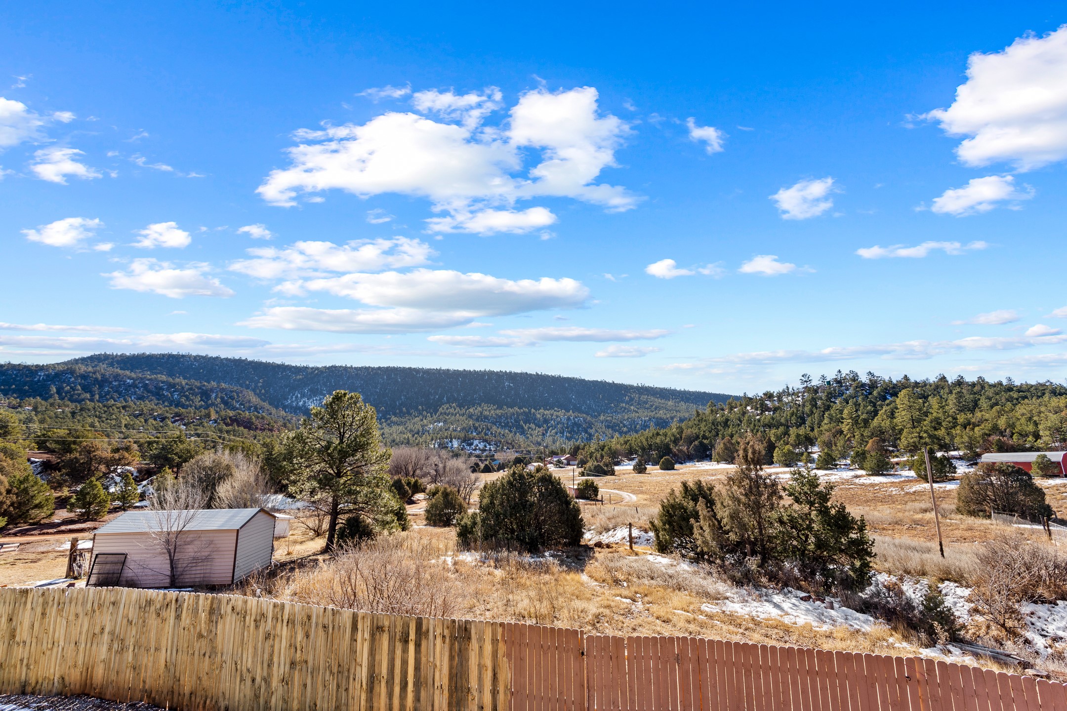 Situated on desirable acreage in Glorieta, 11 Eusebio Road offers expansive views and exceptional potential. This 3-bedroom, 2-bath home features a large downstairs great room and an elevated deck ideal for enjoying sweeping mountain and valley vistas. Additional features include a carport and a new garage door. The water heater, boiler, and baseboard heating were installed in 2025. With room to expand or customize, this property presents a unique opportunity to create a retreat or full-time residence in a peaceful, scenic setting.