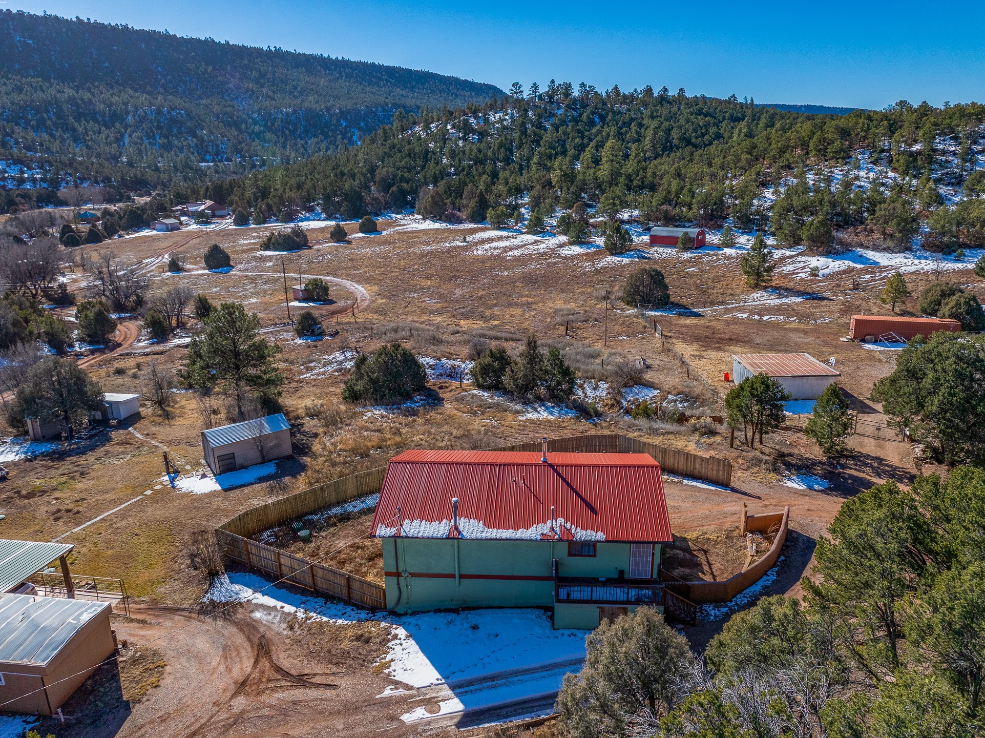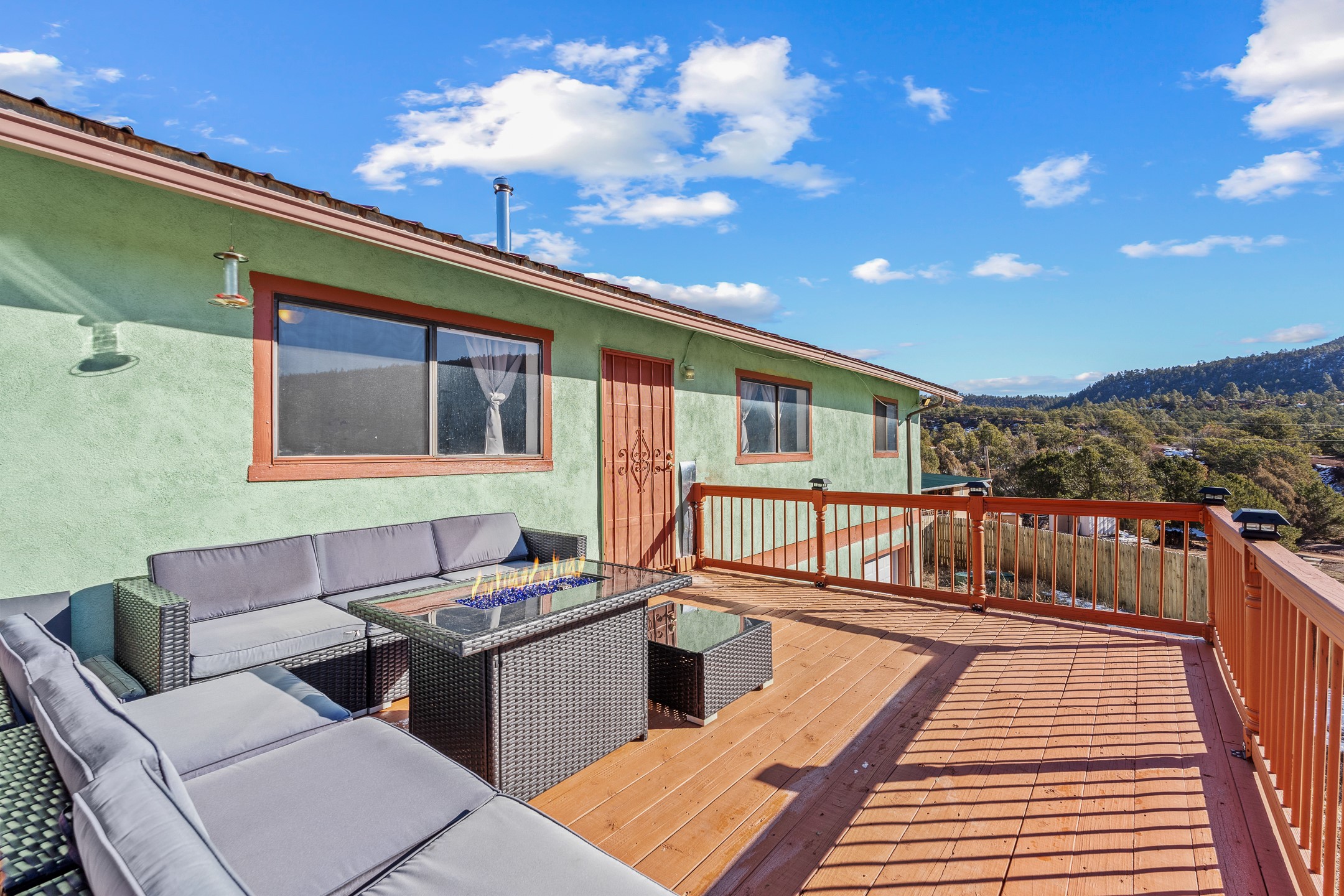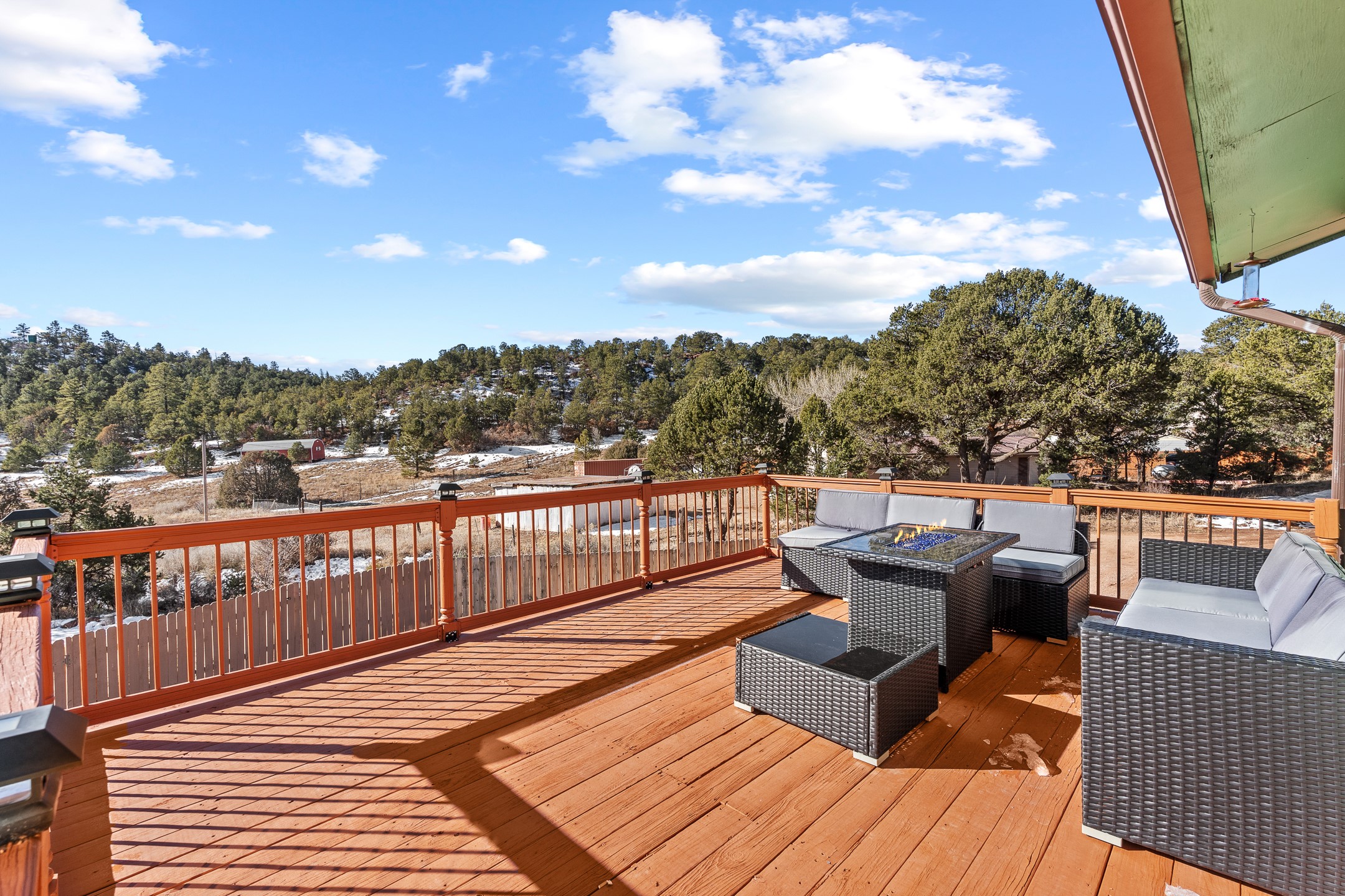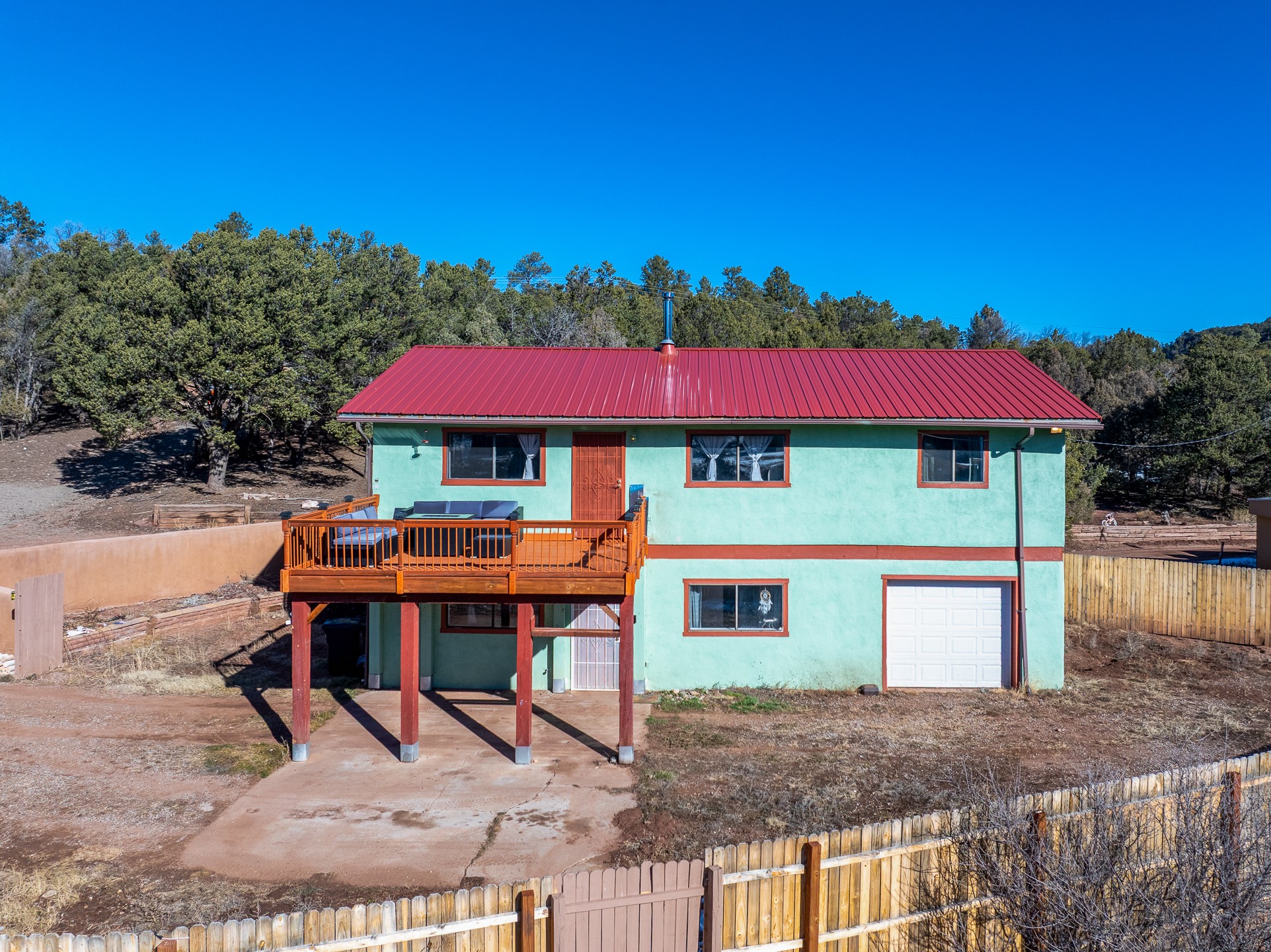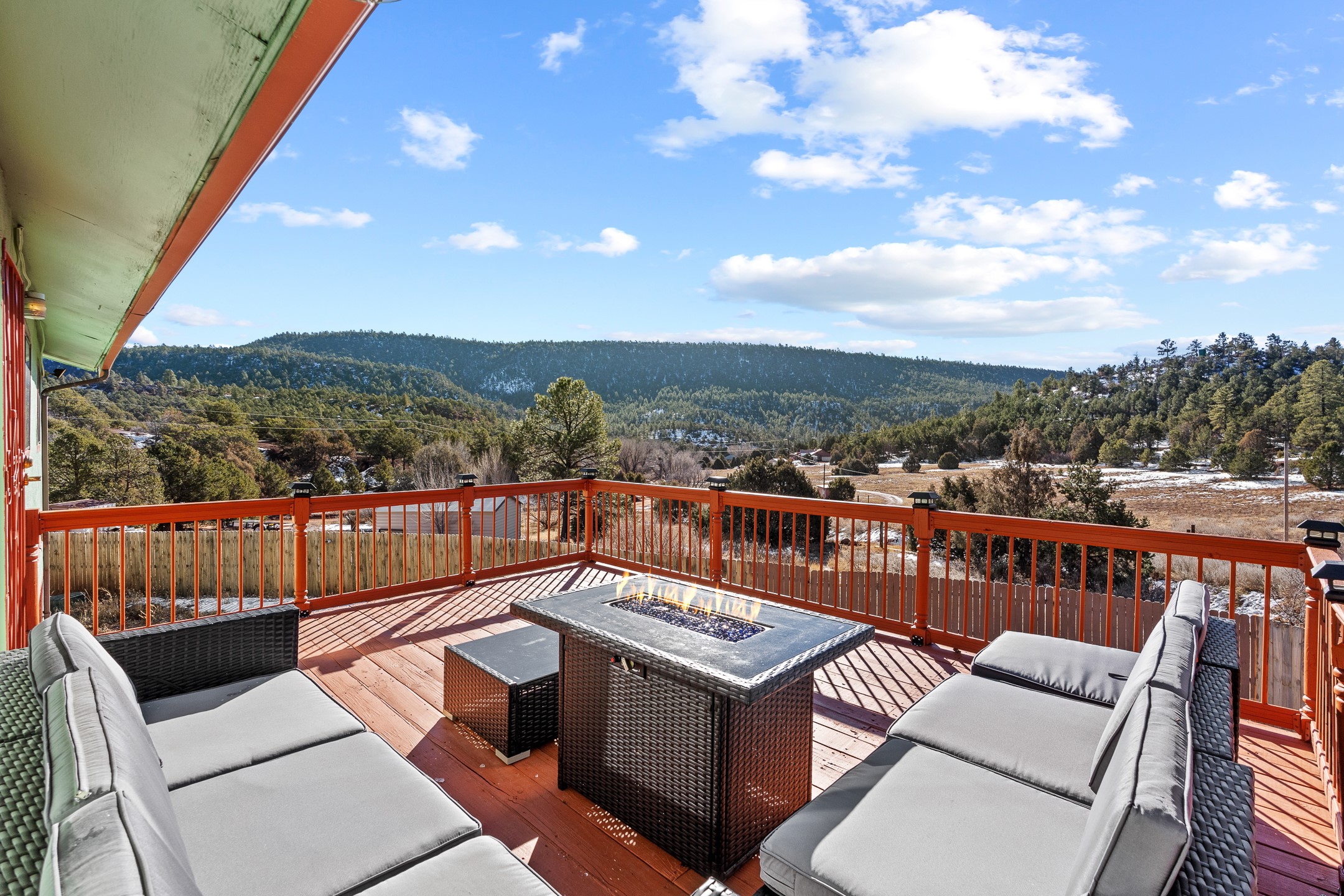 Situated on desirable acreage in Glorieta, 11 Eusebio Road offers expansive views and exceptional potential. This 3-bedroom, 2-bath home features a large downstairs great room and an elevated deck ideal for enjoying sweeping mountain and valley vistas. Additional features include a carport and a new garage door. The water heater, boiler, and baseboard heating were installed in 2025. With room to expand or customize, this property presents a unique opportunity to create a retreat or full-time residence in a peaceful, scenic setting.