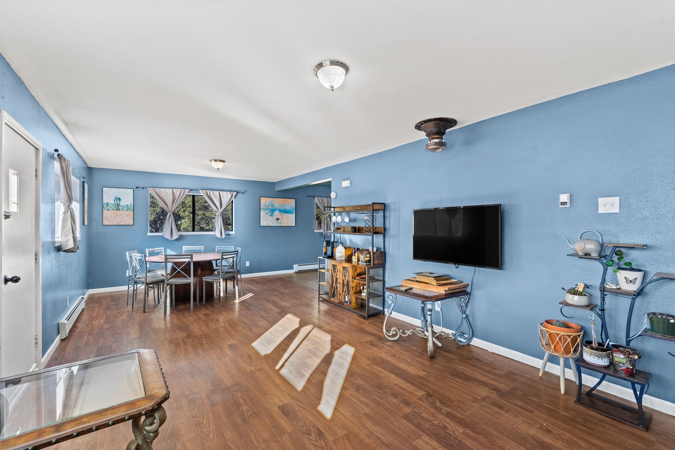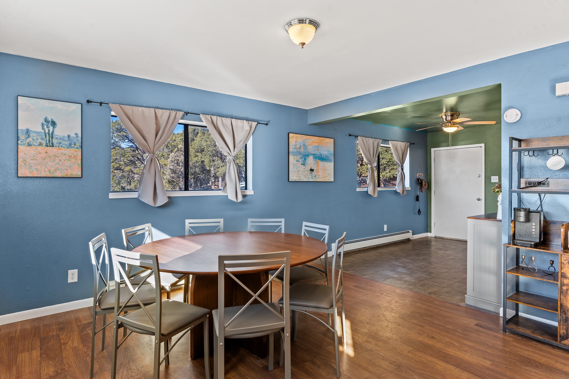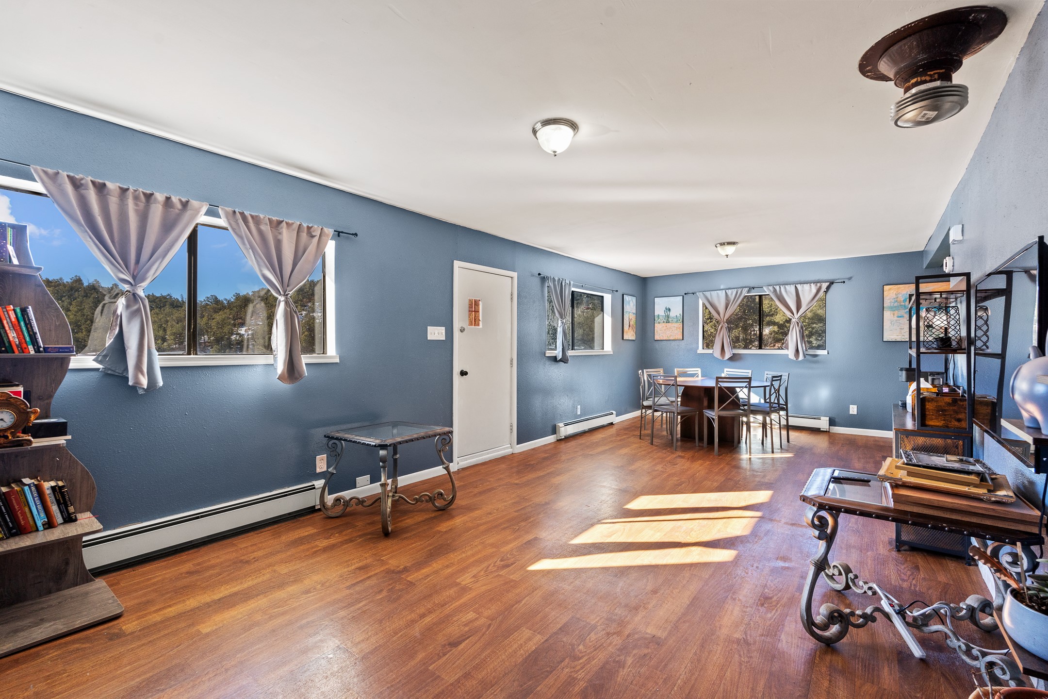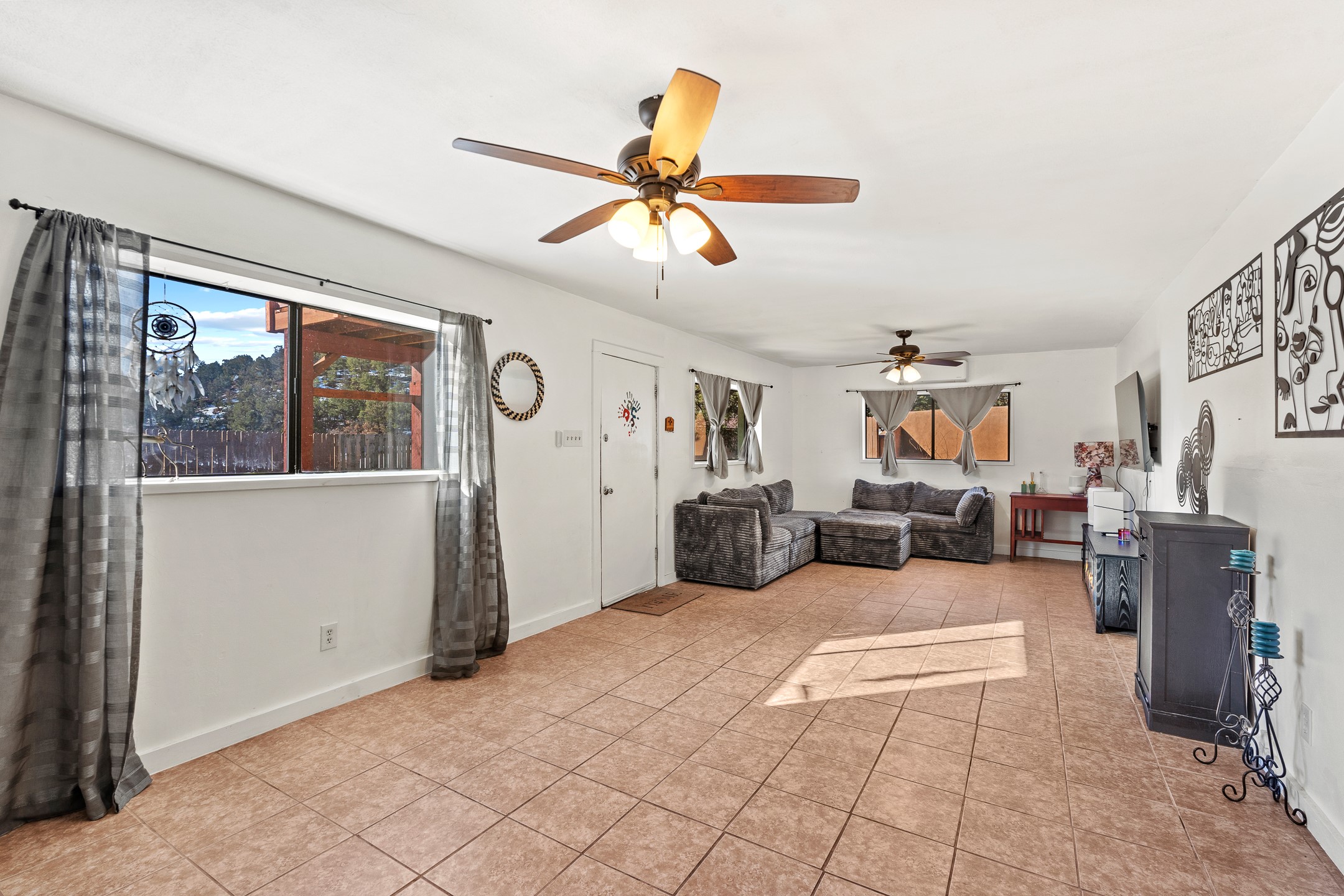 Situated on desirable acreage in Glorieta, 11 Eusebio Road offers expansive views and exceptional potential. This 3-bedroom, 2-bath home features a large downstairs great room and an elevated deck ideal for enjoying sweeping mountain and valley vistas. Additional features include a carport and a new garage door. The water heater, boiler, and baseboard heating were installed in 2025. With room to expand or customize, this property presents a unique opportunity to create a retreat or full-time residence in a peaceful, scenic setting.