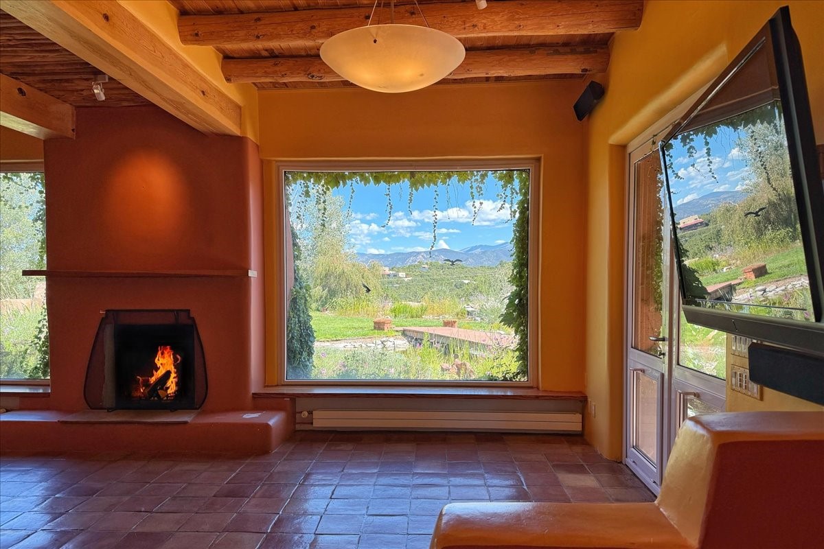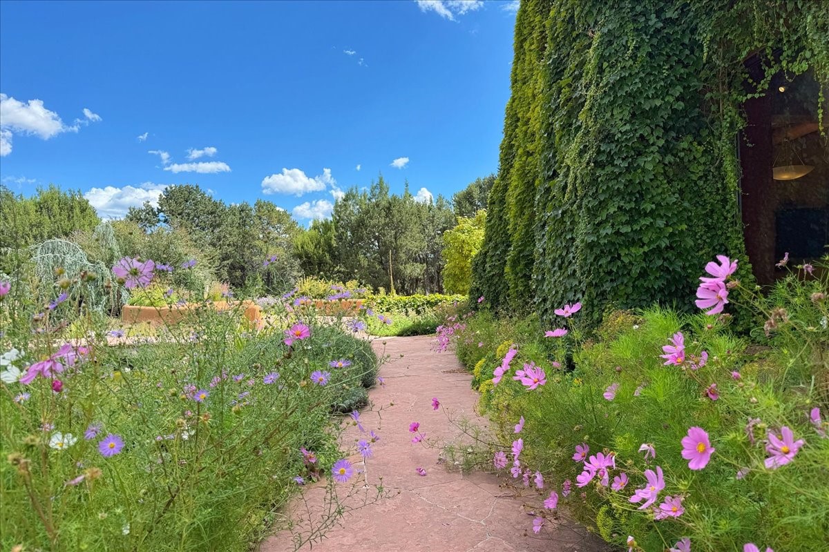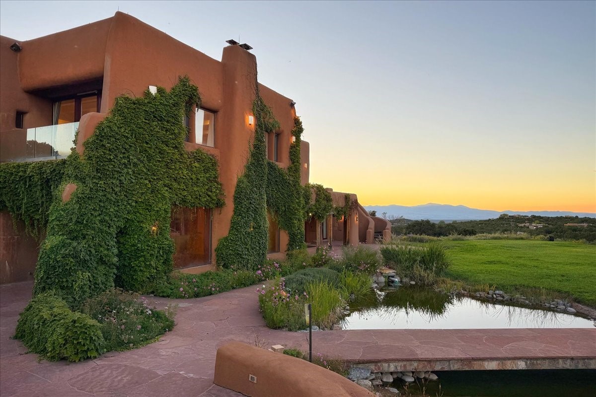 Tano Road at its Finest Tucked away on 11.9 wooded acres, this remarkable adobe estate feels worlds apart--yet remains close to all that makes Santa Fe extraordinary. With a 4-bedroom main house and a separate 2-bedroom casita, the property unfolds as a private retreat for gathering, reflection, and creativity.Anchoring the main level is a welcoming kitchen designed for connection, opening to a portal that overlooks an aspen-lined lawn, a serene pond, and sweeping views across the Sangre de Cristo and Jemez Mountains. Picture windows fill the living room with light, while an office, den, and three-bedroom guest wing provide space for every rhythm of lifework, rest, and hosting.Above, the owner's suite is perfectly placed to capture the views and includes a beautifully appointed bath and an airy studio/office. The nearby casita is equally inviting--offering privacy for guests or a quiet escape of its own.Rare, inspiring, and full of possibility--this is a Santa Fe property ready to be reimagined for its next chapter.