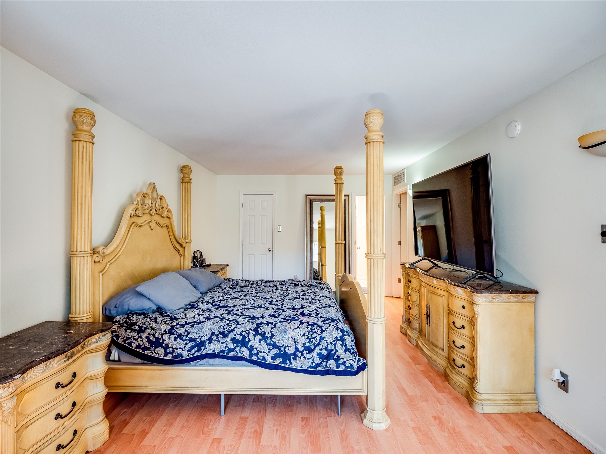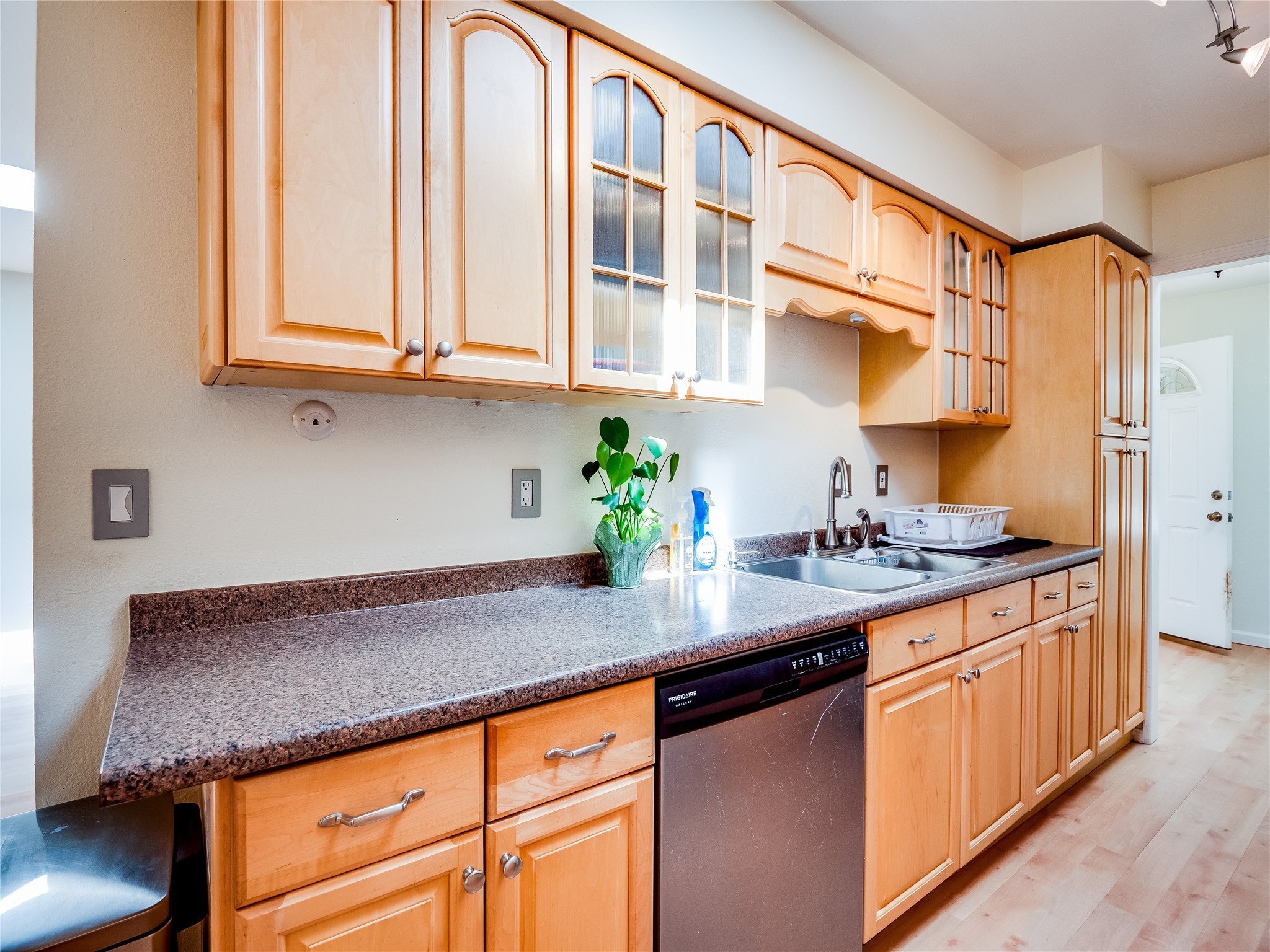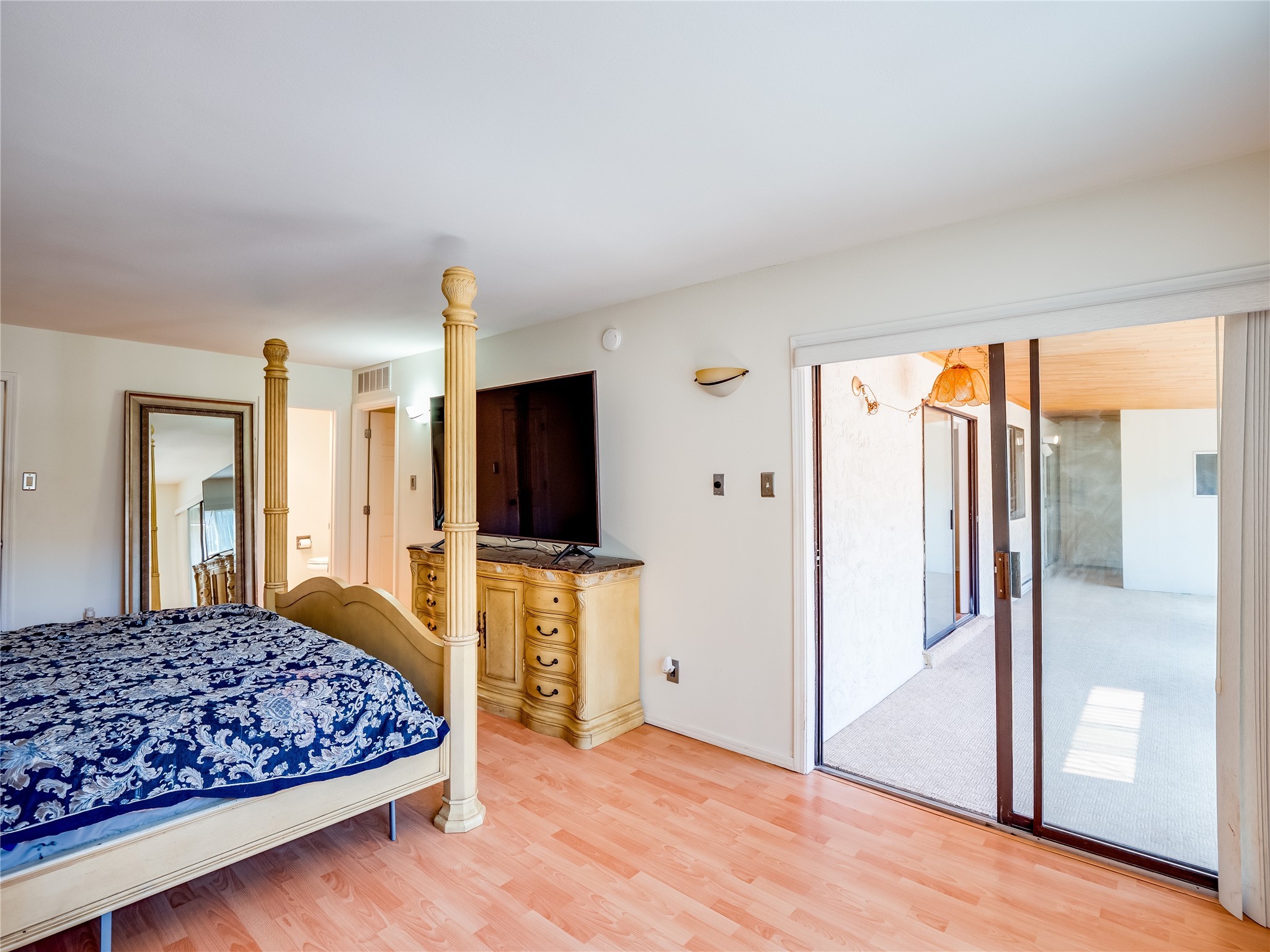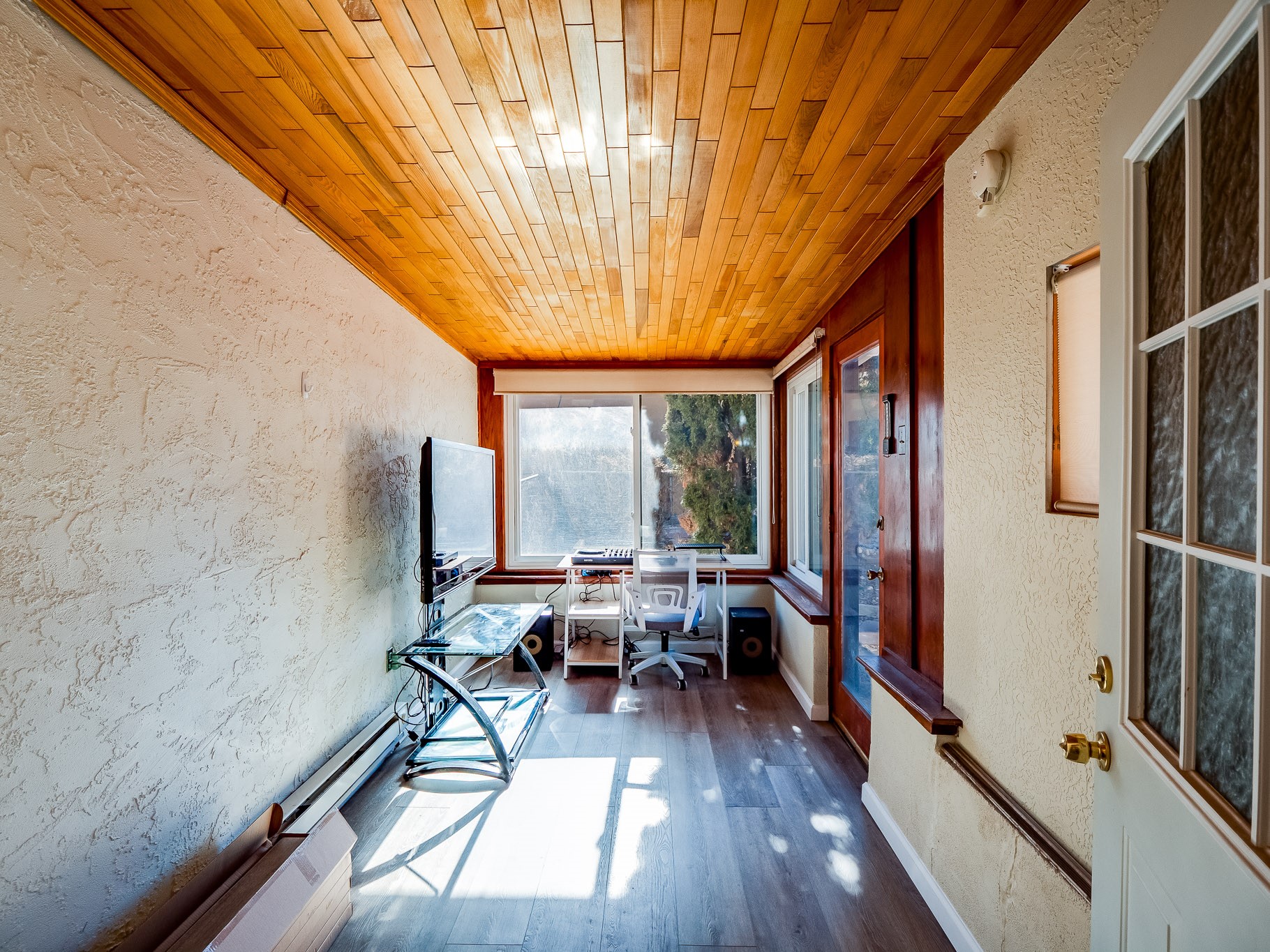 This charming single-story home in White Rock offers beautiful xeriscape landscaping and a welcoming layout. Step through the front entrance onto laminate wood floors that extend through the main living areas. A coat closet and convenient access to the two-car garage greet you at the entry. The spacious living room features a large front-facing window and a skylight, filling the space with natural light. Adjacent to the living room is a dining space with sliders leading to a bright sunroom with new laminate wood flooring. The bonus room, with the same new floors, offers additional space and leads to the backyard, with another access point to the garage for convenience. The galley-style kitchen boasts wood cabinets with glass inlays, hard surface countertops, tile flooring, stainless steel appliances, and a gas oven/range. Another skylight brightens up this functional space. Down the hallway, you'll find a large guest room with a double-door walk-in closet and sliders leading to the sunroom, a guest bathroom with a single sink vanity and a tiled shower/tub, and an open laundry space with upper cabinets that could easily be enclosed. The spacious primary en-suite includes a walk-in closet and sliders to the sunroom, while the primary bathroom has a single sink vanity and tiled shower/tub. The sunroom is surrounded by windows, offering a perfect view of the fenced-in backyard with its low-maintenance landscaping, mature trees, and room to create your dream garden or outdoor living area. With parks, trails, shopping, and restaurants just a short distance away, this home is in an ideal location. Come take a tour today!