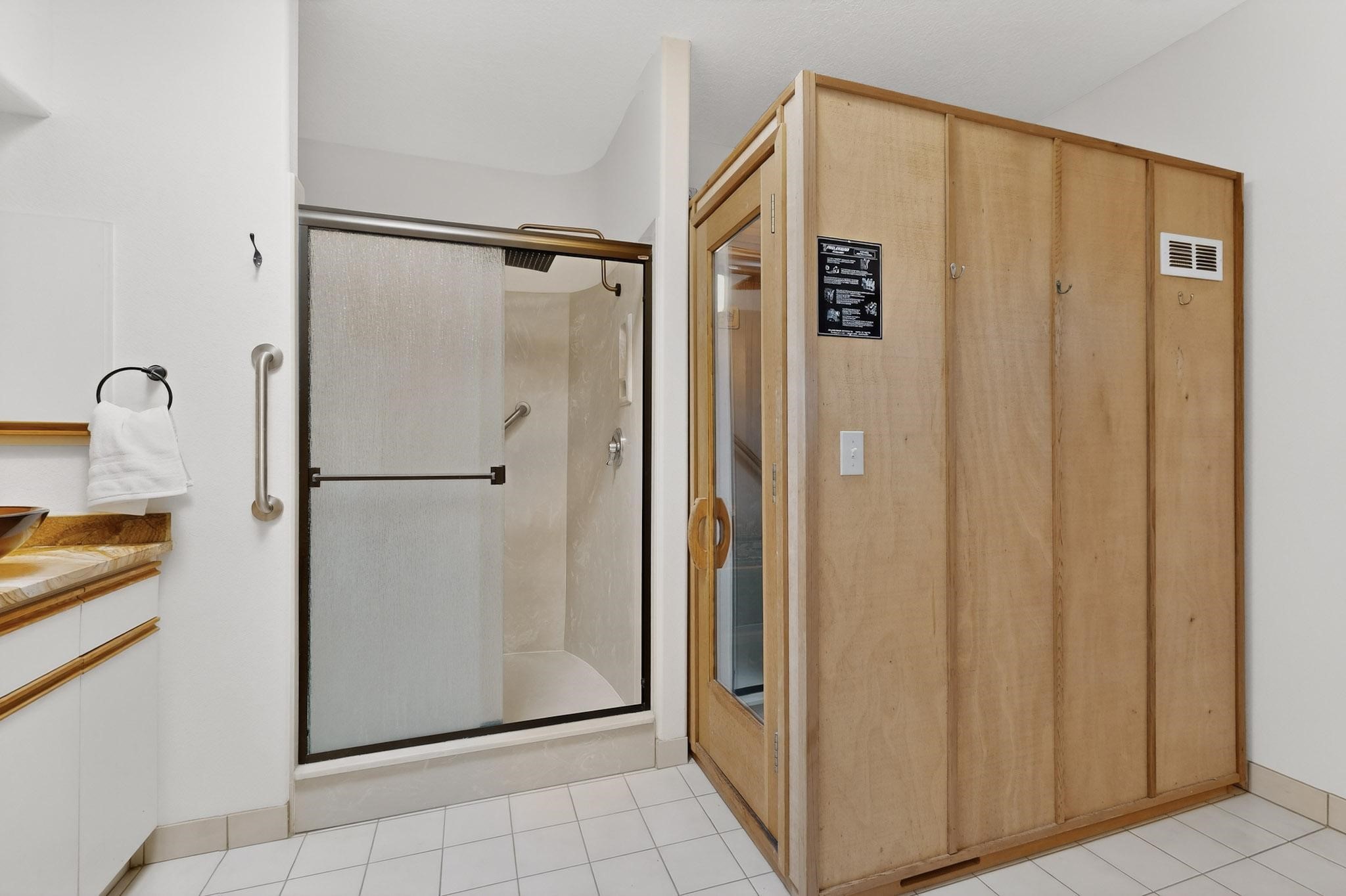 - Interior FeaturesBeamed Ceilings, No Interior Steps, Sauna