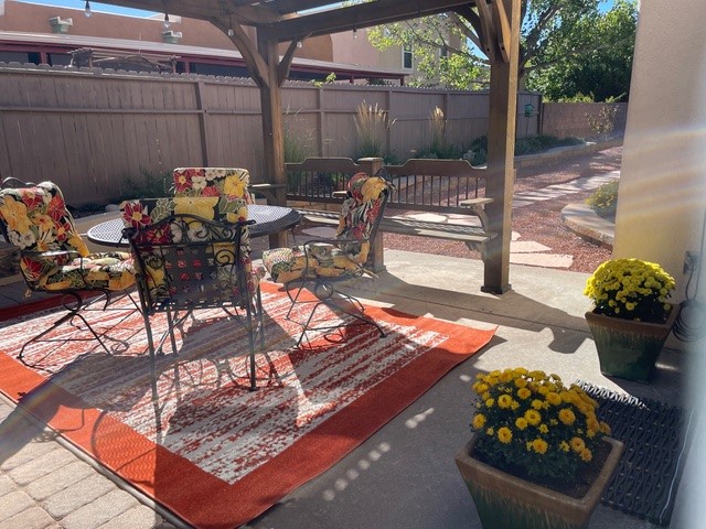 Located within the gated community of Vista Primera, this move-in-ready Santa Fe home offers comfort, efficiency, and thoughtful updates throughout. The property features owned solar, a recently maintained roof, tankless hot water heater, refrigerated central air, updated kitchen countertops and backsplash, on demand hot water in the kitchen, and professionally landscaped grounds with drip irrigation, providing ease of ownership and energy-conscious living. Inside, the home has three well-proportioned bedrooms and 2 bathrooms, with a functional layout designed for both everyday living and entertaining. This home creates a welcoming atmosphere, while clean finishes allow for immediate enjoyment.Outdoors, the landscaped yard with large shed and lit gazebo provides a peaceful setting for relaxing or gathering, enhanced by low-maintenance drip irrigation. Whether used as a full-time residence or a Santa Fe retreat, this home combines practicality, comfort, and value within a secure, well-maintained community. This is a wonderful opportunity to enjoy move-in-ready living in one of Santa Fe's desirable gated neighborhoods.