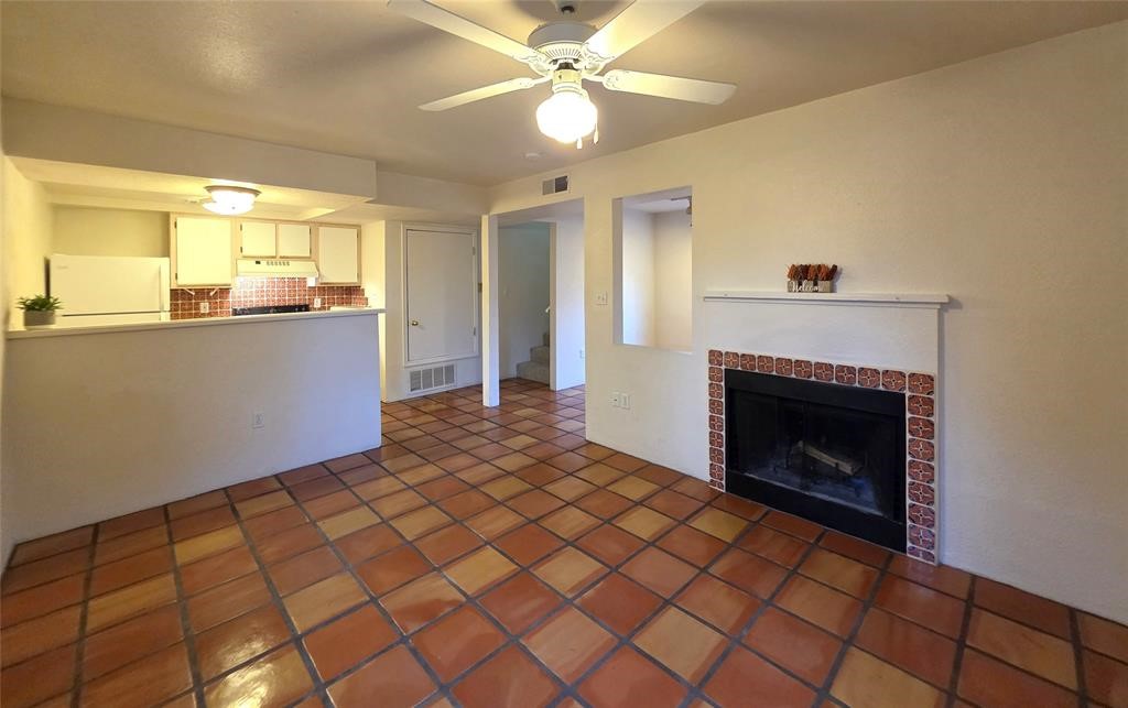 Welcome to the Dos Santos community a lovely town home end unit offering enhanced privacy and beautiful views of the mountains to the east and west. Located next to a greenbelt, this two-bedroom, two-bath home features approximately 950 square feet of well-designed living space, including an open-concept living and dining area with Saltillo tile floors, a wood-burning fireplace, and a kitchen ideal for entertaining. The upstairs includes a primary suite with an en suite bath, a walk-in closet, and attractive window treatments. Outside, the home offers a covered front patio and a fenced yard, with patio furniture included. Residents of Dos Santos enjoy access to a range of amenities, including a heated saltwater pool, hot tub, clubhouse, fitness center with exercise equipment, outdoor entertainment gazebos with gas grills, walking paths, and an expansive dog park. Located just minutes from downtown Santa Fe, close to shopping, St Vincent Hospital and direct access to Santa Fe's 'Rail Trail' for commuting, hiking and biking. The property also offers an easy commute throughout Santa Fe and to Los Alamos. Association fees cover community area maintenance, exterior building and roof maintenance, parking upkeep, recreational facilities, security, as well as water, sewer, and refuse services. E-Z to show.