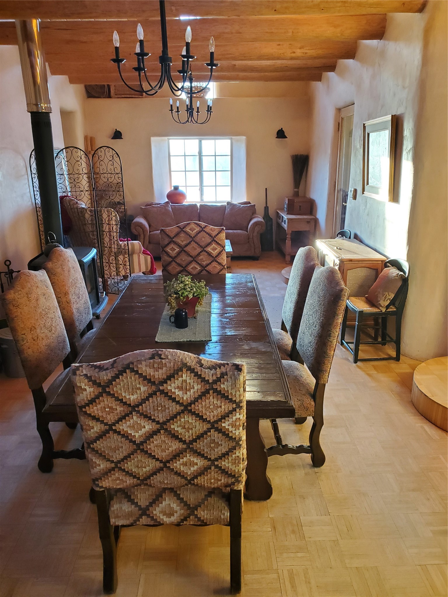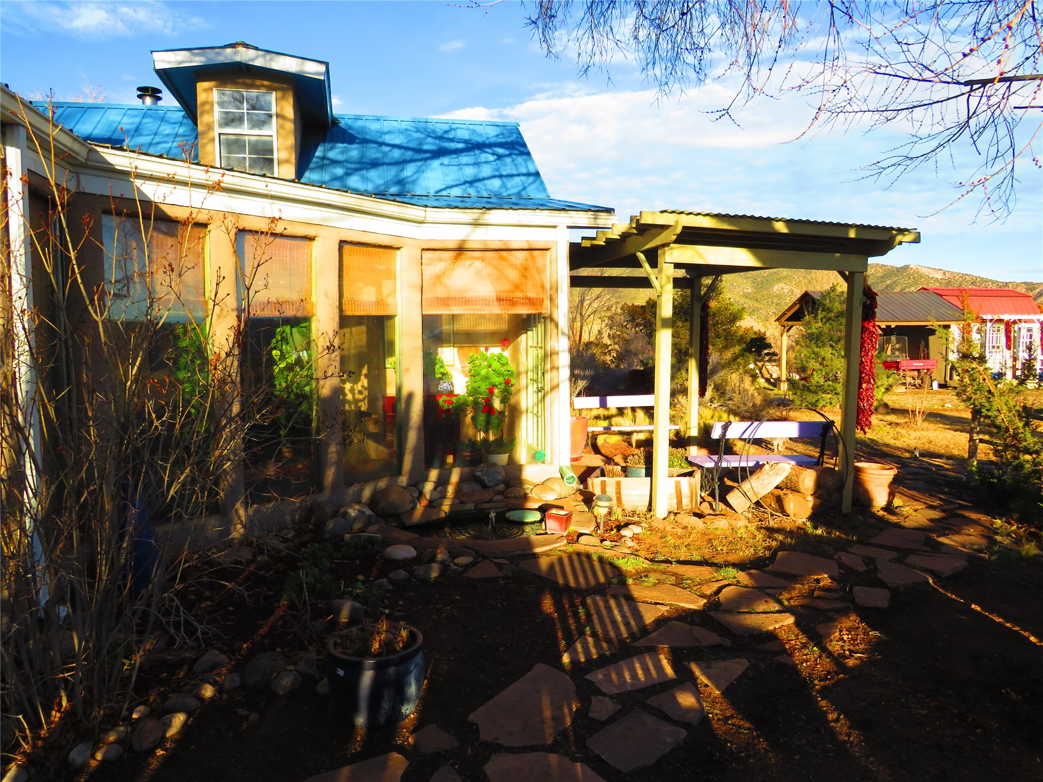 This is quintessential Northern New Mexico. The location, on the outskirts of the historic village of El Rito, boasts creek frontage and easy access to beautiful National Forest land just down the road. The home was originally built in 1880 and was remodeled and restored in 2006. There have been many upgrades since including new tile and appliances There are wonderful architectural details everywhere with lots of light, spacious rooms, and ample storage. The floors are tile, wood, and luxury vinyl tile, with extra tile included in the sale. The home has two bedrooms and two baths. The living area offers flexible space with a room near the kitchen that can be studio or office space. The construction is adobe and frame construction and it has 1964 square feet. The charming guesthouse is 96 square feet with a sleeping loft. It is plumbed for water and has a camp toilet. There is a spacious 660 sq ft work shop with 220 service but it is unheated. The outdoor spaces offer stunning views, privacy, and a pond/fountain. Adjacent are some old sheds that could be put to use in many ways. The chain link dog fencing will be removed. Closer to the river there is a two horse barn with a pipe fenced turnout.The location is rural with dark night skies, quiet, privacy, and wildlife. El Rito offers a medical/dental clinic, community library, local elementary school, annual art tours, and the famous Farolito Restaurant. Please do not attempt to enter the property without a confirmed appointment as there are guard dogs on the premises.