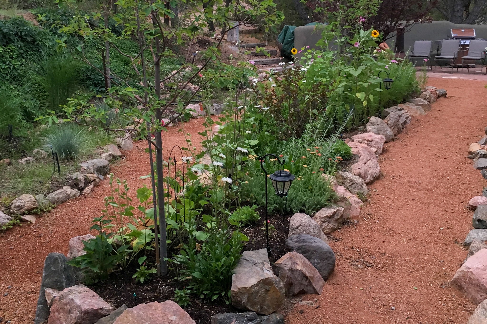 Light and Sky - where Santa Fe light meets endless sky, this enchanting 3 BR / 2BA single-level home reveals itself with effortless elegance. Set on apx 2.14 acres and offering apx 2,600 sqft of luminous living, it is a sanctuary of quiet refinement - rooms that welcome the day, frame the horizon, and inspire reflection and imagination. Warm and gracious, this home was designed to be lived in, admired, and remembered. Expansive windows and skylights draw abundant sunlight inward, illuminating blonde wood floors and interiors anchored by a sculptural stacked-stone fireplace. The living spaces embrace light and landscape with subtlety and sophistication, offering a calm serenity while effortlessly accommodating small and large gatherings. Outdoors, a generous entertaining deck extends the living space beneath vast skies. A manicured grass lawn, mature trees, and thoughtfully planted gardens create a private setting. There are abundant pinon trees, aspens, Japanese maples, and fruit trees, including apricot, pear, and apple. Also, annuals and perennials of Shasta daisies, hollyhocks, cosmos, iris, morning glories, a variety of roses and Russian sage. An ancillary structure provides for versatility - ideal as a private office, yoga or fitness studio, artist's atelier, or intimate library. An efficient HVAC system provides comfort year-round for heat and refrigerated air-conditioning. There is also an attached two-car garage. Moments from Harry's Roadhouse, El Gancho, nearby amenities and shopping with easy access to I-25, the home offers serene privacy while remaining effortlessly suited for entertaining. More than a residence, this is a home of quiet distinction, reflecting a lifestyle of beauty and serenity.