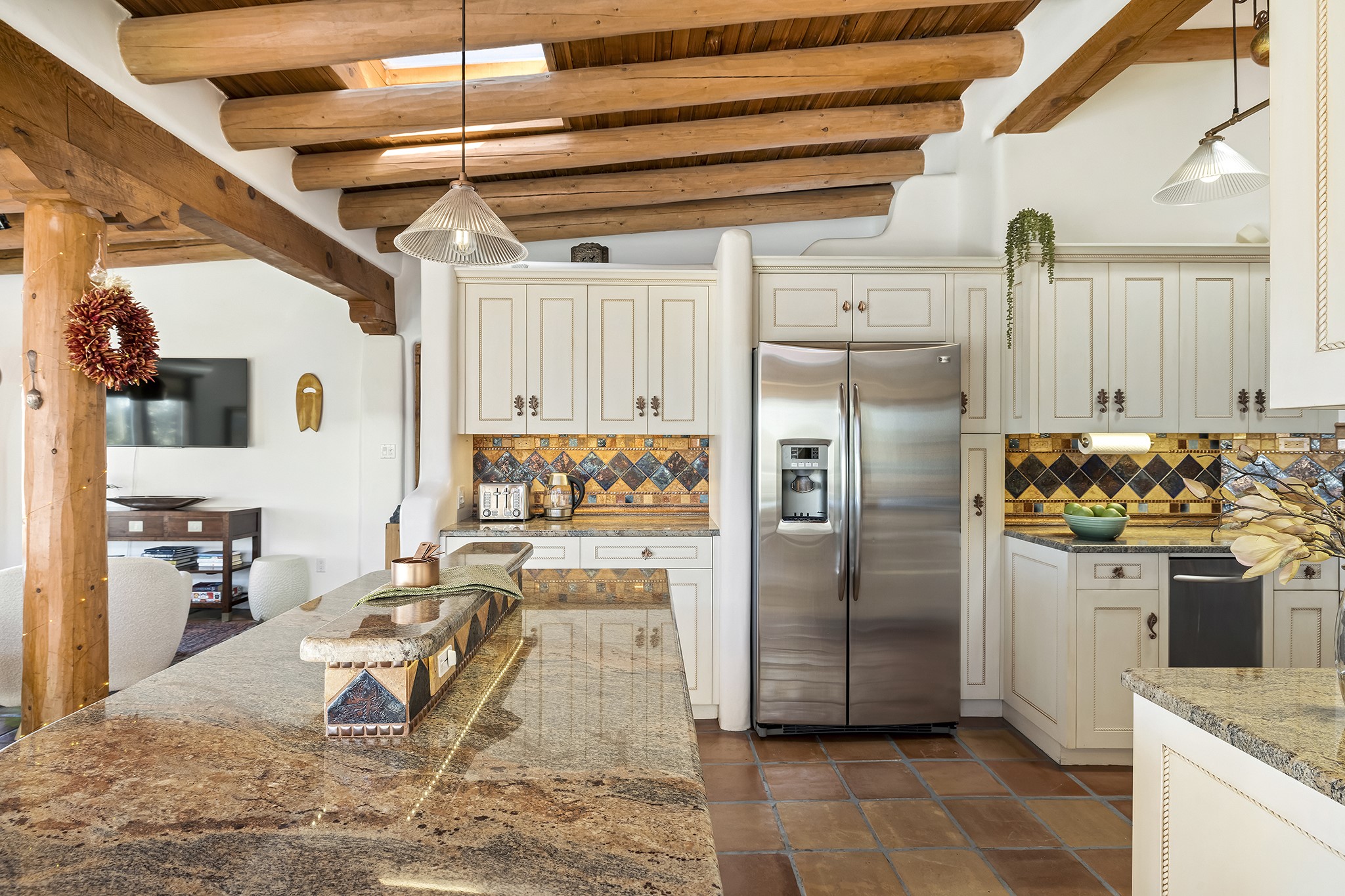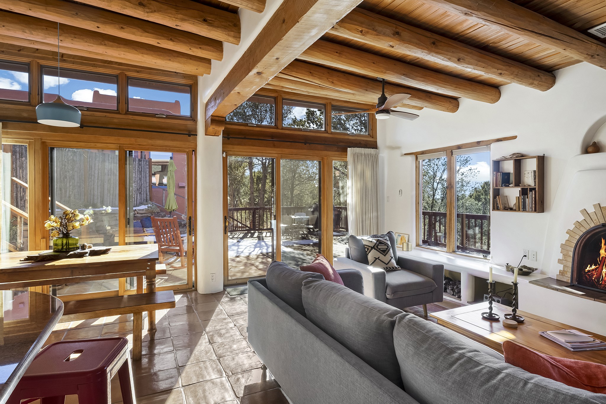 A rare 3,896 sq. ft. DUPLEX just minutes from the Plaza, Canyon Road, and the Railyard District--offering exceptional versatility, timeless style, and a premier 1.2-acre setting.With two fully independent 2-bedroom, 2-bath residences under one roof, Casa Del Sur and Casa Del Norte, the property can be used flexibly for multi-generational living, rental income, or creative live/work arrangements.Both interiors reflect the warmth and character of Southwestern design, featuring classic elements like vigas, Saltillo tile flooring, brick flooring and exposed adobe and plaster walls. Each residence has its own living spaces, kitchens, and private entrances--offering separation without sacrificing charm.Privately sited and thoughtfully designed, the home also includes a 3-car garage, ample outdoor areas, and quiet surroundings--creating a sense of retreat within easy reach of Santa Fe's most iconic galleries, restaurants, and historic landmarks.Whether you're looking to live, share, or invest, this unique compound offers possibilities that are increasingly hard to find in Santa Fe.